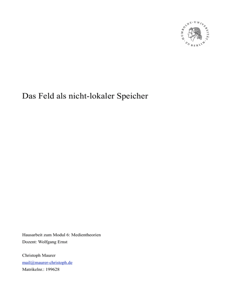 Das Feld als nicht-lokaler Speicher Hausarbeit zum Modul 6: Medientheorien Dozent: Wolfgang Ernst Christoph Maurer [email protected] Matrikelnr.: 199628 Inhalt Einleitung Die Entstehung des Feldbegriffes Von den Kraftlinien zum Feld Vom Feld zum quantisierten Feld Neuronale Netze Anwendung der Quantenphysik auf den Beobachter Försters quantenphysikalisches Modell des Gedächtnisses Quantum Brain Dynamics Kondensate in Netzwerken Schluss !2 Einleitung »Der Ozean, die Quelle elektrischer, magnetischer und gravitativer Impulse, schien sich in der Sprache der Mathematik zu äußern; gewisse Sequenzen seiner Stromentladungen ließen sich klassifizieren, wenn man sich der abstraktesten Zweige der irdischen Analysis und Mengenlehre bediehnte; es erschienen Entsprechungen zu Strukturen, wie sie aus demjenigen Teilgebiet der Physik bekannt sind, das die Stellungen von Materie und Energie zueinander, von endlichen und unendlichen Größen, von Teilchen und Feldern erörtert.« Lem, Solaris Um technische Artefakte als Apparate, die bei der Erkenntnis sowie beim Denken mitschreiben und mit-prozessieren, zu thematisieren, müssen diese in ihrer Materialität gedacht werden. Der Bestand der unbelebten Dinge und deren Veränderung unterliegt traditionell dem Hoheitsgebiet der exakten Wissenschaft Physik, die Beschreibungen bereitstellt, sowie Gesetzmäßigkeiten vorschreibt, wie mit dem Natürlichen verfahren werden soll. Dieses hypothetisch-experimentelle verfertigen von Modellen, Theorien und Experimenten erlaubt Vorhersagen und Prüfungen des Verhaltens von Systemen, also der Gesamtheit von Elementen, die in einer sinngebundenen Einheit von der Umwelt abgegrenzt sind. Hier lässt sich an Seitters Physik der Medien anschließen, in der er, ähnlich zu Heidegger, eine Beschreibung der niederen Medien, im Sinne von nicht-technologischen, aber diesen zugrundeliegenden physikalischen Entitäten gibt. In dem diese offengelegt und handhabbar gemacht werden, erfahren sie auf komplexerer Ebene, als Apparate und Technologien, eine Etablierung in anderen Bereichen. Die Physik steht in gegenseitiger Beeinflussung, spätestens seit den Vorsokratikern/ Aristoteles und aktuell im Projekt der Grand Unified Theorie (GUT), in grösseren Zusammenhängen, im Sinne von ontologischen sowie metaphysische Philosophien. Jedes epochale Weltbild ist von einer Vorstellung der Natur geprägt bzw. findet sich in ihr repräsentiert. Seien es die griechischen Elemente oder die späteren Atome, die mystisch-hermetische Alchemie des Mittelalters, die Newtonsche Mechanik und Äthertheorie, das elektromagnetische-chemische Weltbild von Faraday/ Maxwell, sowie das aktuelle relativistisch-quantenmechanische Paradigma. Die geschichtlich neueren Theorien sind nicht immer Verallgemeinerungen der Vorhergehenden, die dann als Grenzfälle in der Aktuellen auftreten, sondern oft auch Rehabilitierungen marginalisierter Konzepte oder neue Fassungen ehemals gültiger Vorstellungen. Es zeichnet sich aber in der Physik seit der Vereinheitlichung der elektrischen mit den magnetischen Theorien durch Maxwell, und damit auch der optischen sowie thermischen, eine Tendenz zu !3 allumfassenden Erklärungen ab, die vorher Getrenntes auf einen gleichen Grund zurückführen. Es ist eben solch ein Moment, als Faraday erkennt, dass das elektrische Feld nicht von dem elektrischen Träger, dem Elektron, ausgeht, sondern dass das Elektron eine Produkt des Feldes ist. Das elektromagnetische Feld gilt in der Physik als die erste Feldtheorie. Das Konzept des Feldes tritt von da an einen ungeahnten Siegeszug durch die Festkörperphysik sowie aller bekannten Wechselwirkung an. Das Standardmodell der Elementarteilchenphysik ist dagegen eine relativistischen Quantenfeldtheorie (QFT). Diese beschreibt sich in Wellen ausbreitende Felder, die sich in diskreten, lokalen Punkt-zu-Punkt Interaktionen verändert. Die QFT ist relativistisch, da sie die Einsteinschen relativistischen Feldgleichungen berücksichtigt. Sie hat das quantenmechanische Gesetz des Planckschen Wirkungsquantum und der Interaktionen zwischen Elementarteilchen auf Viel-Körper-Beschreibungen erweitert. Unter Einbeziehung des Energieerhaltungsatz und der Relativistischen Gleichungen, wurde es notwendig jedem Teilchen einen in der Ladung inverses Pedant gegenüber zu stellen, die Antiteilchen, um das Konzept der virtuellen Teilchen zu realisieren. Wechselwirkungen zwischen elementarer Teilchen (Fermionen) werden über sogenannte Eichbosonen kommuniziert, die nicht wirkliche Teilchen sind, sondern durch Umwandlung der interagierenden Teilchen entstehen, die Wirkung realisieren, und danach sich wieder rückwandeln, wie es anhand der Feynman-Diagrammen plastisch wird. Damit bei der Interaktion kein Energieüberschuss entsteht, muss zu jedem virtuellen Teilchen das jeweilige Antiteilchen mit vorhanden sein. Mathematisch wird dieser Prozess durch spontane Symmetriebrüche beschrieben. Bestimmte Symmetriegruppen beschreiben Invarianzen, die das zu behandelnde System objektivieren, indem manche Transformationen keine Veränderung bewirken. Erst bei dem Bruch entstehen und vergehen Teilchen. Was bedeutet das für die Medienwissenschaft? Die Feldtheorie ermöglicht eine konsistente Beschreibungsart aller Systeme, die sich in unterschiedliche Aktivitäts- und Komplexitätsniveaus ausdifferenzieren, denn es gibt kein Außerhalb des Feldes. Wenn die quantisierte Feldtheorie die grundlegende Theorie zur Beschreibung aller physikalischer Tatsachen ist, bis auf eine paar Ausnahmen, die noch nachgebessert werden, stellt sich die Frage, ob damit nicht auch das Gehirn bzw. Gedächtnis beschrieben werden kann. Modelle für dieses waren immer an ihre Zeit gebunden, von mystischen, mechanischen bis zu den modernen elektro-chemischen Varianten, und der nun quantenmechanischen Spielart. Nach einer Herleitung des Feldbegriffs aus dem Begriff der Kraft in der Philosophie Brunos, Boscovich, Leibniz und Kant, deren Einfluss auf Fara