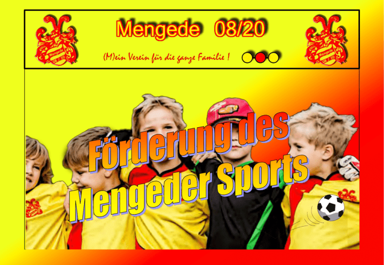 Wer sind wir ? Wir sind einer der größten Sportvereine im Dortmunder Nordwesten. Wir sind hervorgegangen aus den Vereinen „TBV Mengede 08“ und „DJK Spvg. Mengede 20“. Wir bieten unseren Mitgliedern Fußball, Breitensport und ein geselliges Vereinsleben. Wir spielen und trainieren im Mengeder Volksgarten auf (1 Rasenplatz + 1 Kunstrasen) und in zahlreichen Sporthallen im Mengeder Stadtbezirk. Wir haben ca. 480 Mitglieder, davon 260 Erwachsene und 220 Kinder und Jugendliche. Wir sind in der Saison 2014/2015 mit 16 Mannschaften (4 Senioren/ 12 Jugend) im Spielbetrieb. Wir spielen mit der 1. Mannschaft bereits im zweiten Jahr in der Westfalenliga 2. Wir sind dreimaliger Hallenfußballstadtmeister Dortmunds. Wer sind wir ? Wir spielen mit den meisten Jugendmannschaften in höheren Spielklassen. Wir richten in jedem Jahr viele Großveranstaltungen aus, die uns auch über die Grenzen von Mengede hinaus bekannt gemacht haben: „ TBV-Wochenende “ Ein seit über 30 Jahren aus der Tradition des TBV übernommenes Volksfest, das an drei Tagen im Sommer immer über 4000 Zuschauer in den Mengeder Volksgarten strömen lässt. Sommerjugendturniere mit Teams aus ganz NRW Im Juni und Juli veranstaltet die Jugendabteilung für alle Altersklassen große Jugendturniere mit 64 Vereinen aus ganz NRW „Familieade“ des LSB Seit 2003 sind wir Ausrichter der Familieade. Diese Veranstaltung ist eine Breitensportveranstaltung für Familien und wird vom Landessportbund unterstützt. Was sind unsere Ziele? Wir haben uns zu einem der größten Vereine im Kreis Dortmund entwickelt und wollen diesen Status Quo festigen und möglichst ausbauen. Die 1. Mannschaft strebt den Klassenerhalt in der Westfalenliga an. Die U23 Mannschaft dient in der Kreisliga A als geeigneter Unterbau für das Westfalenligateam. Das gesteckte Saisonziel unserer 3. Mannschaft ist die Etablierung in der Kreisliga B, fern den Abstiegsrängen Weiterführung und Forcierung der guten Jugendarbeit. Integration eigener Nachwuchsspieler in die Seniorenteams. Erweiterung der Breitensportabteilung. Ausbau unserer soliden finanziellen Grundlage aus unternehmerischer Sicht. Unterstützen Sie uns beim Erreichen unserer Ziele ! Wir bieten Ihnen individuelle Förderungsmöglichkeiten! Sponsorenpaket nach Absprache Mitgliedschaft im Förderkreis Bandenwerbung Werbung auf unserer Homepage Trikotwerbung Werbung auf Trainingsanzügen Sachspenden + Sachleistungen Plakat + Programmheftwerbung Lautsprecherwerbung etc. Mitgliedschaft im Förderkreis Der Förderkreis unseres Vereins ist im November 2003 gegründet worden mit dem Ziel, eine zusätzliche finanzielle Unterstützung zu schaffen. Der Förderkreis hat ein Führungsgremium, das über die Verteilung und Verwendung der Fördergelder wacht und einmal im Jahr darüber Rechenschaft abgibt. Über die Höhe und Häufigkeit der Zahlung entscheidet das Mitglied selbst. Der Eintritt in den Förderkreis ist ohne jegliche rechtliche Verpflichtung und die Zahlungen können jederzeit ohne Angabe von Gründen eingestellt werden. Über den Förderbetrag stellt der Verein jährlich eine steuerlich absetzbare Spendenquittung aus. Bandenwerbung Wir erstellen nach Ihren Vorstellungen eine Vorlage, die nach Ihrer Freigabe als Design für Ihre Werbetafel verwendet wird. Die Erstellung , Wartung und Pflege der Werbetafel ist in den Preisen enthalten. Standort: Umrandung des Rasen-oder Kunstrasenplatzes 0,75 x 3,00 m Platte, 1-2 oder mehrfarbig aus stabilen Kunststoff oder verschiedene Größen von Bannern aus Mesh®-Stoff (luftdurchlässig) Werbung auf unserer Homepage www.mengede-08-20.de Unsere Homepage im Internet ist eine viel besuchte Infoplattform, die sich ausgezeichnet für Ihr Werbebanner und/oder Ihr Firmenlink eignet. Hier können die Besucher viele wichtige Infos über Mengede 08/20 e.V. erfahren und sich auch über die Sponsoren und Förderer des Vereins informieren. Unsere Homepage wird ständig gepflegt. Klicken Sie sich einfach rein! Lautsprecherwerbung Etwa 400 bis 600 Zuschauer manchmal mehr, besuchen unsere Heimspiele im Mengeder Volksgarten. Mit einer pfiffigen Lautsprecherdurchsage vor dem Spiel und in der Halbzeitpause können Sie Ihre Firma/Ihre Dienstleistung ins Gespräch bringen. Programmheftwerbung Einmal im Jahr richtet Mengede 08/20 e.V. das seit mehr als 30 Jahren über die Grenzen Mengedes hinaus bekannte ‘TBV Wochenende‘ aus. Das extra hierfür erstellte Programmheft (Auflage 5000) bietet die Möglichkeit auch Ihre Werbung einem großen Leserkreis zugänglich zu machen. Das Heft wird in einer druck-technisch anspruchsvollen Ausgabe erstellt. Plakatwerbung Vor Saisonbeginn erstellen wir ein Spielankündigungsplakat, dass für ein Jahr die Spiele unserer Teams ankündigt. Dieses Plakat wird an zahlreichen Stellen unseres Stadtbezirks mindestens eine Woche vor dem Spiel ausgehangen. Werbung auf Trikots oder anderen Textilien Da Mengede 08/20 e.V. in der Saison 2014/15 16 Teams im Meisterschaftsrennen hat und wir einige Mannschaften mit neuen Trikots ausstatten mussten, sind uns Trikotsponsoren sehr willkommen. Auch im Bereich von Trainingsanzügen, Regenjacken etc. sind wir für Unterstützung dankbar. Sachspenden + Sachleistungen Auch Sachspenden ( z.B. Baumaterial oder Trainingsmaterial, Preise für Tombola etc.) oder Sachleistungen ( z.B. professionelle Mithilfe bei Baumaßnahmen) können uns eine große Hilfe sein. Hierfür stellen wir selbstverständlich auch Spendenquittungen aus. Nutzen Sie unseren Facebook-Account Seit einiger Zeit betreibt der Verein einen eigenen offiziellen Vereins-Facebook-Account über den unsere Freunde und Follower stets auf dem Laufenden gehalten werden. Neuste Infos, SpielPreviews und unmittelbare Nachberichterstattung von den Spielen unserer Kicker. Werden Sie hier unser Werbepartner und präsentieren Sie Ihr Unternehmen im Schulterschluss mit Mengede 08/20. . Schauen Sie einfach mal digital bei uns vorbei !!! Repräsentation auf VIP-Tickets Bei den H