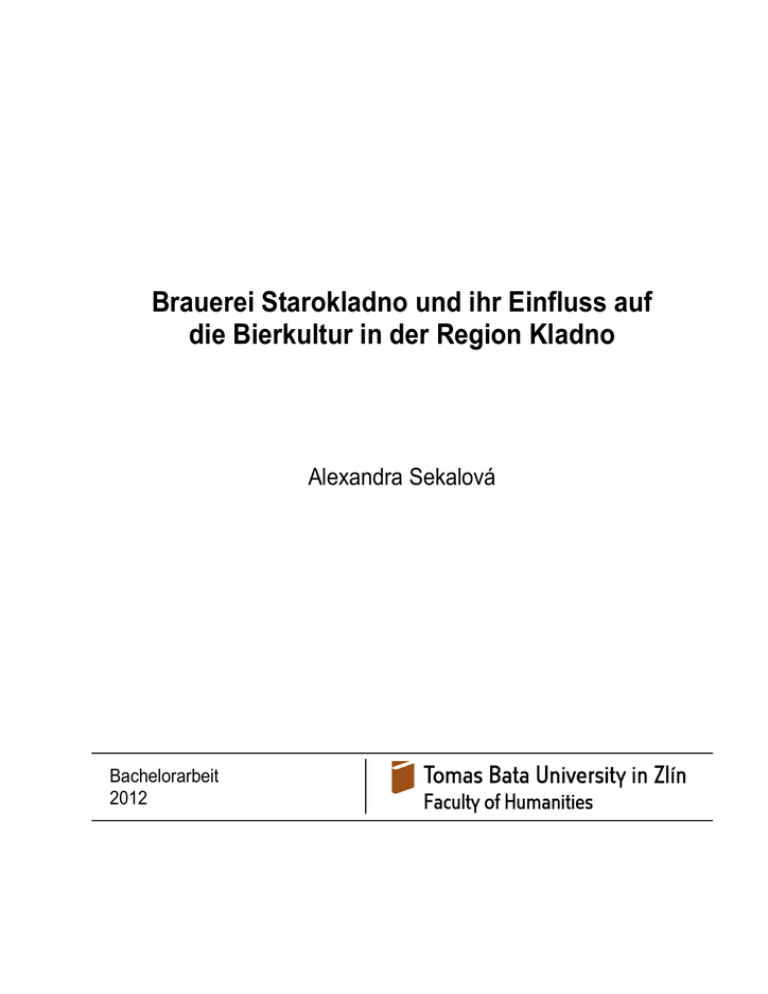 Brauerei Starokladno und ihr Einfluss auf die Bierkultur in der Region Kladno Alexandra Sekalová Bachelorarbeit 2012 ABSTRACT Diese Bachelorarbeit untersucht den Einfluss der Brauerei Starokladno auf die Kladno Region. Die Arbeit ist an zwei Teile geteilt, praktischen und theoretischen Teil. In dem theoretischen Teil werden die Grundfakten über das Bier beschreiben. Das bedeutet die Geschichte des Bieres, die Rohstoffen und die Weise, wie das Bier gebraut wird. Weil die Arbeit sich mit der Bierkultur in Kladno Region beschäftigt, wird in den theoretischen Teil noch die Stadt Kladno annähert. Im praktischen Teil wird die Brauerei Starokladno vorgestellt, und anhand der Beobachtung analysiert. Die Unternehmen wird mithilfe der SWOT Analyse analysiert, das bedeutet die Analyse von Stärken, Schwächen, Chancen und Risiken. Nach der Auswertung von hiesiger Bierkultur und anhand der Analyse kann man danach der Brauerei die Empfehlungen geben. Schlüsselwörter: Das Bier, Kladno, die Brauerei Starokladno, das Marketing, die SWOT Analyse, die Bierkultur ABSTRACT This bachelor work examines the influence of the brewery Starokladno in the Kladno region. The work is divided in two parts, theoretical and practical part. In the theoretical part are basic facts about the beer described. That means the history of beer, the ingredients and the ways, in which the beer is brewed. Because the work is by beer culture in Kladno region concerned, there is Kladno as the city mentioned as well. In the practical part is Starokladno brewery presented and analyzed on the basis of observation. The company is analyzed by using the SWOT analysis. That means analysis of strengths, weaknesses, opportunities and risks. After the evaluation of local beer culture and on the basis of analysis can then give the recommendations for the brewery. Schlüsselwörter: beer, Kladno, The Starokladno Brewery, marketing, SWOT analysis, beer culture Danksagung Ich möchte mich bei allen, die mich unterstützt haben, bedanken. Besonderer Dank gebührt Frau Mgr. Věra Kozáková, Ph.D und Herrn doc. Ing.Vratislav Kozák Ph.D, für Ihre wertvollen Ratschläge und der Leitung der Brauerei Starokladno, für ihre freundliche Einstellung. INHALTSVERZEICHNIS EINLEITUNG .................................................................................................................... 10 I THEORETISCHER TEIL ...................................................................................... 11 1 DAS BIER ................................................................................................................. 12 1.1 DIE GESCHICHTE DES BIERES ............................................................................... 12 1.1.1 Die Geschichte des Bieres in der Tschechischen Republik im 20. Jahrhundert ................................................................................................... 14 1.2 DIE ROHSTOFFE .................................................................................................... 15 1.2.1 Wasser .......................................................................................................... 15 1.2.2 Hopfen .......................................................................................................... 17 1.2.3 Malz.............................................................................................................. 18 1.2.3.1 Gerstenmalz ......................................................................................... 18 1.2.3.2 Weizenmalz ......................................................................................... 19 1.2.4 Hefe .............................................................................................................. 19 1.2.4.1 Arten von Bierhefe ............................................................................... 20 1.3 BIERHERSTELLUNG ............................................................................................... 20 1.3.1 Mälzen .......................................................................................................... 21 1.3.2 Maischen ...................................................................................................... 21 1.3.3 Läutern ......................................................................................................... 22 1.3.4 Kochen der Würze ........................................................................................ 22 1.3.5 Gären ............................................................................................................ 22 1.3.5.1 Obergärung .......................................................................................... 23 1.3.5.2 Untergärung ......................................................................................... 23 1.3.6 Ausreifen und Nachgären ............................................................................. 23 1.3.7 Filtrieren und Abfüllen ................................................................................. 23 1.4 BIERSORTEN ......................................................................................................... 24 1.5 2 KLEINBRAUEREIEN ............................................................................................... 25 DIE REGION KLADNO ......................................................................................... 27 2.1 DIE GESCHICHTE DER STADT KLADNO ................................................................. 28 2.2 KLADNO ALS INDUSTRIEGEBIET............................................................................ 29 II PRAKTISCHER TEIL ............................................................................................ 31 3 BRAUEREI „STAROKLADNO“........................................................................... 32 3.1 ALLGEMEINE INFORMATIONEN ZUM UNTERNEHMEN ............................................ 32 3.2 DESIGN UND ERSCHEINUNGSBILD DER BRAUEREI ................