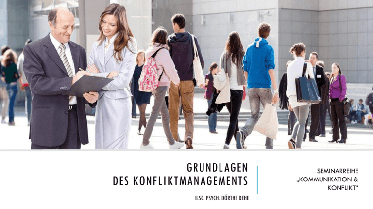 GRUNDLAGEN DES KONFLIKTMANAGEMENTS B.SC. PSYCH. DÖRTHE DEHE SEMINARREIHE „KOMMUNIKATION & KONFLIKT“ Was macht die Situation kritisch? Was braucht ein Konflikt? Konflikt – was passiert da? Kommunikationsverhalten in Konfliktsituationen Verschiedene Konfliktarten Verschiedene Konfliktformen DÖRTHE DEHE B. SC. PSYCHOLOGIE DIPL. RECHTSPFLEGERIN (FH) COACH & MEDIATORIN (FREIE UNIVERSITÄT BERLIN) STRESSMANAGEMENT-TRAINERIN (HOCHSCHULE POTSDAM) Verschiedenes Konfliktverhalten TRAINERIN FÜR PMR (HOCHSCHULE POTSDAM) Konfliktlösung COACHING I TRAINING I MEDIATION 5 Turbo-Tipps [email protected] I www.doerthedehe.de B.SC. PSYCH. DÖRTHE DEHE 2 WAS MACHT DIE SITUATION KRITISCH? Zusammentreffen gegensätzlicher Interessen oder Bedürfnisse Konflikt B.SC. PSYCH. DÖRTHE DEHE 3 WAS BRAUCHT EIN KONFLIKT ? Gegenseitige Beeinflussungsversuche Mindestens 2 Parteien Gefühl (als Antriebselement) Gemeinsames Konfliktfeld Konflikt Unterschiedliche Handlungsabsichten B.SC. PSYCH. DÖRTHE DEHE 4 kann sich auf einzelne Personen beschränken (intrapersonell), zwischen mehreren Menschen (interpersonell) oder EIN KONFLIKT zwischen mehreren Gruppen (intergruppal) stattfinden. B.SC. PSYCH. DÖRTHE DEHE 5 … ist eine Störung. … unterbricht den Handlungsablauf. … belastet. EIN KONFLIKT … hat die Tendenz zu eskalieren, d.h. er weitet sich aus und nimmt an Intensität zu. B.SC. PSYCH. DÖRTHE DEHE 6 Stellen Sie sich vor, Sie sind schon eine halbe Ewigkeit auf Parkplatzsuche. Sie haben es sehr eilig. Da sehen Sie ihn – IHREN Parkplatz!!! KONFLIKT WAS PASSIERT DA? Und dann kommt‘s… B.SC. PSYCH. DÖRTHE DEHE 7 Impuls • Denken • Emotion • Reaktion KONFLIKT – WAS PASSIERT DA? B.SC. PSYCH. DÖRTHE DEHE 8 IMPULS Kann zu unüberlegten Spontanreaktionen führen. B.SC. PSYCH. DÖRTHE DEHE 9 VERSCHIEDENE WELTEN …verschiedene Sichtweisen Jeder von uns konstruiert sein Bild seiner Umwelt. Jedes dieses Bilder ist wirklich. B.SC. PSYCH. DÖRTHE DEHE 10 KOMMUNIKATIONSVERHALTEN IN KONFLIKTSITUATIONEN Hilfreiches Augen als Kommunikationsmittel Sprechweise berücksichtigen Körperliche Nähe & Distanz Körpersprache Berührungen & Körperkontakt B.SC. PSYCH. DÖRTHE DEHE 11 KOMMUNIKATIONSVERHALTEN IN KONFLIKTSITUATIONEN MÖGLICHKEITEN UND UNMÖGLICHKEITEN DER VERBALEN KOMMUNIKATION Wenig hilfreich und eskalierend keine Begrüßung, keine Verabschiedung rechtfertigen anschuldigen / beschuldigen Abwiegeln vorbeireden überreden kein Interesse zeigen ins Wort fallen Reizwörter gebrauchen humorlos, verbittert, zynisch keine Zeit haben nur die eigene Seite sehen Persönlich angreifen B.SC. PSYCH. DÖRTHE DEHE 12 KOMMUNIKATIONSVERHALTEN IN KONFLIKTSITUATIONEN MÖGLICHKEITEN UND UNMÖGLICHKEITEN DER VERBALEN KOMMUNIKATION Hilfreich und deeskalierend begrüßen und verabschieden argumentieren und begründen auf die andere Person eingehen um Zustimmung werben nachfragen eigene Betroffenheit deutlich machen ausreden lassen Reizwörter vermeiden („müssen“, „Problem“) neutral bleiben Humor zeigen Zeit haben Gegenargumente ernst nehmen Person und Sache trennen B.SC. PSYCH. DÖRTHE DEHE 13 KOMMUNIKATIONSVERHALTEN IN KONFLIKTSITUATIONEN Empathie Faires und offenes Fragen Aktives Zuhören Übereinstimmung von verbalem und nonverbalem Verhalten Verdeutlichen, Erklären und Begründen Metakommunikation B.SC. PSYCH. DÖRTHE DEHE 14 VERSCHIEDENE KONFLIKTARTEN Teamkonflikte Ausschluss v. Mitgliedern, Rangverteilungen, Verstoß gg. Spielregeln, neue Mitglieder, … Zielkonflikte voneinander abhängige Parteien verfolgen unterschiedliche Ziele Persönliche Konflikte Innen, Selbstzweifel Beziehungskonflikte Wahrung eigener Interessen & Identität vs. Beziehung zum Gegenüber. Rollenkonflikte Neuverteilung von Kompetenzen Verteilungskonflikte 2 o. mehr wollen dieselbe Sache für sich Beurteilungskonflikte gemeinsames Ziel, aber verschiedene Wege werden für richtig gehalten B.SC. PSYCH. DÖRTHE DEHE 15 VERSCHIEDENE KONFLIKTFORMEN B.SC. PSYCH. DÖRTHE DEHE 16 Orientierung an den Zielen der Gegenpartei Nachgeben Win-Win Kompromiss Flucht Durchsetzen Orientierung an den eigenen Zielen und Belangen VERSCHIEDENES KONFLIKTVERHALTEN B.SC. PSYCH. DÖRTHE DEHE 17 Eskalationsstufen (nach F. Glasl) Gemeinsam in den Abgrund Zersplitterung Begrenzte Vernichtungsschläge Drohstrategien Gesichtsverlust Images und Koalitionen Taten statt Worte Debatte / Polemik Verhärtung WIE VERLÄUFT EIN KONFLIKT? B.SC. PSYCH. DÖRTHE DEHE 18 WAS TREIBT DIE ESKALATION VORAN? Wachsende Streitpunktlawinen Zunehmende Simplifizierung Arena-Ausweitung Zunehmende Personifizierung Pessimistischen Antizipation Selbsterfüllende Vorhersage B.SC. PSYCH. DÖRTHE DEHE 19 KONFLIKTANALYSE Hintergründe verstehen, Einsicht erlangen Meine Sicht: Eigene Gefühle und Bedürfnisse sowie persönliche Ziele und Interessen reflektieren. Sicht des/der Anderen: Empathisch in deren/dessen Lage versetzen. Neutrale Sicht eines Beobachters (Metaebene): Geschehen aus der Distanz einschätzen. B.SC. PSYCH. DÖRTHE DEHE 20 Pokern oder Problemlösen? VERSCHIEDENE FORMEN DER KONFLIKTLÖSUNG B.SC. PSYCH. DÖRTHE DEHE 21 Die Interessen zählen, nicht die Positionen Menschen und Probleme getrennt behandeln Einigung auf neutrale Beurteilungskriterien Optionen entwickeln, die für beide Partner Vorteile bringen HARVARD KONZEPT (URY, FISCHER & PATTON, 1981) B.SC. PSYCH. DÖRTHE DEHE 22 Augen auf! Klartext reden! Gefühle kontrollieren! Nicht lügen! Roten Faden beibehalten! 5 TURBO-TIPPS B.SC. PSYCH. DÖRTHE DEHE 23 VIELEN DANK FÜR IHRE AUFMERKSAMKEIT! VIELEN DANK FÜR IHRE AUFMERKSAMKEIT! B.SC. PSYCH. DÖRTHE DEHE 24 QUELLENANGABEN Fritzsche, T. & Höfle, K. (2008). Erste Hilfe im Konflikt. Tipps und Tools zur Konfliktlösung im Beruf. Zürich: Orell Fuessli Glasl, F. (2009). Konfliktmanagement. Ein Handbuch für Führungskräfte, Beraterinnen und Berater. Bern: Haupt-Verlag AG. Glasl, F. (2001 Selbsthilfe in Konflikten - Konzepte Übungen Praktische Methoden. Bern: Haupt-Verlag AG. Ur