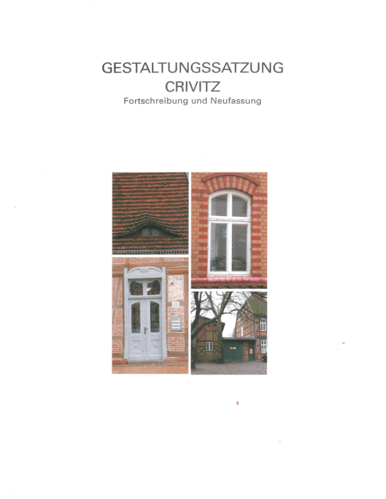 GESTALTU NGSSATZU NG CRIVITZ Fortschreibung und Neufassung ... Auftraggeber: GOS mbH Ludwigslust Treuhänderisch.er Sanierungsträger der Stadt Crivitz Platz des Friedens 2 19288 Ludwigslust Auftragnehmer : Architekturbüro Jawi Hubertusstraße 9 19059 Schwerin Bearbeitung: Dipl.-Ing. Architektin G. Dietrich Stand: Juli 2005 t GESTAL TUNGSSATZUNG CRIVITZ INHALTSVERZEICHNIS Hinweise 1 § 1 Räumlicher und Sachlicher Geltungsbereich 2 §2 Allgemeine Anforderungen 2 §3 Baukörper 4 §4 Dächer 6 §5 Fassaden 8 §6 Fenster, Türen, Tore 12 §7 Sonsti,ge Bauteile 14 §8 Werbeanlagen 16 §9 Ausnahmen 18 § 10 Ordnungswidrigkeiten 18 § 11 Inkrafttreten 18 Anlage zur Gestaltungssatzung Anlage 1 Fenster 19 Anlage 2 Haustüren 20 Anlage 3 Tordurchfahrten 21 Anlage 4 Dachgauben 22 Anlage 5 Quellenverzeichnis 23 Anlage 6 Impressum 24 Anlage 7 Formular zur Antragstellung 25 t . GESTAL TUNGSSATZUNG CRIVITZ BEG RÜNDU NG UND ERLÄUTERUNG 1 HINWEISE ---~----- - Wer wendet die Gestaltungssatzung an? Die Gestaltungssatzung wird von der Amtsverwaltung Crivitz auf Grund des § 86 LBauO M-V angewendet. Wann gilt die Gestaltungssatzung? Die Vorschriften der Gestaltungssatzung haben Gültigkeit für alle baulichen Maßnahmen und Veränderungen - gleich welcher Art - die an Gebäuden und baulichen Anlagen im räumlichen Geltungsbereich der Satzung vorgenommen werden. Da zahlreiche Gebäude unter Denkmalschutz stehen , sind neben der Anwendung dieser Satzung in vielen Fällen Auflagen des Amtes für Denkmalpflege zu beachten . Wann muß ein Antrag gestellt werden? Da die Gestaltungssatzung im Bereich der Erhaltungssatzung und der Sanierungssatzung liegt, muß auch für genehmigungsfreie Baumaßnahmen ein Antrag (siehe Hinweise) gestellt werden . Handelt es sich um genehmigungspflichtige Bauvorhaben , muß ein Bauantrag gestellt werden. Was passiert bei Verstößen? Verstöße gegen die Satzungsbestimmungen können mit Mitteln des Verwaltungszwanges verfolgt werden . Grundsätzlich gi lt: Ordnungswidrig handelt, wer vorsätzlich oder fahrlässig ohne die erforderliche Genehmigung bauliche Anlagen errichtet, ändert, benutzt oder abbricht (§ 84 LBauO M-V). Derartige Ordnungswidrigkeiten können mit einer Geldbuße gemäß§ 84 LBauO Absatz 3 geahndet werden. Hinweise zur Antragstellung fü r bau genehmigungsfreie, aber nach Erhaltungssatzung, Sanierungssatzung bzw. Denkmalschutzgesetz M-V genehmigungspflichtige Vorhaben . Eine Antragstellung auf beiliegendem Formular kommt nur in Betracht, wenn es sich um ein baugenehmigungsfreies Vorhaben handelt. Zur Klärung , ob für Ihr Vorhaben ein Baugenehmigungsverfahren durchgeführt werden muß oder ob Ihr Vorhaben nach einer Erhaltungs-, der Gestaltungs-, der Sanierungssatzung oder dem Den kmalschutzgesetz M-V genehmigungspflichtig ist, wenden Sie sich bitte mit den unten aufgeführten Unterlagen an die Amtsverwaltung Crivitz. Dort erhalten Sie einen gebührenfreien Bescheid über die Baugenehmigungsfreiheit sowie weitere Aus künfte zur Genehmigungsbedürftigkeit. Bei Baugenehm igungsfreiheit ist das beiliegende Formular vollständig ausgefüllt bei der Antragsteile für Bauvorhaben einzureichen. Unter Beschreibung des Vorhabens sind die beantragten Maßnahmen zu erläutern . Dazu gehören Angaben zu den verwendeten Materialien , Bausystemen, zu r Farbigkeit, Oberflächenstru ktur usw. und es muß dargestellt werden, welche Teile geändert oder erneuert werden sollen . Bei der Erneuerung von Fenstern und Türen sind Fassadenzeichnungen oder Fotos erforderlich , um den Bestand und die Planung darzustellen. Für neue Bauteile (speziell Fenster und Türen) sind die Konstruktionszeichnungen des Herstellers vorzulegen. Diese müssen z.B. bei Fenstern Angabe i"i zu den Maßen für Rahmen , Kämpfer, Sprossenstärke usw. beinhalten , eventuelle Profilierungen darstellen und Aussagen dazu treffen, wie viele Flügel ausgebildet werden. Zur Beachtung : Es besteht die Möglichkeit, für die Finanzierung geplanter Baumaßnahmen Zuwendungen im Rahmen der S ädtebauförderungsrichtlinie zu beantragen. Anfragen hierzu sind zu stellen an: Amt Crivitz Amtsverwaltung: Bauamt Amtstraße 5 19089 Crivitz Tel. 03863/5454-0 GOS mbH Treuhänderischer Sanierungsträger der Stadt Crivitz Platz des Friedens 2 19288 Ludwigslust Tel. 03874/5708-0 GESTAL TUNGSSATZUNG CRIVITZ 2 § 1 RÄUMLICHER UND SACHLICHER GELTUNGSBEREICH Die Satzung gilt für das im anliegenden Plan mit einer schwarz gestrichelten Linie umrandete Gebiet. Der Plan im Maßstab 1 : 1000 ist Bestandteil dieser Satzung . Er liegt bei der Amtsverwaltung Crivitz während der Dienststunden zu jedermanns Einsicht aus. Homepage: amtcrivitz.de ------------- §2 ALLGEMEINE ANFORDERUNGEN (1) Die Satzung gilt für Um-, Erweiterungs- und Neubauten sowie für alle sonstigen baulichen oder farblichen Veränderungen , soweit sie die äußere Gestaltung von baulichen Anlagen berühren . (2) Alle Maßnahmen sollen hinsichtlich des Gebäudetyps, der Mischung verschiedener Gebäudetypen , der Art und Größe des Baukörpers, der Dachausbildung , der Gliederung der Straßenfassaden , des Verhältnisses von Wandflächen zu Öffnungen , der Ausbildung der Öffnungen , des Materials der Oberflächen, der Farbgebung , der zusätzlichen Bauteile und der Werbeanlagen und Warenautomaten nach Maßgabe der folgenden Bestimmungen in der Weise ausgeführt werden , daß die geschichtliche, architektonische und städtebauliche Eigenart des Stadtbildes gesichert und gefördert wird . BEGRÜNDUNG UND ERLÄUTERUNG zu§ 1 3 RÄUMLICHER UND SACHLI CHER GELTUN GSBERE ICH Der Geltungsbereich umfaßt den ältesten Teil des Altstadtgrundrisses zwischen Crivitzer See, entlang der Mauerstraße und der Parchimer Straße bis zur Breiten Straße, entlang der Amtsstraße bis zum Uferbereich des Crivitzer Sees. In diesem Bereich gilt es , die historisch gewachsene Bebauung und die gewachsene Stadtstruktur der ehemaligen Ackerbü rgerstadt zu erhalten , und zugleich Rahmenbedin