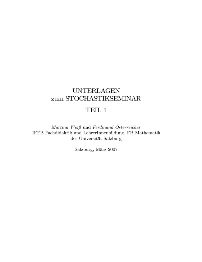 [18] Weiß, M.: Binomialverteilung und Normalapproximation: Grundlegendes und Hintergrundinformation für den Stochastikunterricht. Salzburg