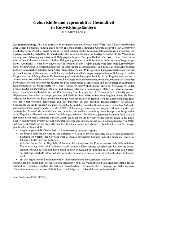 zahlreichenKulturen verbundenmit ihrer Fähigkeit,gesunde,rnännlicheKinder auf normalemWege zu gebären.Anderseitsist eine Schwangerschaftfür Frauenin den Tropen häufig eine sehr reale Lebensbedrohung.MedizinischeDienstleistungensind für viele Frauennicht bezahlbar,und Todesl?illebei Schwangeren