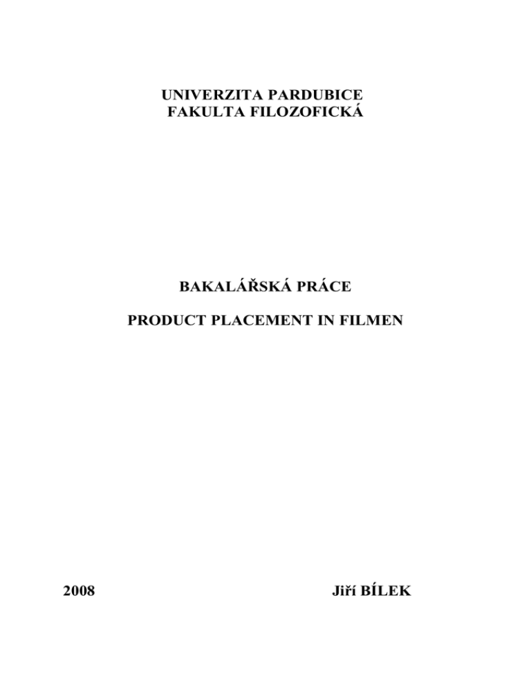 UNIVERZITA PARDUBICE FAKULTA FILOZOFICKÁ BAKALÁŘSKÁ PRÁCE PRODUCT PLACEMENT IN FILMEN 2008 Jiří BÍLEK UNIVERSITÄT PARDUBICE PHILOSOPHISCHE FAKULTÄT LEHRSTUHL FÜR FREMDSPRACHEN ABSCHLUSSARBEIT PRODUCT PLACEMENT IN FILMEN Autor: Jiří Bílek Betreuer: PhDr. Jan Čapek, Ph.D. 2008 UNIVERZITA PARDUBICE FAKULTA FILOZOFICKÁ KATEDRA CIZÍCH JAZYKŮ ZÁVĚREČNÁ PRÁCE PRODUCT PLACEMENT IN FILMEN Autor: Jiří Bílek Vedoucí: PhDr. Jan Čapek, Ph.D. 2008 Prohlašuji: Tuto práci jsem vypracoval samostatně. Veškeré literární prameny a informace, které jsem v práci využil, jsou uvedeny v seznamu použité literatury. Byl jsem seznámen s tím, že se na moji práci vztahují práva a povinnosti vyplývající ze zákona č. 121/2000 Sb., autorský zákon, zejména se skutečností, že Univerzita Pardubice má právo na uzavření licenční smlouvy o užití této práce jako školního díla podle § 60 odst. 1 autorského zákona, a s tím, že pokud dojde k užití této práce mnou nebo bude poskytnuta licence o užití jinému subjektu, je Univerzita Pardubice oprávněna ode mne požadovat přiměřený příspěvek na úhradu nákladů, které na vytvoření díla vynaložila, a to podle okolností až do jejich skutečné výše. Souhlasím s prezenčním zpřístupněním své práce v Univerzitní knihovně Univerzity Pardubice. V Pardubicích dne 26. 2. 2008 Jiří Bílek Abstrakt Die Arbeit befasst sich mit dem Marketingbegriff Product Placement. Es handelt sich um eine Produktplatzierung und deren Sichtbarmachung im Film. Im theoretischen Teil wird Product Placement definiert und seine Historie beschrieben. Es werden unterschiedliche Arten und Strategien von diesem Marketinginstrument formuliert, unter anderem Rechtlinien in Medien in Tschechien und im Ausland. Hauptziel des praktischen Teiles ist eine Filmanalyse des Product Placements. Es werden zwei Filme verglichen. Der tschechische Film „Rafťáci“ und der letzte Bondfilm „Casino Royal“. Es wird eine Liste der Partner herausgearbeitet, die die Filmherstellung finanzierten. Hauptteil der Filmanalyse ist eine genaue Produktaufzeichnung, die in den Filmen erscheinen. In welcher Zeitfolge und wie lange werden im Film platziert und anschließend wird prozentuell der Filmanteil des Product Placements ausgewertet. Abstrakt Práce se zabývá marketingovým pojmem Product Placement. Jedná se o umístění výrobku ve filmu a jeho zviditelnění. V teoretické části je Product Placement definován a nastíněna historie tohoto fenoménu. Dále jsou popsány rozdílné druhy a strategie tohoto marketingového instrumentu, mimo jiné i pravidla působení ve sdělovacích prostředcích v České republice a v zahraničí. V praktické části je hlavním cílem analýza Product Placementu ve filmu. Jsou porovnány dva filmy. Český film „Rafťáci“ a poslední bondovka „Casino Royal“. Je vypracován seznam partnerů, kteří financovali výrobu těchto filmů. Hlavní části analýzy je podrobné zaznamenání všech produktů, které se ve filmech objevují. V jakém časovém sledu a jak dlouho jsou umístěny a následně je procentuelně vyhodnocená část filmu, kterou zabírá Product Placement. Inhaltverzeichnis Obsah 1. Einleitung ............................................................................................................................... 1 Theoretischer Teil .................................................................................................................... 2 2. Die historische Entwicklung von Product Placement ............................................................ 2 3. Definitionen des Product Placements..................................................................................... 4 4. Product Placement Varianten ................................................................................................. 7 4.1 On-Set Placement ............................................................................................................. 8 4.2 Creative Placement (CP) .................................................................................................. 8 4.3 Verbales Placement .......................................................................................................... 9 5. Product Placement Strategien................................................................................................. 9 5.1 Generic Placement............................................................................................................ 9 5.2 Innovative Placement ..................................................................................................... 10 5.3 Image Placement ............................................................................................................ 13 5.4 Location oder Country Placement.................................................................................. 14 5.5 Idea Placement .............................................................................................................. 16 5.6 Value Placement............................................................................................................. 18 6. Begriffliche Abgrenzungen .................................................................................................. 18 6.1 Product Placement und Schleichwerbung ...................................................................... 18 6.1.1 Zum Begriff der Schleichwerbung .............................................................................. 19 6.1.2 Product Placement als spezielle Form von Schleichwerbung..................................... 20 6.2 Product Placement und Sponsoring................................................................................ 21 7. Product Placement als Kommunikationsprozeß................................................................... 22 8. Gegenwärtige Bedeutung von Product Placement ......