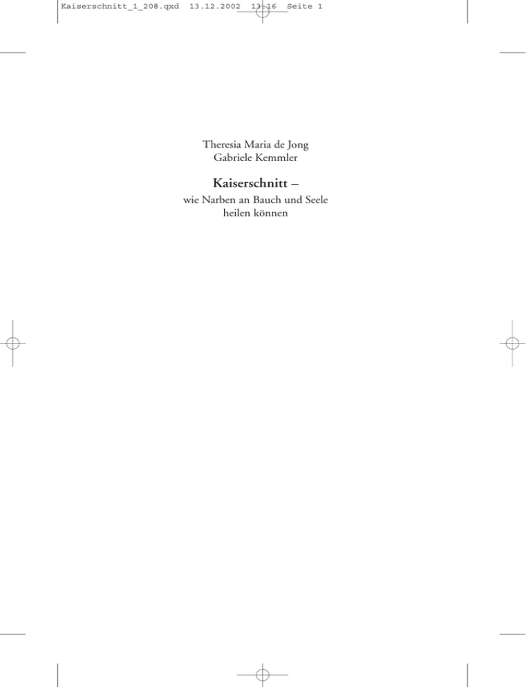 Kaiserschnitt_1_208.qxd 13.12.2002 13:16 Seite 1 Theresia Maria de Jong Gabriele Kemmler Kaiserschnitt – wie Narben an Bauch und Seele heilen können Kaiserschnitt_1_208.qxd 13.12.2002 13:16 Seite 2 Kaiserschnitt_1_208.qxd 13.12.2002 13:16 Seite 3 Theresia Maria de Jong Gabriele Kemmler Kaiserschnitt – wie Narben an Bauch und Seele heilen können Ein Ratgeber Mit einem Vorwort von Ingeborg Stadelmann Kösel 34461_DeJong_Kaiserschnitt.qxd 29.11.2006 14:57 Seite 4 Für Nora, Daniel und Jonathan Aktualisierte, überarbeitete Fassung der Erstausgabe, erschienen im Fischer Taschenbuch Verlag GmbH, Frankfurt 1996 4. Auflage 2007 Copyright © 2003 Kösel-Verlag, München, in der Verlagsgruppe Random House GmbH Umschlag: Elisabeth Petersen, München Umschlagmotiv: Larry Williams/Corbis Druck und Bindung: Pustet, Regensburg Printed in Germany ISBN 978-3-466-34461-1 www.koesel.de Kaiserschnitt_1_208.qxd 29.11.2004 10:00 Seite 5 Inhalt Vorwort (Ingeborg Stadelmann) 9 Einleitung 11 1 Diagnose Kaiserschnitt – Frauen berichten 15 Der Einfluss der Geburtsumgebung auf den Geburtsverlauf . . . . . . . . . . . . . . . . . . . . . . . . . . . . . . . . . Die Frau muss sich sicher fühlen . . . . . . . . . . . . . . . . . . . . . . Das medizinische Überprüfungssystem . . . . . . . . . . . . . . . . . 26 30 32 2 Sind Ärzte heute zu schnell mit dem Messer zur Hand? 35 Der »Faktor Arzt« . . . . . . . . . . . . . . . . . . . . . . . . . . . . . . . . . Der Faktor Geld . . . . . . . . . . . . . . . . . . . . . . . . . . . . . . . . . . 35 37 3 Wann muss ein Kaiserschnitt gemacht werden? 41 Geplanter oder Notkaiserschnitt . . . . . . . . . . . . . . . . . . . . . . Beckenendlage – Welche Wendungsmöglichkeiten gibt es? . . Vaginale Geburt bei Beckenendlage? . . . . . . . . . . . . . . . . . . . Wann kann ein Kaiserschnitt vermieden werden? . . . . . . . . . Wahl der Narkose . . . . . . . . . . . . . . . . . . . . . . . . . . . . . . . . . Periduralanästhesie Spinalanästhesie Vollnarkose 43 47 50 52 54 58 61 62 4 Historische Entwicklung der Kaiserschnittindikation 65 Inhalt 5 Kaiserschnitt_1_208.qxd 13.12.2002 13:16 Seite 6 5 Geburt und Gebären – Welche Faktoren spielen eine Rolle? 70 Die Psychologie, Soziologie und Physiologie der Geburt . . . . Geburt – das unbekannte Erlebnis Unsere verschütteten Geburtsinstinkte – die entfremdete Geburt Der kindliche Geburtsstress Geburt fordert »die ganze Frau« Geburtshelfer Mann: Geschlechtsrollenkonflikte bei der Geburt . . . . . . . . . . . . . . . . . . . . . . . . . . . . . . . . . Was bedeutet die eigene Geburt? . . . . . . . . . . . . . . . . . . . . . . Welchen Einfluss hat das Kind auf den Verlauf der Geburt? . . . . . . . . . . . . . . . . . . . . . . . . . . . . . . . . . . . . Die Mutter-Kind-Bindung . . . . . . . . . . . . . . . . . . . . . . . . . . 71 73 74 76 79 81 87 93 97 6 Wunschkaiserschnitt – das Geschäft mit der Angst 106 7 Was bedeutet der Kaiserschnitt für das Kind? 115 Physiologische Folgewirkungen des Kaiserschnitts für das Kind . . . . . . . . . . . . . . . . . . . . . . . . . . . . . . . . . . . 115 Durch eine »andere Tür« auf die Welt . . . . . . . . . . . . . . . . . . 117 8 Die Auseinandersetzung mit der Kaiserschnitterfahrung 123 Gesellschaftlicher Druck und Weiblichkeitsideale . . . . . . . . . Psychische Folgen der Kaiserschnittgeburt für die Mutter . . . Depressionen nach der Geburt Phasen der Kaiserschnittverarbeitung . . . . . . . . . . . . . . . . . . 123 130 132 139 9 Einmal Kaiserschnitt – immer Kaiserschnitt? 145 Der zweite Kaiserschnitt . . . . . . . . . . . . . . . . . . . . . . . . . . . . 147 6 Inhalt Kaiserschnitt_1_208.qxd 13.12.2002 13:16 Seite 7 10 Hilfen für Kaiserschnittmütter 149 Geburtsvorbereitungskurse . . . . . . . . . . . . . . . . . . . . . . . . . . Vorbereitung auf den Kaiserschnitt – Wie es »trotz allem« noch ein gutes Geburtserlebnis werden kann . . . . . . . . . . . Was erwartet die Frau im Operationssaal? . . . . . . . . . . . . . . . Das Vertrautwerden mit dem Baby . . . . . . . . . . . . . . . . . . . . Die Rolle des Vaters . . . . . . . . . . . . . . . . . . . . . . . . . . . . . . . Die heilende Wirkung des Stillens . . . . . . . . . . . . . . . . . . . . . Wenn Mutter und Kind getrennt werden . . . . . . . . . . . . . . . Sexualität und Partnerschaft . . . . . . . . . . . . . . . . . . . . . . . . . Kaiserschnittgruppen . . . . . . . . . . . . . . . . . . . . . . . . . . . . . . 149 155 158 164 169 173 178 182 184 11 Die Narbe als Erinnerung – Schlussbemerkungen 189 Anhang 191 Anmerkungen . . . . . . . . . . . . . . . . . . . . . . . . . . . . . . . . . . . . Literatur . . . . . . . . . . . . . . . . . . . . . . . . . . . . . . . . . . . . . . . . Literaturempfehlungen . . . . . . . . . . . . . . . . . . . . . . . . . . . . . Adressen . . . . . . . . . . . . . . . . . . . . . . . . . . . . . . . . . . . . . . . . Über die Autorinnen . . . . . . . . . . . . . . . . . . . . . . . . . . . . . . . 191 196 201 202 207 Inhalt 7 Kaiserschnitt_1_208.qxd 13.12.2002 13:16 Seite 8 Kaiserschnitt_1_208.qxd 13.12.2002 13:16 Seite 9 Vorwort Mit diesem Buch ist es gelungen, auf ein derzeit hochbrisantes Thema in der Geburtshilfe aufmerksam zu machen. Mehr denn je wird von Medizinern, Hebammen und werdenden Eltern der Wunschkaiserschnitt diskutiert. Doch so dankbar alle Beteiligten auch sind, dass heute viele Kinder und auch ihre Mütter die Kaiserschnitt-Geburt in gutem vitalen Zustand überstehen, so sehr sollten sich die an der Indikation »Kaiserschnitt« beteiligten Personen bewusst sein, dass es sich nicht nur um einen operativen Eingriff handelt, der in kurzer Zeit vergessen ist. In diesem Buch kommen Mütter und Väter zu Wort, die von ihren wahren Gefühlen nach einem Kaiserschnitt erzählen – von ihrer Trauer, den Selbstvorwürfen und Versagensgefühlen, von ihren Trennungsängsten und Gefühlen der Verlassenheit sowie über ihre extreme Wut gegen sich, das Kind und d