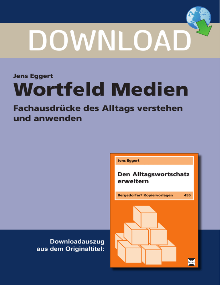 DOWNLOAD Jens Eggert Wortfeld Medien Fachausdrücke des Alltags verstehen und anwenden Downloadauszug aus dem Originaltitel: Name: Datum: Komplizierte Medienlandschaft „Was macht ihr denn gerade in Deutsch?“, fragt Tobias seinen Freund Peter während der Pause. „Medienkunde oder so was Ähnliches“, antwortet Peter. „Medienkunde? Was macht ihr denn da?“ „Och, bisher haben wir darüber gesprochen, welche unterschiedlichen Medien wir kennen: Fernseher, Radio …“, antwortet Peter. „Das ist echt interessant. Eben haben wir überlegt, welche Begriffe wir heute für die verschiedensten Dinge verwenden. Nehmen wir doch zum Beispiel das Radio. Früher verwendete man Begriffe wie Hörfunk oder Rundfunk“, beginnt er zu erklären. „Auf vielen Programmzeitschriften fürs Fernsehen steht das Wort TV. Das ist die Abkürzung für Television und das ist das englische Wort für Fernseher.“ „Dafür kenne ich noch andere Begriffe“, lacht Tobias. „Meine Mutter meint immer, ich solle nicht dauernd die Glotze laufen lassen. Mein Vater fängt dann auch noch an und sagt: ‚Mach endlich die Mattscheibe aus.‘“ „Da siehst du es! Es gibt so viele Begriffe für ein und dasselbe Gerät. Und englische Begriffe werden im Fernsehen immer beliebter. Wenn es um die Nachrichten geht, benutzen manche Sender jetzt auch den Begriff News.“ „Ja, und die Nachrichtensprecher schalten dann immer zu ihren Reportern, Korrespondenten oder Berichterstattern. Ist das auch immer dasselbe?“, fragt Tobias. „Weiß ich auch nicht. Muss ich nachher mal fragen“, antwortet Peter. „Und wie ist das dann bei der Zeitung? Sind das nun Reporter oder Journalisten?“, will Tobias weiter wissen. „Da weiß ich es: Zu Reportern kann man auch Journalisten sagen. Und genauso meinen die Begriffe Zeitung und Presse das Gleiche.“ Tobias nickt: „Oh, man! So viele Begriffe!“ „Wir haben dann auch noch über Werbung gesprochen. Es ist so ärgerlich: Auf unserem Briefkasten steht ,Bitte keine Werbung einwerfen‘, aber die ganze Reklame bekommen wir als Beilage mit unserer Zeitung geliefert. Das nervt, denn ich muss den ganzen Papierkram immer zum Container bringen.“ „Wenn ich im Web surfe, öffnen sich immer wieder jede Menge Werbebanner, manche sagen auch Pop-ups dazu. Auch im Internet bist du vor ungewollter Werbung nicht sicher.“ d a o l t n h w c i o s D An r u z Schreibe auf: Welche Begriffe aus der Geschichte bedeuten das Gleiche? Rundfunk, der Hörfunk der Fernseher, die Television, das TV, die Glotze, die Mattscheibe die Nachrichten, die News der Reporter, der Journalist, der Korrespondent, der Berichterstatter die Zeitung, die Presse die Werbung, die Reklame das Web, das Internet das Pup-up-Fenster, das Werbebanner das Radio, der J. Eggert: Wortfeld Medien © Persen Verlag GmbH, Buxtehude 1 Name: Datum: Komplizierte Medienlandschaft „Was macht ihr denn gerade in Deutsch?“, fragt Tobias seinen Freund Peter während der Pause. „Medienkunde oder so was Ähnliches“, antwortet Peter. „Medienkunde? Was macht ihr denn da?“ „Och, bisher haben wir darüber gesprochen, welche unterschiedlichen Medien wir kennen: Fernseher, Radio …“, antwortet Peter. „Das ist echt interessant. Eben haben wir darüber gesprochen, welche Begriffe wir heute für die verschiedensten Dinge verwenden. Nehmen wir doch zum Beispiel das Radio. Früher verwendete man Begriffe wie Hörfunk oder Rundfunk“, beginnt er zu erklären. „Auf vielen Programmzeitschriften fürs Fernsehen steht das Wort TV. Das ist die Abkürzung für Television und das ist das englische Wort für Fernseher.“ „Dafür kenne ich noch andere Begriffe“, lacht Tobias. „Meine Mutter meint immer, ich solle nicht dauernd die Glotze laufen lassen. Mein Vater fängt dann auch noch an und sagt: ‚Mach endlich die Mattscheibe aus, sonst bekommst du noch selbst eine.‘“ „Da siehst du es! Es gibt so viele Begriffe für ein und dasselbe Gerät. Und englische Begriffe werden im Fernsehen immer be- liebter. Wenn es um die Nachrichten geht, benutzen manche Sender jetzt auch den Begriff News.“ „Ja, und die Nachrichtensprecher schalten dann immer zu ihren Reportern, Korrespondenten oder Berichterstattern. Ist das auch immer dasselbe?“, fragt Tobias. „Weiß ich auch nicht. Muss ich nachher mal fragen“, antwortet Peter. „Und wie ist das dann bei der Zeitung? Sind das nun Reporter oder Journalisten?“, will Tobias weiter wissen. „Da weiß ich es: Zu Reportern kann man auch Journalisten sagen. Und genauso meinen die Begriffe Zeitung und Presse das Gleiche.“ Tobias nickt: „Oh, man! So viele Begriffe!“ Wir haben dann auch noch über Werbung gesprochen. Es ist so ärgerlich: Auf unserem Briefkasten steht ,Bitte keine Werbung einwerfen‘, aber die ganze Reklame bekommen wir als Beilage mit unserer Zeitung geliefert. Das nervt, denn ich muss den ganzen Papierkram immer zum Container bringen.“ „Wenn ich im Web surfe, öffnen sich immer wieder jede Menge Werbebanner, manche sagen auch Pop-ups dazu. Auch im Internet bist du vor ungewollter Werbung nicht sicher.“ d a o l t n h w c i o s D An r u z Schreibe auf: Welche Begriffe aus der Geschichte bedeuten das Gleiche? Beispiel: das Radio, der Rundfunk, … ___________________________________________________________________________________ ___________________________________________________________________________________ ___________________________________________________________________________________ ___________________________________________________________________________________ ___________________________________________________________________________________ ___________________________________________________________________________________ ___________________________________________________________________________________ ___________________________________________________________________________________ J. Eggert: Wortfeld Medien © Persen Verlag GmbH, Buxtehu