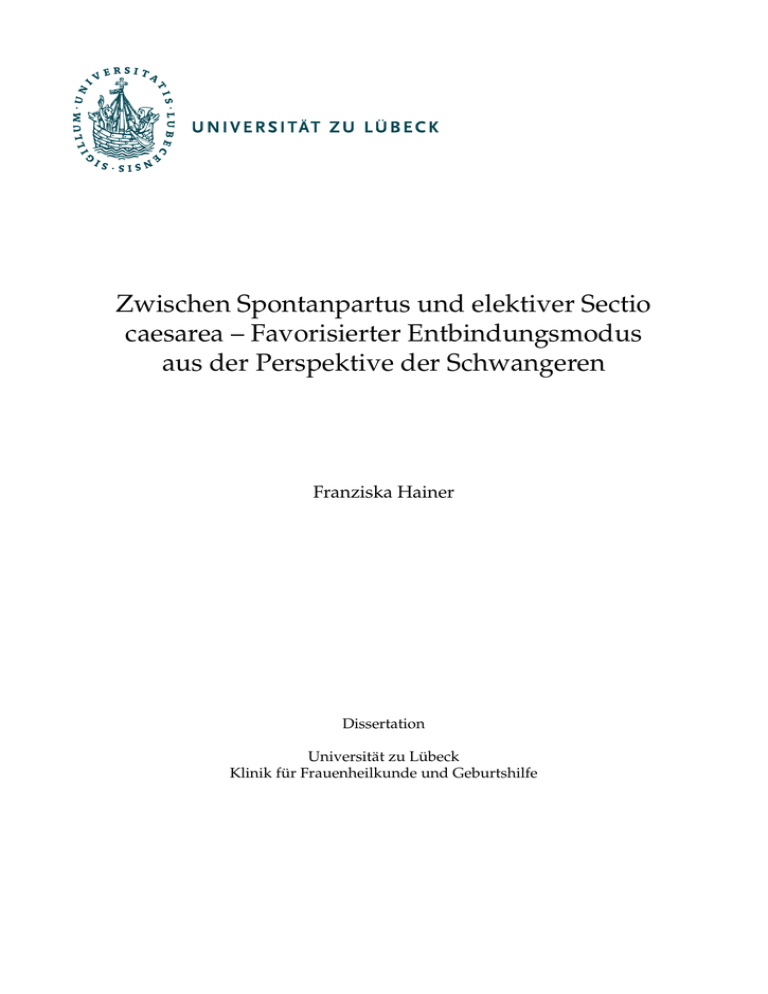 Zwischen Spontanpartus und elektiver Sectio caesarea – Favorisierter Entbindungsmodus aus der Perspektive der Schwangeren Franziska Hainer Dissertation Universität zu Lübeck Klinik für Frauenheilkunde und Geburtshilfe Aus der Klinik für Frauenheilkunde und Geburtshilfe der Universität zu Lübeck Direktor: Prof. Dr. med. Klaus Diedrich Zwischen Spontanpartus und elektiver Sectio caesarea – Favorisierter Entbindungsmodus aus der Perspektive der Schwangeren Inauguraldissertation zur Erlangung der Doktorwürde der Universität zu Lübeck — Aus der Sektion Medizin — Vorgelegt von Franziska Hainer aus München Lübeck 2010 1. Berichterstatterin 2. Berichterstatter Prof. Dr. med. Dipl. psych. Ingrid Kowalcek Prof. Dr. med. Stephan Klaus Tag der mündlichen Prüfung: 27.9.2011 Zum Druck genehmigt. Lübeck, den 27.9.2011 Zugunsten der besseren Lesbarkeit wird in dieser Dissertation auf die Ergänzung der weiblichen Form verzichtet. Selbstverständlich sind insbesondere bei Berufsbezeichnungen beide Geschlechter gemeint. Inhaltsverzeichnis Abkürzungsverzeichnis viii 1. Einleitung und Fragestellung 1 1.1. Einleitung . . . . . . . . . . . . . . . . . . . . . . . . . . . . . . . . . . . . . . . 1 1.2. Theoretischer Hintergrund . . . . . . . . . . . . . . . . . . . . . . . . . . . . . . 3 1.2.1. Spontanpartus . . . . . . . . . . . . . . . . . . . . . . . . . . . . . . . . 3 1.2.2. Vaginal operative Entbindung . . . . . . . . . . . . . . . . . . . . . . . 3 1.2.3. Sectio caesarea . . . . . . . . . . . . . . . . . . . . . . . . . . . . . . . . 4 1.2.4. Entwicklung der Sectioraten . . . . . . . . . . . . . . . . . . . . . . . . 5 1.2.5. Indikationsstellung zur Sectio caesarea . . . . . . . . . . . . . . . . . . 7 1.2.6. Entbindungsmodus im wissenschaftlichen Diskurs . . . . . . . . . . . 10 1.3. Bewertungskategorien der vaginalen Geburt . . . . . . . . . . . . . . . . . . . 11 1.3.1. Sicherheit der Mutter . . . . . . . . . . . . . . . . . . . . . . . . . . . . . 11 1.3.2. Sicherheit des Kindes . . . . . . . . . . . . . . . . . . . . . . . . . . . . 11 1.3.3. Postpartale Inkontinenz . . . . . . . . . . . . . . . . . . . . . . . . . . . 12 1.3.4. Sexualität . . . . . . . . . . . . . . . . . . . . . . . . . . . . . . . . . . . 13 1.3.5. Mutter-Kind-Bindung . . . . . . . . . . . . . . . . . . . . . . . . . . . . 13 1.3.6. Anwesenheit einer Begleitperson . . . . . . . . . . . . . . . . . . . . . . 13 1.3.7. Geburtserlebnis und Wehenschmerz . . . . . . . . . . . . . . . . . . . . 14 1.3.8. Natürlichkeit und Kontrollverlust . . . . . . . . . . . . . . . . . . . . . 15 1.4. Bewertungskategorien der Sectio caesarea . . . . . . . . . . . . . . . . . . . . . 15 1.4.1. Sicherheit der Mutter . . . . . . . . . . . . . . . . . . . . . . . . . . . . . 15 1.4.2. Sicherheit des Kindes . . . . . . . . . . . . . . . . . . . . . . . . . . . . 16 1.4.3. Spätfolgen . . . . . . . . . . . . . . . . . . . . . . . . . . . . . . . . . . . 17 1.4.4. Schmerzkontrolle . . . . . . . . . . . . . . . . . . . . . . . . . . . . . . . 17 1.4.5. Mutter-Kind-Bindung . . . . . . . . . . . . . . . . . . . . . . . . . . . . 18 v Inhaltsverzeichnis 1.4.6. Begleitperson . . . . . . . . . . . . . . . . . . . . . . . . . . . . . . . . . 18 1.4.7. Wunschtermin und Planbarkeit . . . . . . . . . . . . . . . . . . . . . . . 18 1.5. Empirische Erhebung . . . . . . . . . . . . . . . . . . . . . . . . . . . . . . . . . 19 1.5.1. Die Wahl der Geburtseinrichtung . . . . . . . . . . . . . . . . . . . . . . 19 1.5.2. Das maternale Alter . . . . . . . . . . . . . . . . . . . . . . . . . . . . . 19 1.6. Spezielle Fragestellung . . . . . . . . . . . . . . . . . . . . . . . . . . . . . . . . 21 2. Materialien und Methoden 22 2.1. Datenerhebung . . . . . . . . . . . . . . . . . . . . . . . . . . . . . . . . . . . . 22 2.1.1. Fragebogenbatterie . . . . . . . . . . . . . . . . . . . . . . . . . . . . . . 22 2.1.2. Methodische Probleme . . . . . . . . . . . . . . . . . . . . . . . . . . . . 24 2.1.3. Datenschutz . . . . . . . . . . . . . . . . . . . . . . . . . . . . . . . . . . 24 2.2. Statistik und Datenanalyse . . . . . . . . . . . . . . . . . . . . . . . . . . . . . . 24 2.2.1. Hintergrundvariablen . . . . . . . . . . . . . . . . . . . . . . . . . . . . 24 2.2.2. Unabhängige Variable . . . . . . . . . . . . . . . . . . . . . . . . . . . . 25 2.2.3. Abhängige Variable . . . . . . . . . . . . . . . . . . . . . . . . . . . . . 25 2.2.4. Statistische Auswertung . . . . . . . . . . . . . . . . . . . . . . . . . . . 26 3. Ergebnisse 28 3.1. Soziodemographischer Hintergrund . . . . . . . . . . . . . . . . . . . . . . . . 28 3.1.1. Altersverteilung . . . . . . . . . . . . . . . . . . . . . . . . . . . . . . . 28 3.1.2. Ausbildungsstand . . . . . . . . . . . . . . . . . . . . . . . . . . . . . . 28 3.1.3. Erwerbstätigkeit . . . . . . . . . . . . . . . . . . . . . . . . . . . . . . . 29 3.1.4. Dauer des Kinderwunsches . . . . . . . . . . . . . . . . . . . . . . . . . 29 3.1.5. Sterilitätstherapie in der bestehenden Schwangerschaft . . . . . . . . . 30 3.1.6. Vorausgegangene Schwangerschaften (Gravidität) . . . . . . . . . . . . 30 3.1.7. Angaben zu früheren Schwangerschaften . . . . . . . . . . . . . . . . . 30 3.1.8. Verlauf früherer Schwangerschaften und Geburten (Parität) . . . . . . 31 3.2. Vorteile der Entbindungsarten . . . . . . . . . . . . . . . . . . . . . . . . . . . . 31 3.2.1. Beurteilung der vaginalen Geburt . . . . . . . . . . . . . . . . . . . . . 31 3.2.2. Beurteilung der Sectio caesarea . . . . . . . . . . . . . . . . . . . . . . . 32 3.3. Nachteile der Entbindungsarten . . . . . . . . . . . . . . . . . . . . . . . . . . 33 3.3.1. Beurteilung der vaginalen Geburt . . . . . . . . . . . . . . . . . . . . . 33 3.3.2. Beurteilung der Sectio caesarea . . . . . . . . . . . . . . . . . . . . . . . 34 vi Inhaltsverzeichnis 3.4. Bewertung der Entbindungsarten in Abhängigkeit vom maternalen Alter . . 35 3.4.1. Signifikant unterschiedlich bew