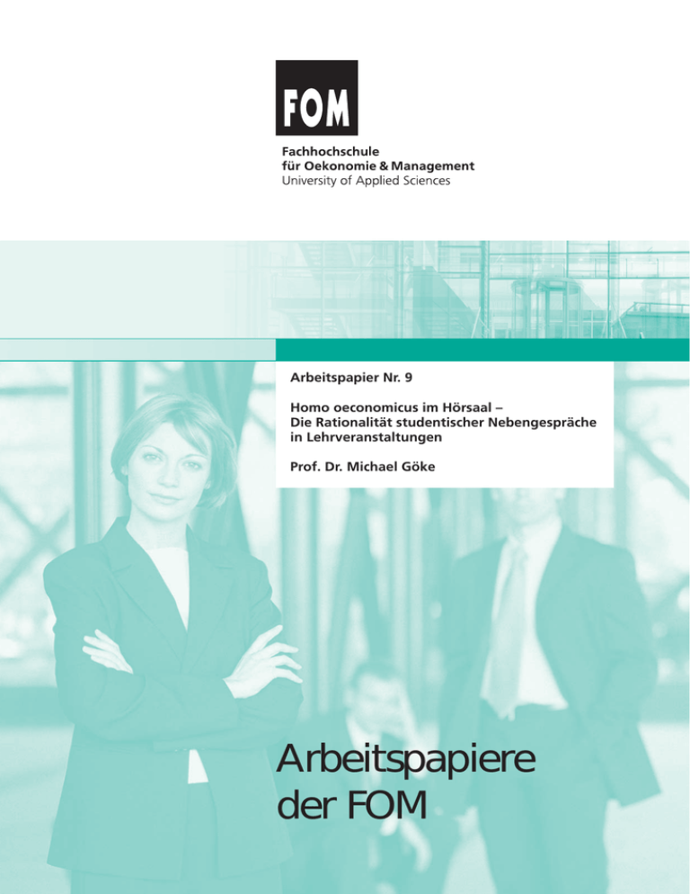 Arbeitspapier Nr. 9 Homo oeconomicus im Hörsaal – Die Rationalität studentischer Nebengespräche in Lehrveranstaltungen Prof. Dr. Michael Göke Arbeitspapiere der FOM 2 Inhaltsverzeichnis 1. Einleitung ........................................................................................................................... 3 2. Rationale Studenten und Lehrveranstaltungen ................................................................... 4 3. Information und Sanktion: Handlungsempfehlungen für Lehrende ................................ 14 4. Fazit .................................................................................................................................. 17 Literaturverzeichnis .................................................................................................................. 20 Abbildungsverzeichnis Abbildung 1: Entscheidungsstruktur des Studierenden ............................................................. 6 Abbildung 2: Störung in Vorlesungen: Individuelle Handlung und soziale Handlungsfolge.. 12 3 1. Einleitung Studierende und Hochschullehrer kennen das Problem. In Lehrveranstaltungen widmen Studierende ihre Aufmerksamkeit nicht dem Dozenten und den durch ihn vermittelten Lehrinhalten, sondern Nebengesprächen mit umsitzenden Kommilitonen. Das stört zunächst diejenigen, die der Stoffvermittlung folgen wollen. Bei entsprechender Ausdehnung im Vorlesungssaal wird auch die Aufmerksamkeit des Dozenten auf diese Störkommunikation gelenkt. Damit wird seine Konzentration beeinträchtigt, so dass die Bedürfnisbefriedigung aller Beteiligten insgesamt sinkt. Auf den ersten Blick erscheint diese Vorliebe zur Privatunterhaltung der Studierenden in der Vorlesung überraschend. Geht man davon aus, dass die Entscheidung für die Aufnahme eines Studiums an einer Hochschule bewusst getroffen wird, also unter vernünftiger Abwägung subjektiver Wünsche und objektiver Möglichkeiten, so kann angenommen werden, dass die Studierenden grundsätzlich an den vermittelten Inhalten des Studiums interessiert sind. Damit müsste bei ihnen auch eine entsprechende Motivation vorliegen, in den jeweiligen Vorlesungsveranstaltungen den präsentierten Inhalten zu folgen bzw. eine gute und damit konzentrierte Lernatmosphäre zu schaffen und zu erhalten. Diesem scheinbaren Gegensatz widmet sich der vorliegende Aufsatz. Er untersucht dabei das Verhalten von Studierenden in Vorlesungen 1 auf der Basis eines einfachen ökonomischen Theoriezugangs. So wird argumentiert, dass Nebengespräche in Lehrveranstaltungen, also die Unterhaltung mit dem Nachbarn, das Schwätzen mit Umsitzenden und so weiter, Verhaltensmuster darstellen, die als ökonomisch sinnvoller Umgang mit Knappheitssituationen interpretiert werden können. Mithin wird hier ein Ansatz der Erklärung von Störhandlungen gewählt, der auf dem ökonomischen Modell des sog. Homo oeconomicus basiert. 2 Hierbei wird „menschliches Handeln als rationale Auswahl aus Alternativen“ 3 zur Erreichung individueller Ziele interpretiert. Ausgehend von diesem Grundmodell kann dann erklärt werden, in welcher Weise sich das deviante Verhalten letztlich für alle Teilnehmer einer Lehrveranstaltung als rationale Verhaltensweise herausstellen kann. 4 1 2 3 4 Der Begriff „Vorlesung“ wird im Folgenden synonym für alle Arten von Lehrveranstaltungen benutzt. Vgl. zum Modell des Homo oeconomicus und seinen Annahmen Kirchgässner (1991) und Erlei; Leschke; Sauerland (2007). Kirchgässner (1991), S. 12, Hervorhebung im Original. Damit reflektiert der Ansatz den gängigen Strukturkern ökonomischer Theorien. Vgl. dazu Erlei; Leschke; Sauerland (2007), S. 50 f. 4 Wissenschaftliche Ansätze in den Sozialwissenschaften zeichnen sich nicht allein dadurch aus, dass sie reale Probleme analytisch adäquat strukturieren und beschreiben. Sie dienen darüber hinaus insbesondere dazu, Lösungen für diese Probleme zu finden. Das gilt auch für den hier verfolgten Problemansatz. Auf der Basis der Schlussfolgerungen der theoretischen Analyse werden daher folgend Problemlösungsstrategien abgeleitet, die sich als Handlungsempfehlungen für Dozenten darstellen. Information und Sanktion stellen sich dabei als Mittel zur Reduktion von Störkommunikation in Vorlesungen heraus. 2. Rationale Studenten und Lehrveranstaltungen Studierende verfolgen das Ziel, einen bestimmten Studienabschluss zu erreichen.5 Die individuelle Qualität des erreichten Studienabschlusses stellt im Berufsleben mittelbar Optionen auf künftige Einkommen (und Einkommenszuwächse) dar. 6 Je höher die Qualität des Abschlusses, desto größer wird c.p. der Wert der Option sein. Jedoch stellt sich die Qualität eines Studienabschlusses als eine mehrdimensionale Größe dar. So wird zweifelsohne gerade in mittelbis langfristiger Sicht die Qualität des erreichten Abschlusses durch die Gesamtheit des durch das Studium akkumulierten Humankapitals repräsentiert. Hierzu können etwa das erworbene fachspezifische Wissen und die gewonnene Lebenserfahrung ebenso gezählt werden wie die geknüpften persönlichen Kontakte. Allerdings sind die genannten Qualitätseigenschaften für einen potentiellen Nachfrager nach Arbeitskraft nicht direkt erkennbar, tragen sie doch den Charakter eines Erfahrungsgutes. Unmittelbar feststellbar ist hingegen die Benotung des individuellen Abschlusses. Sie fungiert als Signal für die Qualität des Absolventen und wird daher für den potentiellen Arbeitgeber ein wichtiges Entscheidungskriterium sein. 7 Insbesondere wegen dieses Signalcharakters stellen die Abschlussnoten damit eine besonders bedeutsame Zielgröße für Studierende dar. 8 5 6 7 8 Auch die Entscheidung für ein Studium, ein bestimmtes Studienfach und für eine bestimmte Hochschule stellt sich aus ökonomischer Sicht als Rationalentscheidung dar, die hier allerdings nicht weiter untersucht werden soll. Vgl. dazu etwa McKenzie; Staaf (1974), S. 34 ff. Insofern kann Bildung als Investitionsgut