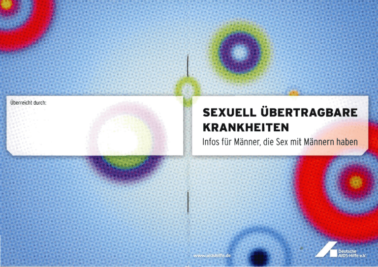 Überreicht durch : SEXUELL ÜBERTRAGBAR ÜBERTRAGBARE SEXUELL E KRANKHEITEN Infos für für Männer Männer,, die Sex Sex mit Männer Männernn habe habenn •• Deutsche AIDS-Hilfe e.V. •B* INHALTSVERZEICHNIS R BROSCHÜRE ZU DIESE DIESER Wohlbefinden beitragen auch Risiken mi Sex kann kann Spa Spaßß machen un undd zum Wohlbefinden beitragen,, aber auch mitt m Beispiel Beispiel Krankheiten, mit dene sich dabei anstecken anstecken sich bringen bringen.. Zu Zu m denenn ma mann sich kann - manchma m Küssen Zu diesen diesen sexuel übertragbaren Krankheikann· manchmall scho schonn bei beim Küssen.. Zu sexuelll übertragbaren fürsexually transmitted diseases) rJiseases) gehören gehöre n ten (auch STD STDss genannt; Abkürzun Abkürzungg für sexually transmitted Tripper ode z. B. B. auch auch Hepatitis, Chlamydien-Infektionen Chlamydien-lnfektionen ode neben HIV HIV, , Tripper oderr Syphili Syphiliss z. oderr Feigwarzen. Feigwarzen. Zu dieser Broschür Zu Broschüree ....................................................................................................... ... 03 Woran bemerk bemerkee ic ichh eine sexuel sexuelll übertragbare Krankheit Krankheit?? .................................. 0044 Die schlechte Nachricht Viele dieser Krankheite Die Nachricht:: Viele Krankheitenn bemerkt ma mann zuerst überhaup überhauptt nicht. Sie Sie können dan nicht. dannn in aller Still Stillee den Körper schädigen und unbemerkt aann weitergegeben werden. Wenn Wenn man man sie sie nicht rechtzeiti andere weitergegeben rechtzeitigg entdeck entdecktt un undd l lebensbedrohliche n Gesundheitsschäbehandelt, kan kannn eess zu schweren, zum Tei Teillebensbedrohlichen m erhöhen STD Risiko einer einer HIV-Übertragung und den kommen kommen.. Außerde Außerdem STDss das Risiko HIV-Übertragung,, und HIV-Positive sind anfällige anfälligerr fü fürr STDs STDs.. beachten? ................................................................... 05 05 Was is istt be beii der Behandlun Behandlungg zzuu beachten? Wie STDs vorbeugen? vorbeugen? 0......................................................................................... 055 W ie kann ic ichh STDs Die wichtigsten wichtigsten STD STDss HIV 0 ..............................................................................................................•.....•............. 066 Hepatitis 0.........................................................._ .................................................•.....•............. 088 Herpes........................................................................................................................... . . 1 100 Herpes _............. Feigwarzen 1....................................................................................................................•........ ... 111 Tripper 1........................................................................................................................................ 122 1 Syphilis ........................................................................................................................................ 144 Unspezifische Harnröhrenentzündung 1............................................ _............................... 166 Chlamydien-lnfektion 1......................................................................................................... 177 Chlamydien-Infektion LGV 1 ..................................................................................................................................... 188 Candida-lnfektion (Pilze) (Pilze) 1....................................................................................................... 199 Candida-Infektion Filzläuse 2 ................................................................................................................................... 200 Krätze .. ................................................................................................................................... 2211 I Die gute Nachricht Nachricht:: STD STDss lassen sich gu gutt un undd effektiv behandeln behandeln,, wen wennn sie Sexpartner mitbehandeln mitbehandeln lassen rechtzeitig erkann erkanntt werde werdenn und sich auch die Sexpartner lassen.. das Risiko einer Ansteckun Außerdem kan kannn ma mann durch Safe Saferr Sex das Risiko einer Ansteckungg senken, und e STD Hepatitis AA und BB)) gibt es eine Impfung. gegen manch manche STDss (z. B. B. Hepatitis Diese mit Männer Männern,, die Sex Sex mit Männernn haben, haben. die die wichtigsten wichtigstenInfo Infoss D iese Broschüre bietet Männern übertragbaren Krankheite n und gibt Tipps, wie wie man sich zu den häufigsten sexuell sexuell übertragbaren Krankheiten selbst un undd seine Partne Partnerr schütze schützenn kann kann.. zwischen HIV und Besondere Infos fü fürr HIV-Positiv HIV-Positivee und zu den Wechselwirkungen Wechselwirkungen zwischen HIV und m Ea ©-Symbol anderen STD STDss sind im Text mit de dem -Symbol und durch blau blauee Schrif Schriftt hervorge hervorge-hoben. BEMERKE ICH ICH EINE EINE SEXUELL SEXUELL ÜBERÜBERWORAN BEMERKE TRAGBARE KRANKHEIT? TRAGBARE sind Mögliche Anzeichen Anzeichen sind Ausflus Ausflusss aus Schwan Schwanzz oder Hinter Hinternn ~ Brennenn ode oderr Schmerzen beim Wasserlassen Wasserlassen,, Juckreiz de derr Harnröhr Harnröhree -> Brenne ~ Blutt oder Schlei Schleim Verfärbungg von Uri Urinn ode oderr Stuhl Stuhl,, Schmerze Schmerzenn beim -> Blu m im Stuhl, Verfärbun Stuhlgang -> wiederkehrend m Wechse ~ wiederkeh rendee Durchfälle Durchfälle,, evtl. iim Wechsell mi mitt Verstopfung Verstopfung -> Schmerze ~ Schmerzenn an Penis, Hoden oder Hintern Hintern,, Schwellun Schwellungg der Hode Hodenn •* Bläschen ~ Bläschen,, Knötchen, Knötchen, Warzen und offene Stellen an Genitalien, Mund, Mund, Hinter Hinternn oder am ganzen Körper -» Rötunge n ode m ~ Rötungen oderr weißlich weißlichee bis gelbliche Beläg Belägee im Mund Mund,, am Schwanz oder aam Hi