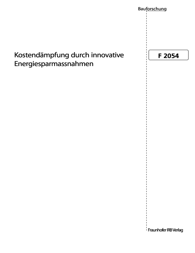 Bauforschung Kostendämpfung durch innovative Energiesparmassnahmen F 2054 Fraunhofer IRB Verlag F 2054 Bei dieser Veröffentlichung handelt es sich um die Kopie des Abschlußberichtes einer vom Bundesmini sterium für Verkehr, Bau- und Wohnungswesen -BMVBW- geförderten Forschungsarbeit. Die in dieser Forschungsarbeit enthaltenen Darstellungen und Empfehlungen geben die fachlichen Auffassungen der Verfasser wieder. Diese werden hier unverändert wiedergegeben, sie geben nicht unbedingt die Meinung des Zuwendungsgebers oder des Herausgebers wieder. Dieser Forschungsbericht wurde mit modernsten Hochleistungskopierern auf Einzelanfrage hergestellt. Die Originalmanuskripte wurden reprotechnisch, jedoch nicht inhaltlich überarbeitet. Die Druckqualität hängt von der reprotechnischen Eignung des Originalmanuskriptes ab, das uns vom Autor bzw. von der Forschungsstelle zur Verfügung gestellt wurde. © by Fraunhofer IRB Verlag Vervielfältigung, auch auszugsweise, nur mit ausdrücklicher Zustimmung des Verlages. Fraunhofer IRB Verlag Fraunhofer-Informationszentrum Raum und Bau Postfach 80 04 69 70504 Stuttgart Nobelstraße 12 70569 Stuttgart Telefon (07 11) 9 70 - 25 00 Telefax (07 11) 9 70 - 25 08 E-Mail [email protected] www.baufachinformation.de INSTITUT FOR INDUSTRIALISIERUNG DES BAUENS Forschung • Entwicklung • Planung • Professor Dr.-Ing. Dr. h.c. Helmut Weber RUF: (0511) 79 60 88 • FERNSCHREIBER: 09-23868 (TECHNISCHE UNIVERSITÄT HANNOVER) Hannover, 22. August 1986 29. U-We-Hu/me ABSCHLUSSBERICHT KOSTENDAMPFUNG DURCH INNOVATIVE ENERGIESPARMASSNAHMEN ( Querschnittsbericht ) Forschungsarbeit im Auftrage des Bundesministers für Raumordnung, Bauwesen und Städtebau, Bonn Geschäftszeichen B I - 80 01 85 - 201 Bearbeitet im Institut für Industrialisierung des Bauens, Hannover durch Dr.-Ing. habil. Heinz Hullmann POSTANSCHRIFT DES INSTITUTS: POSTFACH-NR. 21 0560 D-3000 HANNOVER 21 (HERRENHAUSEN) FORSCHUNGSGRUPPE A: SCHLOSSWENDER STRASSE 1 FORSCHUNGSGRUPPE B: BUSSILLIATWEG24 FORSCHUNGSGRUPPE C: HEGEBLACH 11 • FORSCHUNGSGRUPPE D: MORGENSTERNWEG 8C 2 GLIEDERUNG A. EINLEITUNG 1. Ziel der Untersuchung 2. Eingrenzung des Themenbereiches Methodik und Umfang 3. B. INNOVATIVE ENERGIESPARMASSNAHMEN 1. MASSNAHMEN ZUR WÄRMEDÄMMUNG 1.1 Vakuum-Isolation 1.1.1 Vakuum-Isolation für geschlossene Bauteile 1.1.2 Transparente / transluzente Vakuum-Isolation 1.2 Variable Wärmedämmung 1.2.1 Folienrollo 2. MASSNAHMEN ZUR WÄRMESPEICHERUNG 2.1 2.2 2 . 3 Sensible Wärmespeicherung Latent- Wärmespeicher Thermochemische Wärmespeicherung 3. MASSNAHMEN ZUR ENERGIEGEWINNUNG 3. 1 Transparente Wärmedämmung 3.1.1 Lichtdurchlässiges energiegewinnendes Isolationssystem (LEGIS) 3.2 Fluoreszenz-Kollektor 3 . 2 . 1 Tageslichtbeleuchtungssysteme mit Fluoreszenzkollektoren 3.2.2 Fluoreszenzkollektor zur photovoltaischen Energieumwandlung 4. MASSNAHMEN ZUR WÄRMERÜCKGEWINNUNG 4. 1 Poröse Außenbauteile 4.1.1 Porenlüftung 4.1.2 SOLPOR-System 4.1.3 Atmungslüftung 4.2 Belüftete Fenster und Fassaden 3 5. SONSTIGE MASSNAHMEN 5. 1 Luftdurchströmte Bauteile 5.1.1 Air-Therm-Wärmerückgewinnungssystem 5.2 Flüssigkeitsdurchströmte Bauteile 5.2.1 Wasserdurchströmte Außenbauteile zur Raumheizung und -kühlung 5 . 2 . 2 Massiv-Absorber 5.3 Infrarotreflexion. 5.3.1 Infrarot-reflektierende Schichten 5.3.2 Außenwand mit richtungsabhängiger Strahlungscharakteristik 5 . 3 . 3 Infrarot-reflektierende Verglasungen C. ERGEBNIS 1. 2. 3. 4. D. Forschung und Entwicklung Technische Konsequenzen Ökonomische Konsequenzen Zusammenfassung ANHANG I II Literatur Konzept für ein Verbundprojekt 5 1. ZIEL DER UNTERSUCHUNG Die Bemühungen um eine Reduzierung des Primärenergieverbrauchs und gleichzeitig um einen Schutz der Umwelt vor Belastungen haben in den vergangenen Jahren zu vielerlei Ansätzen geführt, die auch zum Teil bei Neubau- und Modernisierungs-Vorhaben Berücksichtigung gefunden haben. Weitgehend sind diese Maßnahmen in der einschlägigen Fachliteratur sowie in der Schriftenreihe des BMBau dokumentiert. Darüber hinaus wurden weitere mögliche Maßnahmen zur Energieeinsparung in Gebäuden entwickelt, die aber 'aus unterschiedlichen Gründen noch nicht zu einer breiten Anwendung kommen konnten. Solche neue, bisher im wesentlichen aus Versuchen bekannte Maßnahmen zur Energieeinsparung werden hier in einem Querschnittsbericht zusammengestellt und erläutert. Damit sollen der Fachwelt die nötigen Informationen gegeben sowie Weiterentwicklungen und Innovationen angeregt werden. Dies ist besonders wichtig, weil die angesprochenen Entwicklungen vielfach in solchen Bereichen erfolgen, die keine unmittelbare Verbindung zum Bauwesen haben • 2. EINGRENZUNG DES THEMENBEREICHES Maßnahmen zur Energieeinsparung sind nicht nur in weiten Bereichen des Bauwesens, sondern in fast allen heute angewandten Technologien denkbar und möglich. Im Rahmen dieses Querschnittsberichtes sollen solche Maßnahmen insbesondere nach den folgenden Kriterien angesprochen werden: es soll sich um Maßnahmen und/oder Bauteile handeln die in den Bereichen des Rohbaus und des Ausbaus von Gebäuden anwendbar sein können; 6 - die Maßnahmen /Bauteile ollen für diese Bereiche des Bauwesens neuartig sein, sei es im Sinne einer völligen Neuentwicklung oder auch im Sinne einer Anpassung von Technologien, die in anderen Bereichen bereits angewendet werden; - die Maßnahmen/Bauteile sollen die Chance einer Kostendämpfung im Bauwesen bieten, sei es auf der Seite der Investition durch preiswerte Herstellung der Energiesparmaßnahmen oder auch auf der Seite der Betriebskosten durch einen besonders hohen Einsparungseffekt für Energie bei vertretbarem Aufwand. Die Maßnahmen werden in diesem Sinne ausgewählt und, ihrer Funktion entsprechend, den Gruppen - Wärmedämmung - Wärmespeicherung Energiegewinnung Wärmerückgewinnung zugeordnet (s.Abb.A.1). Dabei handelt es sich bei den "Energiesparmaßnahmen" in der Mehrzahl der Fälle um solche Maßnahmen, die 