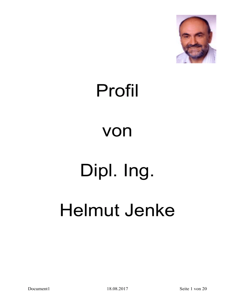 Profil von Dipl. Ing. Helmut Jenke Document1 18.08.2017 Seite 1 von 20 Inhaltsverzeichnis Allgem. Daten ........................................................................................................................ 3 Position: .................................................................................................................................. 3 Ausbildung: ............................................................................................................................ 3 Qualifizierung: ....................................................................................................................... 3 Einsatzort:............................................................................................................................... 3 Fremdsprachen: ...................................................................................................................... 4 Hardware: ............................................................................................................................... 4 Betriebssysteme – Server und Client: .................................................................................... 4 Serverprodukte ....................................................................................................................... 4 Datenbanken: .......................................................................................................................... 4 Datenkommunikation: ............................................................................................................ 4 Produkte/Standards/Erfahrungen: .......................................................................................... 5 Netzwerkbereich..................................................................................................................... 5 Tools ....................................................................................................................................... 5 Branchen: ............................................................................................................................... 6 Erfahrungen: ........................................................................................................................... 7 Document1 18.08.2017 Seite 2 von 20 Allgem. Daten Wohnort Jahrgang EDV - Erfahrung seit Staatsbürgerschaft 03103 Neupetershain Deutschland 1955 1981 deutsch Profil erstellt am Profil zuletzt geändert am 02.08.03 07.05.2017 Position: Beratung / Consulting/ Coaching / Schulung / Training Projektleitung / Organisation / Koordination Administration von Systemen und Programmen / Support Arbeit nach den Grundsätzen von IT Service Management (z.B. ITIL) Fachlicher Schwerpunkt: Analyse, Konzeption, Administration komplexer Systeme Festanstellung gleichrangig zu freiberuflicher Mitarbeit Ausbildung: 1961 -1971 Polytechnische Oberschule Neupetershain Abschluss: 10. Klasse 1971 - 1974 Berufsschule des Gaskombiates Schwarze Pumpe Berufsausbildung mit Abitur Abschluss: Elektromonteur mit Abitur 1974 - 1976 Berufsausübung und Armeezeit 1976 - 1981 Studium: wissenschaftlicher Gerätebau Friedrich-Schiller Universität Jena Abschluss: Dipl. Ing. Gerätetechnik Qualifizierung: seit August 2009: Weiterbildung zum Microsoft Certified Systems Engineer (MCSE) Einsatzort: Deutschland: komplett Document1 18.08.2017 Seite 3 von 20 Europa: deutschsprachiger Raum Fremdsprachen: Englisch Hardware: Serversyteme HP Personal Computer versch. Marken Drucker Modem Storage Systeme 19" Verteilersysteme Router Switche Betriebssysteme – Server und Client: MS-DOS Microsoft Windows 7 (Home, Pro, Ultimate) und Windows 8.1 LINUX UBUNTU WINDOWS Server 2003/2008/ R2 mit Hype-V und Windows 2012 R2 Serverprodukte MS-SQL Server 2000 / 2005 /2008 MS-Exchange Online (Office 365) MS- Sharepoint 2013 MS-EXCHANGE 2000 / 2003 /2013 MS-Projektserver 2003 /10 Datenbanken: Access 2010/2013 MS SQL Server 2000 / 2005 /2008 /2012/2014 mySQL PostgreSQL Oracle Datenkommunikation: Ethernet Internet, Intranet LAN, WLAN SMTP TCP/IP Windows Netzwerk Document1 18.08.2017 Seite 4 von 20 Produkte/Standards/Erfahrungen: Office - Bereich MS Office 2007/10/13 Prof. MS Access 2013 MS-Visio 2007/10 MS-Projekt 2003/7/10 Pro kaufmännischer Bereich ERP- Software Geographisches Informationssystem Liegenschaftssoftware Datensicherung Acronis Backup Advanced Suite (11.5) Veritas Backup Exec 8.6/9.0/10 Arcserve 2000 HP Dataprotector (Omniback) Projektmanagement Bereich PMO Tätigkeit mit MS Projekt Überwachungstool für Projektmanagement Voice Bereich SIPGATE (VOIP) Netzwerkbereich WINDOWS Server 2008/12 R2 ADS – Design/VB- Script EXCHANGE Server 2000/3/13 Remote Desktop Service in/für Hochverfügbarkeitsumgebungen Tools Hyena Docusnap Crystal Report ApacheDirectoryStudio Softerra LDAP Browser ADTD Active Directory Topology Diagrammer VB/Windows Scripting für AD PowerShell (AD) Document1 18.08.2017 Seite 5 von 20 Branchen: Kommunalwesen / Verwaltungen Behörden / Justiz IT - Dienstleister Medizin Automotive Luftfahrt Industrie /Druckmaschinen Touristik Transportdienstleister / Mauterhebung Bank/Finanzdienstleister Document1 18.08.2017 Seite 6 von 20 Erfahrungen: Projekt Projektlaufzeit: 08/2016 bis andauernd (voraussichtlich Ende Sept. 2017) Aufgabenstellung: technische Server – und Client Unterstützung für die Neustrukturierung der IT Landschaft der KfH - Kuratorium für Dialyse und Nierentransplantation e.V. Ort: Land Hessen techn. DV Basis: Windows Server 2003/2008/12 R2, 10/100/1000/10000 Mbit/s Ethernet, W-LAN, TCP/IP Protokoll, Chip – Kartenleser ; Druckerserver und lokale Drucker Tätigkeitsschwerpunkte: Technische Durchführung der Zentralisierung von Datenbanken und Anwendungen sowie Hardware. Austausch von ca. 250 dezentralen Servern in mehreren Schritten. Analyse der dezentralen Server. Migration von lokalen Anwendungen auf die zentralen Systeme im RZ. Einrichtung eines neuen Standortservers und Ausbr
