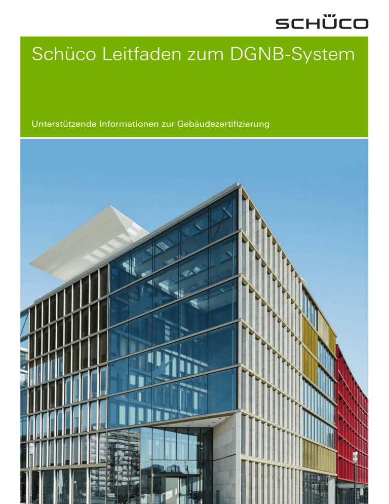 Schüco Leitfaden zum DGNB-System Unterstützende Informationen zur Gebäudezertifizierung 2 Schüco Aluminium Systeme Schüco Aluminium Systeme Schüco Systeme für DGNB-Zertifizierungs-Gebäude Durch die Verwendung von Schüco Systemen, in Kombination mit anderen Gebäudekomponenten, können Sie bei einer DGNB-Zertifizierung bei mehr als 50 % der Kriterien des Systems einen positiven Beitrag in der Gesamtbewertung erreichen. Die Erreichbarkeit dieser Kriterien wurde von dem unabhängigen und qualifizierten Ingenieurbüro Drees & Sommer analysiert und bestätigt, das auf Green Buildings und deren Zertifizierungen spezialisiert ist. Ihr Schüco Ansprechpartner kann Ihnen dabei behilflich sein, die am besten geeignete Lösung für Ihr Projekt zu wählen, und Ihnen alle produktbezogenen, für die DGNB-Zertifizierung erforderlichen Unterlagen bereitstellen. Dies beinhaltet alle allgemeinen Dokumente und Zertifikate sowie projektspezifische Informationen und Daten, die Sie benötigen, um die volle Punktzahl, bezogen auf den Produkteinfluss, bei einer Zertifizierung nach dem DGNB-System zu erreichen. Einige Schüco Referenzen mit DGNB-Zertifizierungen: MaxCologne, Köln ZVE, Stuttgart Bürogebäude Nord 1, Frankfurt am Main Über Schüco International KG Schüco – Systemlösungen für Fenster, Türen und Fassaden Mit seinem weltweiten Netzwerk aus Partnern, Architekten, Planern und Investoren realisiert Schüco nachhaltige Gebäudehüllen, die im Einklang mit Natur und Technik den Menschen mit seinen Bedürfnissen in den Vordergrund stellen. Dabei werden höchste Ansprüche an Design, Komfort und Sicherheit erfüllt, gleichzeitig durch Energieeffizienz CO2-Emissionen reduziert und so die natürlichen Ressourcen geschont. Das Unternehmen mit seinen Geschäftsbereichen Metallbau und Kunststoff liefert zielgruppengerechte Produkte für Neubau und Modernisierung, die den individuellen Anforderungen der Nutzer in allen Klimazonen gerecht werden. Schüco ist mit 4.800 Mitarbeitern und 12.000 Partnerunternehmen in 78 Ländern aktiv und hat in 2013 einen Jahresumsatz von 1,5 Milliarden Euro erwirtschaftet. Weitere Informationen unter www.schueco.de. Aluminium Systeme Schüco Schüco Aluminium-Fenstersysteme Ein System für alle Anforderungen Mit der Fenstergeneration AWS (Aluminium Window System) bündelt Schüco ein System für alle Anforderungen. Funktionale Vorteile verbinden sich mit architektonischen und gestalterischen Aspekten. In wenigen und aufeinander abgestimmten Bauteilen vereinen sich Vorzüge wie hohe Wärmedämmung auf Passivhaus-Niveau mit geringen Bautiefen und schlanken Ansichtsbreiten. Alle Beschläge lassen sich auf Basis von standardisierten Schnittstellen manuell, mechatronisch oder zentral über die Gebäudesteuerung bedienen. Schüco Aluminium-Türsysteme Sicher und vielseitig Eine Tür ermöglicht nicht nur den Zugang zu einem Bauwerk. Sie muss wie kaum ein anderer Gebäudebestandteil hohe Ansprüche an Wärmedämmung, Sicherheit, Funktionalität und Design erfüllen. Die Schüco ADS Türsysteme (Aluminium Door Systems) wurden genau für diese Anforderungen entwickelt. Sie bieten exzellente Dämmwerte und lassen sich durch das umfangreiche Systemprogramm flexibel für vielseitige Lösungen in der Gebäudesicherheit und -automation einsetzen. Und sie überzeugen mit einem zeitlosen Design, das sich hervorragend mit den Schüco Aluminium Fenstersystemen AWS kombinieren lässt. Schüco ADS Türsysteme fügen sich wirtschaftlich in nahezu alle baulichen Konzepte ein und erlauben so effiziente und stilvolle Architekturlösungen. Schüco Aluminium-Fassadensysteme Effiziente Lösungen für alle Ansprüche Der effiziente Umgang mit Energie ist heute wie morgen eine zentrale Determinante moderner Gebäudekonzepte. Nationale und europäische Vorgaben sind dabei ebenso zu beachten wie die vielfältigen Anforderungen in den Bereichen Sicherheit, Automation und Design. Bestens aufeinander abgestimmte Lösungen, die alle architektonischen und technischen Ansprüche an Fassaden und Lichtdächer optimal erfüllen, spielen dabei eine wesentliche Rolle. Hierfür bietet Schüco ein umfassendes Systemspektrum für den Neubau und die Modernisierung. Es umfasst Pfosten-RiegelFassaden, Aufsatzkonstruktionen in Holz und Stahl sowie Structural Glazing und vielfältige Elementfassaden inklusive einer breiten Systempalette integrierbarer Öffnungselemente. Schüco Aluminium-Brand- und Rauchschutzsysteme Geprüfte Systemlösungen für alle Sicherheitsanforderungen Schüco bietet komplett geprüfte Systemlösungen für Fassaden, Fenster, Türen sowie Trennwände inklusive Beschlägen und Verglasungen mit unterschiedlichen Brand- und Rauchschutzanforderungen an. Schüco Sicherheitssysteme erfüllen alle Anforderungen an die aktuellen deutschen und europäischen Normen. Dank der Systemkompatibilität lassen sich elegante fließende Übergänge zwischen Brand-/Rauchschutzelementen und Standardbereichen realisieren. Das Ergebnis sind filigrane Gesamtlösungen, die Planern, Architekten und Bauherren ein hohes Maß an Planungssicherheit gewährleisten – und das alles bei maximaler Gestaltungsfreiheit und zeitlosem Design. Schüco Brand- und Rauchschutzsysteme verfügen über Multifunktionseigenschaften und ermöglichen eine effiziente Fertigung und Montage. 3 4 Schüco Aluminium Systeme Wertorientierte Perspektive für grüne Gebäude Schüco unterstützt Investoren, Architekten, Bauträger und Metallbauer in allen Projektphasen von der ersten Idee bis zum Rückbau einer Fassade. Dies schließt die Beratung bei Zertifizierungen, die Planung mit nachhaltigen Systemen, Umweltproduktdeklarationen und das Recycling der Gebäudehülle ein. 360° Nachhaltigkeit – von der Idee bis zum Recycling Nachhaltigkeit im Bausektor bedeutet, eine Immobilie so zu planen, zu bauen und zu betreiben, dass sie ökologisch, ökonomisch und soziokulturell zukunftsfähig ist. Dafür braucht es hochwertige, innovative und ressour