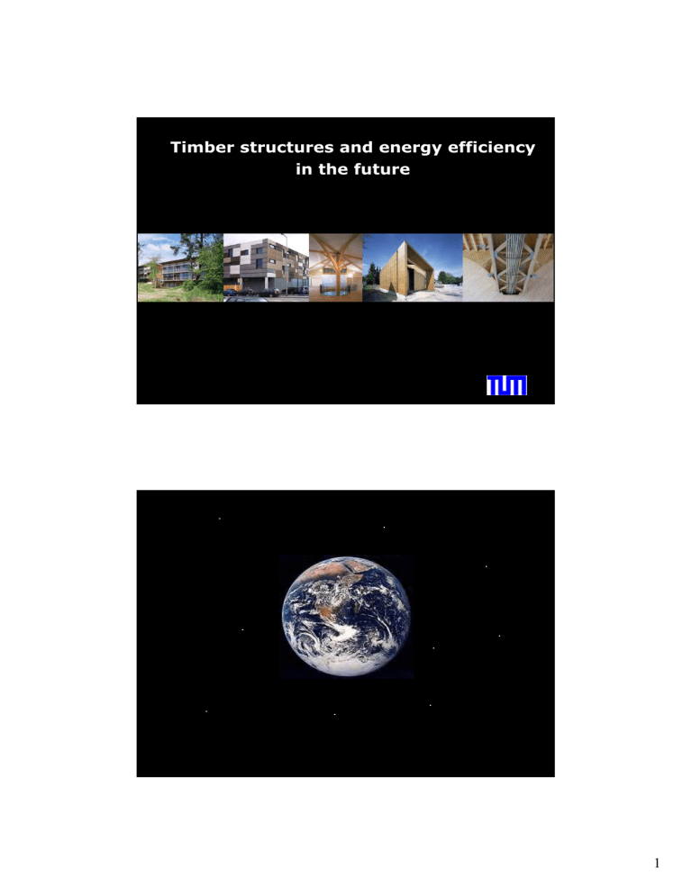 Timber structures and energy efficiency in the future . . . . . . . . . . 1 Quelle: Meadows et. al. 1992, Weizsäcker et. al. 1995 If efficiency grows +5% … Quelle: Weizsäcker et. al. 1995 2 Classify the responsible areas for glasshouse emissions in an increasing row! a) USA b) South America Beitrag zur globalen Erwärmung c) EU 1,1% 2,5% 2,3% d) Japan 2,6% 3,7% USA 3,9% EU 30,3% GUS Asien 12,2% Südamerika Japan Mittlerer Osten Afrika Australien 13,7% Rest 27,7% If you add China today: a) USA (22,2%) b) China (18,4%) c) EU (14,7%) d) Russia (5,6%) e) India (4,9%) f) Japan (4,6) And Finnland ? Rank 48 – 0,2% (= 0,002 x total CO2 - emission)! But: Number of inhabitants = 0,00078 x world population! 3 The European Reality Published by the European Comission in 2000! 4 5 So what is about: + Insulation of buildings? + Use of solar energy ? + Use of wind energy ? + Use of biomass energy ? + Use of timber in buildings ? 6 + Insulation of existing buildings? Design buildings as passive houses from the beginning? 7 Campo – Am Bornheimer Depot Residential building with 140 flats in passive house design Concrete frame with Non-loadbearing timber exterior walls Finished December 2008 Client: ABG Frankfurt Holding GmbH 8 Das größte Passivhaus Europas? Oder gar der Welt? BV Campo – Am Bornheimer Hang Architekten: FAAG, Albert Speer & Partner, Stefan Forster, Bauherr: ABG Frankfurt Timber structure ? 9 10 Mounting with scaffold 11 Mounting with lift Solar active facades possible! 12 Solar active facades possible! Solar active facades 13 Top-on roof structures and renovation – more intelligent as demolition and new erection? Frankfurt Tevesstraße Heating energy consumption ca. 220 kWh/m²a (22 liter oil/m²a) Client: ABG Frankfurt Holding GmbH 14 Frankfurt Tevesstraße • Heating energy consumption before ca. 220 kWh/m²a afterwards ca. 18 kWh/m²a Faktor 12! • Exterior wall insulation – insulation-stucco system with styrofoam 15 Univ.-Prof. Dr.-Ing. Stefan Winter Technische Universität München Facade orthophoto of new project in Frankfurt, Rotlintstr. 16 Univ.-Prof. Dr.-Ing. Stefan Winter Technische Universität München 3D - Laserscan Aufmaß Rotlintstr., Frankfurt/Main, 2008 Univ.-Prof. Dr.-Ing. Stefan Winter Wire netting model Technische Universität München Rendering 17 Univ.-Prof. Dr.-Ing. Stefan Winter Technische Universität München facade - unevenness First model-project 18 19 Close the gap! 7 storey timber structure - Berlin (2007) Kaden Klingbeil, Architekten Berlin Univ.-Prof. Dr.-Ing. Stefan Winter und Dr.-Ing. Heinz Pape 20 Post and beam structure Univ.-Prof. Dr.-Ing. Stefan Winter und Dr.-Ing. Heinz Pape Timber-concrete composite floor (F90) Univ.-Prof. Dr.-Ing. Stefan Winter und Dr.-Ing. Heinz Pape 21 Visible timber ceiling Univ.-Prof. Dr.-Ing. Stefan Winter und Dr.-Ing. Heinz Pape Exterior walls (W 30-B) X-lam, insulation, stucco Univ.-Prof. Dr.-Ing. Stefan Winter und Dr.-Ing. Heinz Pape 22 Add more benefits! Renewable fuel 23 24 The challenge? Improvement of energy efficiency and climate protection as the motor of development ! But: A pure passive house standard is not sufficient! Complete developments of energy self-sufficient areas is necessary ! In addition a new systematic of building installation and supply of energy is necessary ! First examples are under development, e.g. Pfaffenhofen 25 First examples are under development, e.g. Pfaffenhofen Rember: If you transfer people to the countryside you also have to provide public transport ! Otherwise it will be an energy trap! First examples are under development, e.g. Pfaffenhofen Integral water and energy concepts Architects:Joachim Eble Architektur, Tübingen und Atelier Dreiseitl, Pfaffenhofen 26 First examples are under development, e.g. Pfaffenhofen Different energy supply and distribution concepts Architects:Joachim Eble Architektur, Tübingen und Atelier Dreiseitl, Pfaffenhofen The role of timber? • factory forest – the welfare factory • low energy material • renewable • very well fitting properties and a carbon storage! The world leading sustainable construction material! 27 If he will be an adult – he will buy a solar mobile and build a CerO2 ! (timber solar house with zero carbondioxid emission according to LCA) 28