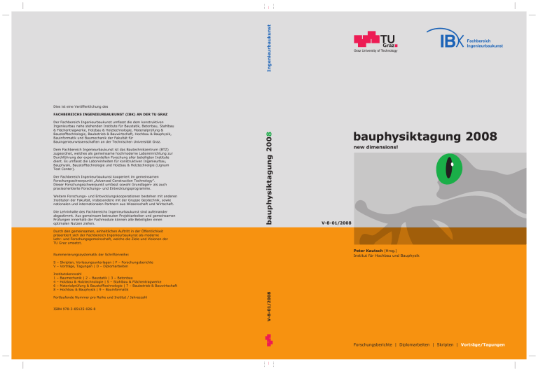 Ingenieurbaukunst Dies ist eine Veröffentlichung des Der Fachbereich Ingenieurbaukunst umfasst die dem konstruktiven Ingenieurbau nahe stehenden Institute für Baustatik, Betonbau, Stahlbau & Flächentragwerke, Holzbau & Holztechnologie, Materialprüfung & Baustofftechnologie, Baubetrieb & Bauwirtschaft, Hochbau & Bauphysik, Bauinformatik und Baumechanik der Fakultät für Bauingenieurwissenschaften an der Technischen Universität Graz. Dem Fachbereich Ingenieurbaukunst ist das Bautechnikzentrum (BTZ) zugeordnet, welches als gemeinsame hochmoderne Laboreinrichtung zur Durchführung der experimentellen Forschung aller beteiligten Institute dient. Es umfasst die Laboreinheiten für konstruktiven Ingenieurbau, Bauphysik, Baustofftechnologie und Holzbau & Holztechnolgie (Lignum Test Center). Der Fachbereich Ingenieurbaukunst kooperiert im gemeinsamen Forschungsschwerpunkt „Advanced Construction Technology“. Dieser Forschungsschwerpunkt umfasst sowohl Grundlagen- als auch praxisorientierte Forschungs- und Entwicklungsprogramme. Weitere Forschungs- und Entwicklungskooperationen bestehen mit anderen Instituten der Fakultät, insbesondere mit der Gruppe Geotechnik, sowie nationalen und internationalen Partnern aus Wissenschaft und Wirtschaft. Die Lehrinhalte des Fachbereichs Ingenieurbaukunst sind aufeinander abgestimmt. Aus gemeinsam betreuten Projektarbeiten und gemeinsamen Prüfungen innerhalb der Fachmodule können alle Beteiligten einen optimalen Nutzen ziehen. bauphysiktagung 2008 FACHBEREICHS INGENIEURBAUKUNST (IBK) AN DER TU GRAZ bauphysiktagung 2008 new dimensions! V-8-01/2008 Durch den gemeinsamen, einheitlichen Auftritt in der Öffentlichkeit präsentiert sich der Fachbereich Ingenieurbaukunst als moderne Lehr- und Forschungsgemeinschaft, welche die Ziele und Visionen der TU Graz umsetzt. Peter Kautsch (Hrsg.) Institut für Hochbau und Bauphysik Nummerierungssystematik der Schriftenreihe: S – Skripten, Vorlesungsunterlagen | F – Forschungsberichte V – Vorträge, Tagungen | D – Diplomarbeiten Fortlaufende Nummer pro Reihe und Institut / Jahreszahl ISBN 978-3-85125-026-8 V-8-01/2008 Institutskennzahl 1 – Baumechanik | 2 – Baustatik | 3 – Betonbau 4 – Holzbau & Holztechnologie | 5 – Stahlbau & Flächentragwerke 6 – Materialprüfung & Baustofftechnologie | 7 – Baubetrieb & Bauwirtschaft 8 – Hochbau & Bauphysik | 9 – Bauinformatik Forschungsberichte | Diplomarbeiten | Skripten | Vorträge/Tagungen Bibliografische Information der Deutschen Bibliothek: Die Deutsche Bibliothek verzeichnet diese Publikation in der Deutschen Nationalbibliografie; detaillierte bibliografische Daten sind im Internet über http://dnb.ddb.de abrufbar. Tagungsband zur Bauphysiktagung 2008 am 19. November 2008 an der Technischen Universität Graz / Österreich Hrsg.: Univ.-Prof. DDr. Peter Kautsch Institut für Hochbau und Bauphysik Technische Universität Graz www.ihb.tugraz.at Konzeption: Dipl.-Ing. Herwig Hengsberger Design: Heiko Tischler, Jakob Waldhör Druck: styriaPrintshop / Büroservice der TU Graz Verlag der Technischen Universität Graz www.ub.tugraz.at/Verlag ISBN 978-3-85125-026-8 Vorwort Sehr geehrte Tagungsteilnehmerin! Sehr geehrter Tagungsteilnehmer! Mit Freude darf ich Sie zur mittlerweile fünften Bauphysiktagung an der TU Graz begrüßen. Diesmal verbunden mit einem interessanten Rundgang durch unser Labor für Bauphysik und gefolgt von der Präsentation der neuen Wege und Ziele unseres erweiterten Instituts für Hochbau und Bauphysik. Bedingt nicht zuletzt durch EU-weite Zielvorgaben bilden Energieoptimierung und -effizienz einen aktuellen und spannenden Themenschwerpunkt. Bei unseren Bauphysiktagungen wird stets auch der Architektur ein bedeutender Stellenwert eingeräumt und verspricht „Beyond the Blue“ interessante Einblicke in die Kraft der Vision. Schließlich runden neue Trends bis hin zur Robotik im Bauwesen und innovative Forschungsthemen die Bauphysiktagung 2008 ab. Dazu wünsche ich Ihnen spannende Vorträge, interessante Pausengespräche und Gewinn bringende Information von unseren Sponsoren. Peter Kautsch Programm und Inhaltsverzeichnis 11:30 Uhr Begrüßung durch den Rektor der TU Graz O.Univ.-Prof. Dipl.-Ing. Dr.techn. Hans Sünkel 1 Neue Wege und Ziele des Instituts für Hochbau und Bauphysik Univ.-Prof. DDr. Peter Kautsch, TU Graz 5 12:30 Uhr Mittagsbuffet / Industrieausstellung 2 14:00 Uhr ClimaDesign – ganzheitliche Planungsstrategien für energie- und raumklimaoptimierte Gebäude Dr.-Ing. Michael de Saldanha, TU München 21 3 Beyond the Blue HR Dipl.-Ing. Dr.techn. Wolfdieter Dreibholz Coop Himmelb(l)au, Wien 31 4 Energieoptimiertes Bauen und Sanieren Simulationswerkzeuge und Anwendungsbeispiele Univ.-Prof. Dr.-Ing. John Grunewald, TU Dresden 35 15:30 Uhr Kaffeepause / Industrieausstellung 5 16:15 Uhr Innovationen in der Bauphysik Univ.-Prof. Dr.-Ing. Dipl.-Phys. Klaus Sedlbauer Universität Stuttgart & Fraunhofer-Institut für Bauphysik 49 6 Energieeffizienz für Gebäude – Umsetzung der EU-Richtlinie erfolgt? Dipl.-Ing. Wolfgang Jilek Energiebeauftragter des Landes Steiermark 59 7 Robotik im Bauwesen Univ.-Doz. Dipl.-Ing. Dr. techn. Igor Kovac, TU Graz 73 Neue Wege und Ziele des Instituts für Hochbau und Bauphysik Univ.-Prof. DDr. Peter Kautsch Institut für Hochbau und Bauphysik Technische Universität Graz Wir befinden uns an einem Zeitpunkt des tiefgreifenden Wandels in der nationalen und internationalen Universitätslandschaft. Dies zum einen bedingt durch ein vielfältiger gewordenes nationales Angebot an höheren Studieneinrichtungen, zum anderen durch die Internationalisierung des Arbeits- und Forschungsmarktes. Mit dem erweiterten Institut für Hochbau und Bauphysik wird nicht nur ein lang gehegter Wunsch der Fakultät für Bauingenieurwissenschaften nach Stärkung des Fachbereiches Bauphysik Realität, sondern auch die damit verbundene Herausforderung als ideale Chance zur Neupositionierung gesehen. Gilt es doch in Übereinstim