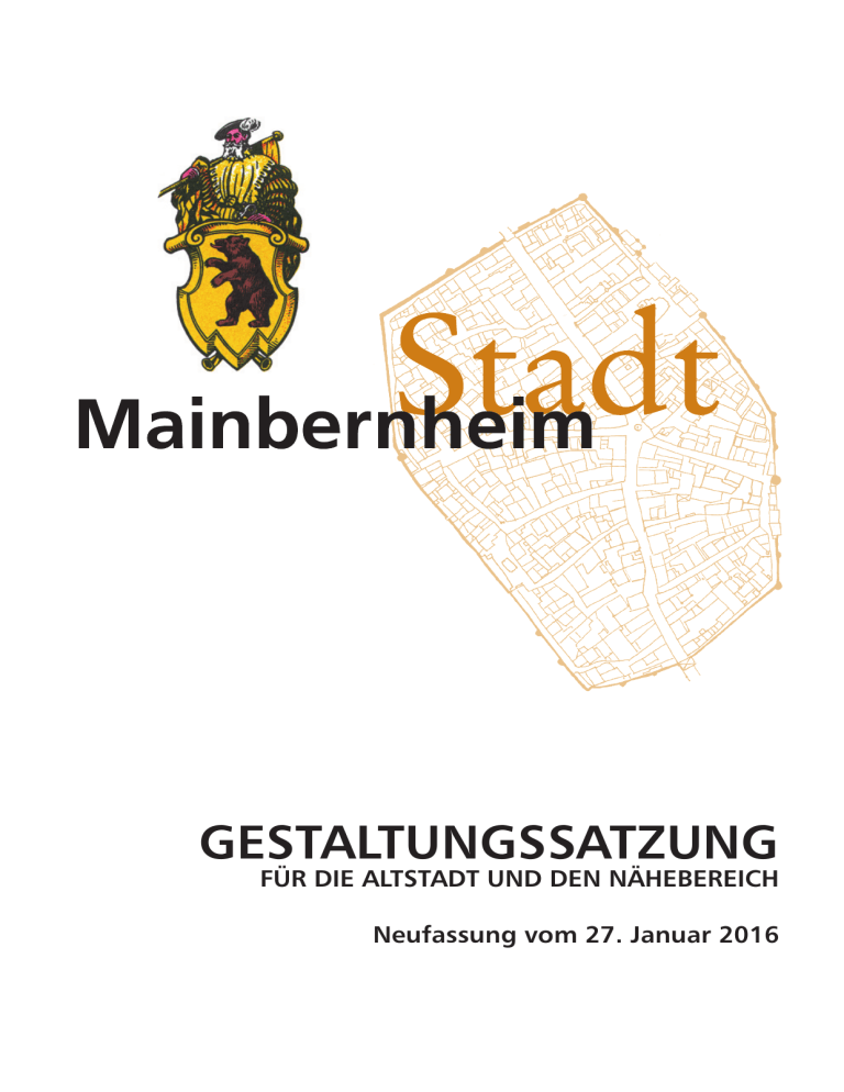 GESTALTUNGSSATZUNG FÜR DIE ALTSTADT UND DEN NÄHEBEREICH Neufassung vom 27. Januar 2016 INHALTSVERZEICHNIS SEITE Gestaltungssatzung Rechtsgrundlage 1 §1 Geltungsbereich 1. 2. 1 1 Räumlicher Geltungsbereich Sachlicher Geltungsbereich 2 §2 Generalklausel §3 Das Stadtgefüge 1. 2. 3. 4. Stadtgrundriss Parzellenstruktur Gebäudestellung und Gebäudeflucht Dachlandschaft 3 3 3 3 §4 Die Gebäude 1. 2. 3. 4. Denkmalpflege und Ensembleschutz Gebäudetypen Maßstäblichkeit der Bebauung Anbauten 4 4 4 4 §5 Die Gebäudegestaltung 1. Fassadengestaltung, Materialien und Farben Gliederung Baumaterialien Fachwerk Mauerwerk Putze Farben und Anstriche Sockel Fenster, Türen, Läden Fensterformte und Teilung Fensterbänke Fenstermaterial Fensterläden und Rollläden Schaufenster Verkleidungen Balkone, Risalite oder Erker Vordächer, Sonnen- und Wetterschutz Details 5 2. 6 7 8 9 10 11 Dachlandschaft Dachform Dachneigung Traufe und Ortgang Dachdeckung Dachgauben Kamine Antennen und sonstige Anlagen Solarwärme- / Photovoltaikanlagen 11 12 13 14 15 I §6 Der Umgriff §7 Schlussbestimmungen 1. Private Freiflächen und Einfriedungen in der Altstadt Hofflächen und Zufahrten Gärten und Begrünung Einfriedungen, Mauern und Tore 16 17 2. Grabengärten Befestigung Einfriedungen 18 3. Sonstige Gärten an der B8 Einfriedungen 18 4. Öffentlicher Raum Werbeanlagen Möblierung 19 Abweichungen Ordnungswidrigkeiten Inkrafttreten 20 1. 2. 3. 20 Anlage: Lageplan Abgrenzung des räumlichen Geltungsbereichs 21 II GESTALTUNGSSATZUNG RECHTSGRUNDLAGE Aufgrund des Art. 81 Abs. 1 Nr. 1 und Nr. 2 der Bayerischen Bauordnung (BayBO) in der Fassung der Bekanntmachung vom 14. August 2007 (GVBl. S. 588), zuletzt geändert durch Gesetz vom 8. April 2013 (GVBl. S. 174) erlässt die Stadt Mainbernheim zum Schutze des historischen Stadtbildes und zur geordneten Weiterentwicklung der Altstadt folgende Satzung als örtliche Bauvorschrift: § 1 GELTUNGSBEREICH 1. Räumlicher Geltungsbereich Der räumliche Geltungsbereich dieser Satzung umfasst in seiner Abgrenzung das Sanierungsgebiet „Altstadt und Nähebereich“ ohne den Friedhof. Für die Grundstücke im Geltungsbereich des Bebauungsplanes „Kleingartennutzungen westlich der B8“ gilt nur der Bebauungsplan. Für die Gärten zwischen B8 und Kitzinger Straße gilt § 6 Abs. 3. Die als Anlage beigefügte Karte zur Abgrenzung des räumlichen Geltungsbereichs ist Bestandteil dieser Satzung. 2. Sachlicher Geltungsbereich Der sachliche Geltungsbereich umfasst alle genehmigungspflichtigen und verfahrensfreien Maßnahmen, wie die Errichtung, Änderung, die Nutzungsänderung, den Unterhalt und den Abbruch baulicher Anlagen, gem. Art. 55 und 57 BayBO, die Gestaltung privater Freiflächen, in den öffentlichen Raum hineinwirkenden Anlagen sowie Werbeanlagen. Die im Geltungsbereich der Gestaltungssatzung bestehenden oder künftigen rechtskräftigen Bebauungspläne gelten vorrangig. Höherrangige baurechtliche Vorschriften (BauGB, BauNVO, BayBO usw.) und die Bestimmungen des Bayer. Denkmalschutzgesetzes haben Vorrang vor dieser Satzung. 1 GESTALTUNGSSATZUNG § 2 GENERALKLAUSEL Die Gestalt der Stadt zu erhalten, zu verbessern und weiterzuentwickeln ist das Ziel der Stadtsanierung, das mit dieser Satzung erreicht werden soll. Neubauten, Ersatzbauten und bauliche Veränderungen am Bestand müssen sich nach Maßgabe dieser Satzung so in das historische Stadtbild von Mainbernheim einfügen, dass die unverwechselbare Eigenart und die überkommene Art der Bebauung in der Altstadt und des Nähebereiches nicht verloren gehen. Dabei ist auf den Bestand an Gebäuden und Gebäudeensembles sowie sonstige bauliche und freiräumliche Anlagen von geschichtlicher, künstlerischer und städtebaulicher Bedeutung besondere Rücksicht zu nehmen. Auf neue funktionale Anforderungen und Techniken (z.B. Umwelttechnik, Medien) sind im Sinne dieser Satzung geeignete gestalterische Lösungen zu finden. Notwendige Abweichungen von dieser Satzung dürfen das Gefüge des Altstadtensembles und seines näheren Umfeldes nicht stören. Gebäude mit städtebaulicher Sonderfunktion können sich in ihrer Gestalt von der weiteren Bebauung abheben. Für derartige neu zu errichtende Gebäude soll daher in Abstimmung mit dem Bayer. Landesamt für Denkmalpflege bzw. der Unteren Denkmalschutzbehörde eine angemessene und zeitgemäße Architektur mit hohen gestalterischen Qualitäten ermöglicht werden. Bei Einzeldenkmälern und Gebäuden im Ensemblebereich ist die Erlaubnispflicht nach Art. 6 Denkmalschutzgesetz zu beachten. 2 § 3 DAS STADTGEFÜGE Abs. 1 Stadtgrundriss Grundsatz Der Stadtgrundriss soll in seiner überlieferten Gestalt erhalten werden. Abs. 2 Parzellenstruktur Grundsatz Zur Sicherung der Maßstäblichkeit der Bebauung soll die überlieferte Parzellenstruktur der Altstadt erhalten werden. Bei einer Neubebauung muss die Gebäudebreite auf das Breitenmaß des abgegangenen Bestands bzw. der umgebenden Bebauung Rücksicht nehmen. Neubauten sind entsprechend der überlieferten Parzellenstruktur zu gliedern. Die räumliche Geschlossenheit der Bebauung soll erhalten bleiben. Ausnahmsweise ist die Zusammenlegung und Überbauung von Grundstücken zur Verbesserung der Wohn-, Arbeits- und / oder Lebensverhältnisse möglich. Abs. 3 Gebäudestellung und Gebäudeflucht Grundsatz Die Geschlossenheit der Straßenzüge ist durch den Erhalt oder die Wiederherstellung der Raumkanten zu wahren. Vor- und Rücksprünge in der Bauflucht richten sich nach der historischen Quartiersgrenze. Die Bauflucht ist grundsätzlich zu erhalten. Eine Außendämmung zu öffentlichen Flächen ist möglich. Die vorhandene oder überlieferte Gebäudestellung bei Neu- oder Ersatzbauten darf grundsätzlich nicht verändert werden. Baulücken sind zu schließen, soweit die Flächen nicht einer anderen städtebaulich verträglichen Nutzung zugeführt werden. Störungen sind zu bereinigen. Abs. 4 Dachlandschaft Grundsatz Die überlieferte Dachlandschaft soll e