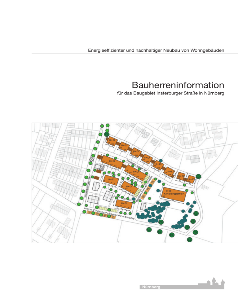 Energieeffizienter und nachhaltiger Neubau von Wohngebäuden Bauherreninformation für das Baugebiet Insterburger Straße in Nürnberg 3 Inhaltsverzeichnis 1. Einleitung .............................................................................................................. 5 2. Baugebiet Insterburger Straße Nürnberg .................................................................. 5 3. 2.1. Energiesparendes Bauen lohnt sich ................................................................. 5 2.2. Die Gebäudeenergiestandards......................................................................... 6 2.3. Planungsfaktoren die den Energiestandard beeinflussen .................................... 7 2.4. Warum ein Passivhaus? .................................................................................. 9 2.5. Was ist ein Passivhaus? ................................................................................ 10 2.6. Kosten und Wirtschaftlichkeit ......................................................................... 12 Heizung und Warmwasserversorgung ................................................................... 14 3.1 Dezentrale Wärmeversorgung ....................................................................... 15 3.1.1 Gas-Brennwertheizung .......................................................................... 15 3.1.2 Gas-Brennwertheizung mit solarer Warmwasserbereitung ......................... 15 3.1.3 Holzpelletheizung .................................................................................. 16 3.1.4 Erdwärmepumpe ................................................................................... 17 3.2 Zentrale Wärmeversorgung ........................................................................... 17 3.2.1 Wärmeversorgung mit Biomasse ............................................................ 17 3.2.2 Wärmeversorgung mit einem Pflanzenöl-BHKW ....................................... 18 3.2.3 Wärmeversorgung mit einem Erdgas-BHKW ............................................ 18 3.3 Einschätzung ............................................................................................... 18 4. Förderung, Finanzierung und Beratung .................................................................. 19 5. Beispiele Passivhäuser ........................................................................................ 20 4 5 Einleitung Angesichts der Klimasituation und der knapper werdenden Ressourcen fossiler Energieträger sollte der Bau eines Gebäudes eng mit den folgenden Fragestellungen verknüpft sein. • Energieverbrauch und daraus resultierende Heizkostenrechnung: so hoch wie in einem Haus, das gerade den heutigen gesetzlichen Anforderungen entspricht (EnEV-Standard) – oder um den Faktor drei bis vier geringer? • Energieversorgung: mit fossilen Energieträgern - oder klimaverträglich durch erneuerbare Energieträger? • Wohnklima: Standard - oder hoch-komfortabel? Die Weichenstellungen, die diese wesentlichen Gebäude-Eigenschaften bestimmen, werden in einem sehr frühen Planungsstadium festgelegt. Je früher dies geschieht, umso besser und kostengünstiger lassen sich die einzelnen Ansprüche aufeinander abstimmen. Diese Maßnahmen sichern in Zukunft auf lokaler Ebene finanzierbaren, vermietbaren und verkaufbaren Wohnraum und sind eine Versicherung gegen steigende Energiepreise (zweite Miete). In den letzten zwanzig Jahren hat sich energieeffizientes Bauen mehr und mehr durchgesetzt. Komponenten für hochwärmegedämmte Transmissionsflächen und hochinnovative Glas- und Fenstertechnik haben sich ebenso bewährt wie ventilatorgestützte Zu-/Abluftanlagen mit Wärmerückgewinnung, die nicht nur etwa 85 % der Lüftungswärmeverluste einsparen, sondern gleichzeitig für beständig gute Raumluftqualität sorgen. Die Heiztechnik dient nur noch zur Restwärmebereitstellung und nutzt in zunehmender Form regenerative Energieträger. 1. Baugebiet Insterburger Straße Nürnberg Das Baugebiet Insterburger Straße befindet sich in bevorzugter Wohnlage in Katzwang im Nürnberger Süden. Die Planung sieht 36 Wohneinheiten und einen Kindergarten mit insgesamt 6.350 m² Nutzfläche vor. Es ist ein ausgewogener Mix aus zwei Einfamilienhäusern (EFH), 12 Doppelhaushälften (DHH) und 22 Reihenhäusern (RH) geplant. Für die Stadt Nürnberg als Grundstückseigentümerin wurde ein Gutachten zur Optimierung des Bebauungsplanes erstellt, mit dem Ziel, unter dem Aspekt der Wirtschaftlichkeit einen schonenden Umgang mit den Ressourcen zu bewirken und somit den Schadstoffausstoß zu minimieren. Dabei wurden vier Gebäude-Standards mit unterschiedlichen zentralen und dezentralen Versorgungssystemen untersucht. Die Ergebnisse dieses Gutachtens fließen in die folgenden Ausführungen mit ein. Laut Beschluss des Umweltausschusses und des Stadtplanungsausschusses soll die Errichtung der Gebäude in Passivhausbauweise erfolgen. 2.1. Energiesparendes Bauen lohnt sich Die geltende Energieeinsparverordnung (EnEV) stellt bei weitem nicht den aktuellen Stand der Technik dar. Deshalb lohnt es sich, über weitergehende Maßnahmen nachzudenken. Der maßvolle Umgang mit den Ressourcen schont die Umwelt und macht ein Stück weit unabhängig von den steigenden Energiekosten. Das Gebäude wird vor Bauschäden geschützt und ein sehr behagliches Wohnklima geschaffen. Im Ergebnis erhält man also ein weitaus höherwertigeres Gebäude mit deutlich verbessertem Marktwert und geringeren Nebenkosten. Mehrinvestitionen in energieeffizientes Bauen machen sich so langfristig bezahlt. Zudem kann ein Teil der Mehrkosten durch zinsgünstige Finanzie- 6 rung (Darlehen) kompensiert werden. Solche Darlehen bietet z. B. die KfW-Förderbank an, die zu diesem Zweck drei Gebäudetypologien definiert hat, die über die EnEV-Vorgaben hinausgehen: • das "KfW-Energiesparhaus 60", • das „KfW-Energiesparhaus 40“ und • das Passivhaus. Für diese drei typologischen Gebäudekonzepte