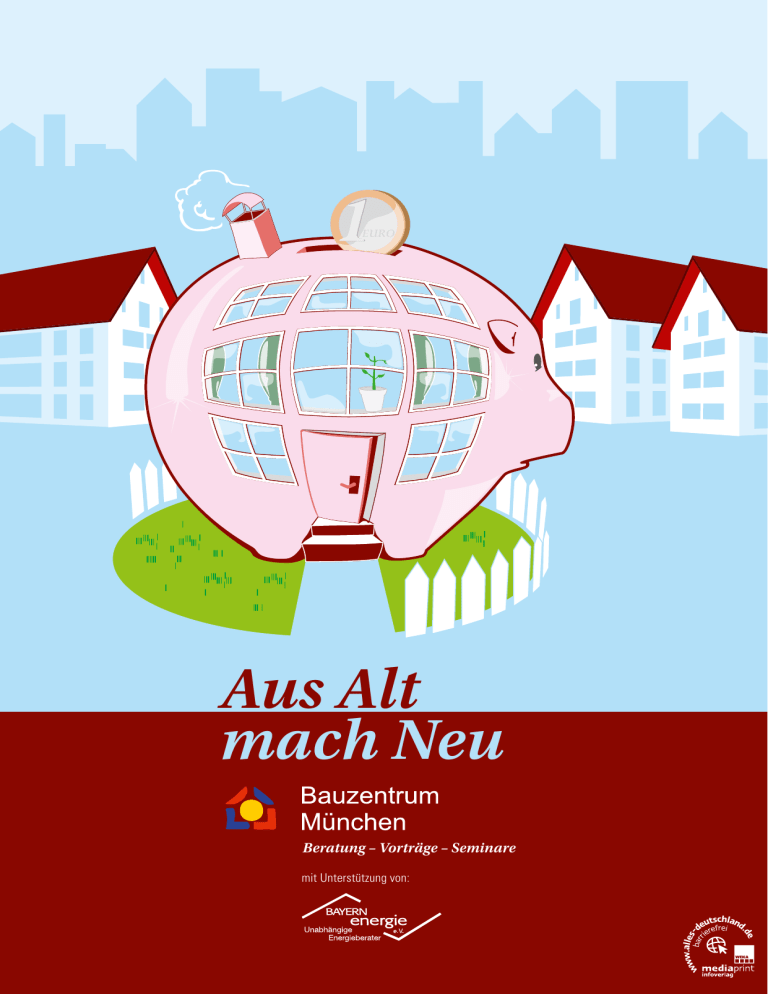 EURO Aus Alt mach Neu Beratung – Vorträge – Seminare mit Unterstützung von: Vorwort Sehr geehrte Damen und Herren, eine gut geplante und durchdachte Modernisierung macht Ihre Wohnung oder Ihr Haus nicht nur attrakti­ ver und wertbeständig, sondern hilft Ihnen über Jah­ re hinweg, die immer weiter steigenden Kosten für Heizung und Warmwasser einzusparen. Mit dieser Broschüre wollen wir Ihnen nicht nur ge­ lungene Modernisierungsbeispiele präsentieren, son­ dern auch aufzeigen, welche positiven Nebeneffekte eine Modernisierung haben kann. Ihre Immobilie ge­ winnt an Wert, wird behaglicher und zeitgemäßer, da sie modernen technischen Standards entspricht. Ihre Modernisierung sollte gut geplant und durchdacht und nicht zufäl­ lig und von Einzelmaßnahmen bestimmt sein. Hochwertige Ziele kön­ nen nur dann erreicht werden, wenn rechtzeitig vor dem Ausfall eines Bauteils oder einer technischen Anlage, wie zum Beispiel der Heizung, schon ein langfristiges und umfassendes Sanierungskonzept vorliegt. Nur so haben Sie die Sicherheit, dass die künftigen Energiekosten in dem Rahmen bleiben, den Sie dafür vorgeben. Letztlich wird die Modernisierung im Rahmen eines Gesamtprogramms auch wesentlich effektiver, und auf lange Sicht gesehen preiswerter. Die einzelnen Maßnahmen, zum Beispiel die Art und Leistung der Heizung, können so optimal aufeinander abgestimmt werden. Bei vielen Förder­ programmen, wie zum Beispiel beim Münchner Förderprogramm Ener­ gieeinsparung (FES,) können Sie dann besonders hohe Fördersummen erreichen, wenn der Modernisierung ein Gesamtkonzept zugrunde liegt. Nicht alle Beispiele erfüllen allerhöchste energetische Kennwerte, aber dies ist bei der Modernisierung von Altbauten schließlich auch ein Spiegel der Realität. Es hängt immer davon ab, welches Ziel von Beginn an ver­ folgt wird. Die von uns ausgewählten Beispiele zeigen, dass für jedes Gebäude ein hohes Maß an Optimierung möglich ist. Aus jedem Gebäude kann ein Schmuck­ stück gemacht werden. Wir hoffen, dass wir mit der Broschüre Ihre Neugierde wecken, damit Sie überprüfen, welche der vorgestell­ ten Modernisierungsmaßnahmen auch für Ihr Gebäude anwendbar sind. Ein frühzeitiges Beratungs­gespräch im Bauzentrum München kann Ihnen helfen, den richtigen Einstieg in eine für Ihr Ge­ bäude passende Modernisierung zu finden. Ich wünsche Ihnen viel Spaß beim Schmökern. Joachim Lorenz Referent für Gesundheit und Umwelt Wir haben versucht, in dieser Broschüre einzelne Beispiele in einer gut vergleichbaren Art und Weise zusammenzustellen. Dadurch können Sie erkennen, wie sich unterschiedlich gute Einzelwerte von Bauteilen oder technischen Anlagen zu einem guten Gesamtergebnis zusammenfügen. 1 Aus Alt mach Neu PUBLIKATIONEN INTERNET KARTOGRAFIE WERBEMITTEL Inhalt I M PR E SSUM Herausgegeben in ­Zusammenarbeit mit dem Bauzentrum München. Änderungswünsche, Anregungen und Ergänzungen für die nächste Auflage dieser Broschüre nimmt das zuständige Amt entgegen. Titel, Umschlaggestaltung sowie Art und Anordnung des Inhalts sind zugunsten des jeweiligen Inhabers dieser Rechte urheberrechtlich geschützt. Nachdruck und Übersetzungen in Print und Online sind – auch auszugsweise – nicht gestattet. Realisation in Zusammenarbeit mit: mediaprint WEKA info verlag gmbh Lechstraße 2 D-86415 Mering Tel. +49 (0) 8233 384-0 Fax +49 (0) 8233 384-103 [email protected] www.mp-infoverlag.de www.alles-deutschland.de www.mediaprint.tv 80331038/ 1. Auflage / 2010 Vorwort ... Seite 1 Inhaltsverzeichnis ... Seite 2 Branchenverzeichnis ... Seite 6 Wichtige Kenndaten zu den ausgewählten Sanierungsobjekten ... Seite 8 Berufsverband der unabhängigen Energieberater in Bayern Tel: 089- 89 54 6775 www.bayernenergie.de ..... der kompetente Energieberater in Ihrer Nähe .. Das Bauzentrum stellt sich vor ... Seite 10 Seite 21 ff.: Wachtelweg 14 ▪ Architekt: a2 Architekturbüro ▪ E nergiekonzept: Reichmann, Alexander (Bestand), Herr Künneke (Energieausweis) Seite 45 ff.: Waldmeisterstraße 23 c ▪ Architekt: Dipl.-Ing. Thomas Schilling ▪ Energiekonzept: Dipl.-Ing. Thomas Schilling Fachbeiträge vom Bauzentrum München: Seite 24 ff.: Trausnitzerstraße 30-36 ▪A rchitekt: Grasssinger Emrich Architekten GmbH, Herr Emrich ▪ E nergiekonzept: GEKO Gesellschaft für Energie- und Kostenoptimierung im Bauwesen mbH Quelle: Bauverein München-Haidhausen eG; Grassinger Emrich Architekten GmbH; GEKO mbH Seite 49 ff.: Pestalozzistraße 27 ▪ Architekt: Adrian Spreter von Kreudenstein ▪ Energiekonzept: Adrian Spreter von Kreudenstein Seite 27 ff.: Preysingstraße 72 ▪ Architekt: Sabine Healey ▪ E nergiekonzept: Gerhard Schmid/Sabine Healey Seite 30ff.: Wolfratshauser Straße 52 ▪A rchitekt: jensen ingrisch recke architekten ▪ Energiekonzept: plan-bee GmbH Quelle: Reinhard Rohner (Fotos); Friedemann Zeitler, plan-bee GmbH Seite 34 ff.: Düsseldorfer Straße 10-16 ▪A rchitekt: Lanz Architekten+Generalplaner /Herr Penner, Frau Glatte ▪ E nergiekonzept: Ingenieurbüro Götz; Bauphysik Herr Weigl (Planung) Quelle: LANZ ARCHITEKTEN + GENERALPLANER; en.eco. Klaus Bundy (Dipl.-Ing.) Ingenieurbüro für Energie- und Gebäudetechnik, München; ingenieurbüro.götz, Wolframstraße 4, 86161 Augsburg Seite 38 ff.: Nymphenburger Straße ▪A rchitekt: Lichtblau Architekten, Frau Jendges ▪ Energiekonzept: Lichtblau Architekten Quelle: LICHTBLAU ARCHITEKTEN BDA Seite 42 ff.: Schlehenstraße 8 ▪ Architekt: Dipl.-Ing. Thomas Schilling ▪ E nergiekonzept: Dipl.-Ing. Thomas Schilling 2 Aus Alt mach Neu Seite 52 ff.: Baslerstraße 39 ▪ Architekt: Beate Wolf ▪ Energiekonzept: Planungsteam E-Plus Quelle: architektin-wolf.de Seite 56 ff.: Chieminger Straße 10 b ▪ Architekt: Herbert Danner ▪ Energiekonzept: Baubiologie und Solarenergie Herbert Danner Seite 59 ff.: Obere Weidenstraße 3 ▪ Architekt: Florian Wiesler/Anna Gmelin ▪ Energiekonzept: plan-bee GmbH Quelle: Friedemann Zeitler, pl