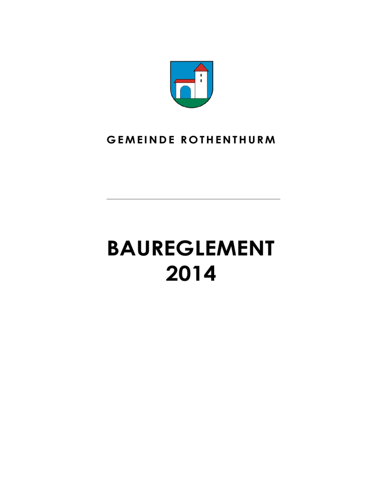 GEMEINDE ROTHENTHURM _______________________________________________________ BAUREGLEMENT 2014 2 INHALTSVERZEICHNIS _______________________________________________________________________________________________ I. Zweck und Geltungsbereich Art. Art. 1 2 Seite Zweck ....................................................................................................................................... Geltungsbereich ...................................................................................................................... 4 4 II. Planungsmittel Art. Art. 3 4 Art. Art. 5 6 Planungsmittel .......................................................................................................................... Nutzungspläne ......................................................................................................................... a) Zonenplan...................................................................................................................... b) Erschliessungsplan......................................................................................................... c) Gestaltungsplan............................................................................................................ 4 5 5 5 5 III. Allgemeine Bauvorschriften A. Schutz des Orts- und Landschaftsbildes Art. Art. Art. 7 8 9 Gestaltung, Einordnung .......................................................................................................... Dachgestaltung ....................................................................................................................... Reklamen, Schaukästen, Automaten ................................................................................... 5 5 6 B. Konstruktion und Hygiene Art. Art. Art. Art. 10 11 12 13 Wohnhygiene ............................................................................................................................ Umgebungsgestaltung ........................................................................................................... Kinderspielflächen/Erholungsflächen ................................................................................... Abstellflächen .......................................................................................................................... 6 6 6 7 C. Emissionen und Immissionen Art. 14 Bauarbeiten ............................................................................................................................. 7 D. Verkehrssicherheit Art. Art. Art. Art. Art. Art. 15 16 17 18 19 20 Strassennetz .............................................................................................................................. Ein-/Ausfahrten, Garagenvorplätze ...................................................................................... Abstellflächen für Motorfahrzeuge und Fahrräder .............................................................. Ersatzabgabe für Motorfahrzeugabstellplätze ................................................................... Benennungen der Strassen ...................................................................................................... Öffentliche Einrichtungen auf Privatboden ......................................................................... 7 7 8 8 8 8 E. Bauweise, Stellung und Dimension der Bauten Art. 21 Art. Art. Art. Art. 22 23 24 25 Ausnützungsziffer ...................................................................................................................... a) Begriff.............................................................................................................................. b) Anrechenbare Bruttogeschossfläche....................................................................... c) Anrechenbare Landfläche......................................................................................... d) Ausnützungsübertragung............................................................................................ Unterteilung und Vereinigung von Grundstücken ............................................................... 8 8 8 9 10 10 3 Art. 26 Art. Art. Art. Art. Art. Art. 27 28 29 30 31 32 Abstände .................................................................................................................................. a) Grenzabstand Begriff und Messweise....................................................................... b) Mass................................................................................................................................. c) Mehrlängenzuschlag................................................................................................... d) Strassenabstand, Bahnabstand................................................................................. e) Andere Abstandsvorschriften, Baulinien................................................................... Gebäudehöhe, Firsthöhe ....................................................................................................... Gebäudelänge ....................................................................................................................... IV. Art. 33 Art. 34 Art. Art. Art. Art. Art. Art. Art. Art. Art. 35 36 37 38 39 40 41 42 43 Art. Art. Art. Art. Art. Art. 44 45 46 47 48 49 Art. 50 Art. 51 10 10 10 10 11 11 11 11 Zonenvorschriften Zoneneinteilung ....................................................................................................................... Bauzonen .................................................................................................................................. a) Kernzone ……………….………………………………………………………………… b) Wohnzone W1 und W2................................................................................................ c) Wohngewerbezonen WG2 und WG3...................................................