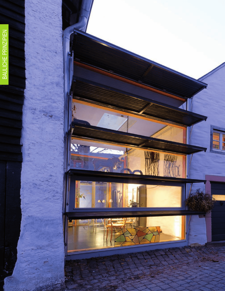 Bauliche Prinzipien 102 Informationen zum Planen, Bauen und Gestalten - Baukultur in der nordrhein-westfälischen Eifel 3. Bauliche Prinzipien Gute Architektur ist in der Region ein maßgeschneidertes Werk von Funktion, Kontext und Auseinandersetzung mit der Tradition. 103 Bauliche Prinzipien Abb. 170: Modellfoto Winkelhöfe in Dahlem, Gemeinde Dahlem Darstellung und Modell im Rahmen der Testentwürfe: Annette Uhl, 2010 Die Notwendigkeit der Wirtschaftlichkeit eines Hofes und des Schutzes vor Wind und Wetter schufen optimal angepasste Haustypen. Abb. 171: Bauernhof in Eicherscheid, Gemeinde Simmerath Darstellung und Foto: ISL 104 Informationen zum Planen, Bauen und Gestalten - Baukultur in der nordrhein-westfälischen Eifel 3. HAuSTypEN In diesem Thementeil werden die historischen für die Stadtbevölkerung attraktiv. Nach dem 2. Haustypen aufgezeigt, die in Funktion, Bauweise Weltkrieg nahm die Anzahl von Wohnhäusern und Gestaltung für die Region typisch sind. ohne regionalen Bezug stetig zu. Heute ist eine Vielzahl von verschiedenen Haustypen in den Trotz der Unterschiede in der regionalen Ausprä- Dörfern der Region zu sehen. Die traditionellen gung weisen die Gebäude in der Region doch alle Haustypen zeichnen sich durch eine hohe lokale einen langstreckten Baukörper mit Satteldach Angepasstheit an Topographie und Klima sowie ohne große Dachaufbauten und meist nach Süd- Bezug zum Wirtschafts- und Landschaftsraum west ausgerichtete Giebel, in einfacher Bauform aus. (vgl. Prokop; Rothfuß; Curdes, 1989,S.58) ohne Vor- und Rücksprünge in der Fassade, auf. Die verwendeten Baumaterialien waren eng mit Zweifelsohne sind auch Bauformen nach dem der lokalen Verfügbarkeit der Baustoffe wie Na- 19. Jhd. ein Bestandteil der Baukultur der Re- tursteinvorkommen und Bauholz verbunden und gion, sind sie aber doch durch gesellschaftliche die Haustypen zeichnen sich durch eine beson- Veränderungen und Baustile der angrenzenden dere Klimaangepasstheit an das Wetter der Eifel Städte in die Dörfer „importiert“ worden und spie- aus. Neben der landwirtschaftlichen Existenzsi- geln geringfügiger die Angepasstheit und Be- cherung waren die Dorfbewohner hauptsächlich sonderheit der über Jahrhunderte gewachsenen Landwirte, Handwerker, Bergarbeiter und Fabrik- Haustypen der Region wider. arbeiter. Dies bildete sich in Form und Grundriss der Haustypen und auch in der Siedlungsstruktur der Dörfer ab. Größere Hofanlagen waren meist landwirtschaftlich betrieben, in kleineren Häusern wohnten zumeist Handwerkerfamilien mit landwirtschaftlichem Nebenerwerb. Das Wohnhaus im Grünen wurde erst ab Ende des 19. Jhd. 105 Bauliche Prinzipien Abb. 172: Winkelhof Eifeltyp in Eicherscheid, Gemeinde Simmerath Foto: ISL Bauen Sie ein bestehendes Gebäude um, so kann der regionalspezifische Charakter des Ortes gut erhalten werden! Abb. 173: Winkelhof in Eicherscheid, Gemeinde Simmerath Foto: ISL 106 Informationen zum Planen, Bauen und Gestalten - Baukultur in der nordrhein-westfälischen Eifel Abb. 174: Winkelhöfe angebaut in Nettersheim, Gemeinde Nettersheim Foto: ISL Abb. 175: Straßenraum in Scheven, Gemeinde Kall Foto: ISL Der Begriff „Bauweise“ im bauordnungsrechtli- Vermischung der Baustile, in Abhängigkeit von chen Sinn hat nur folgende drei Bestimmungen: Siedlungsgeschichte, Klimaangepasstheit und offene, geschlossene und sonstige Bauweise.Im der lokalen Verfügbarkeit von Baumaterialien. Rahmen dieser Untersuchung soll als Bauweise eines Gebäudes ausschließlich die Bauaus- Betrachtet man nun die unterschiedlichen Bau- führung in Fachwerk-, Massiv- oder Stein und stile und Haustypen in der Region, können sechs kombinierter (Fachwerk-/Massiv-)Bautechnik historische Haustypen identifiziert werden, die verstanden werden. In der hauskundlichen und in Kombinationen oder veränderter Form die bauhistorischen Literatur (vgl. Wildemann, 1935, charakteristischen Bauformen der Region dar- S. 219; Klemm, 1935, S. 234; Bendermacher, stellen. 1971, S. 17f) wird die Eifel in zwei Gebiete gegliedert, die erheblich voneinander abweichende - Einraumtiefes Haus (Langhaus) Bauweisen erkennen lassen. Der südliche, öst- - Winkelhof liche und nördliche Bereich der nordrhein-west- - Eifeltyp fälischen Eifel zeigt überwiegend Massivbauwei- - Venntyp sen, im westlich und mittig liegenden Bereich ist - Vierkanthof in den Ortschaften verstärkt eine Fachwerkbau- - Zweiraumtiefes Haus weise abzulesen. In den folgenden Kapiteln werden die Haustypen Diese Zonierung ist jedoch nicht scharf gegen- und ihre baulichen Prinzipien genauer erläutert. einander abzugrenzen, denn jede Ortschaft ist (vgl. Prokop; Rothfuß; Curdes, 1989,S.59f.) durch die individuelle Entstehungsgeschichte und die topographischen Bedingungen unterschiedlich gewachsen. So zeigt sich in der Region der nordrhein-westfälischen Eifel eine starke 107 Bauliche Prinzipien Abb. 176: Einraumtiefes Bauenhaus in der Eifel Foto: ISL Bauen Sie klare, längliche Baukörper, ohne Vor- und Rücksprünge in der Fassade. Abb. 177: Schrägluftbild einraumtiefes giebelständiges Haus Darstellung und Foto: ISL 108 Informationen zum Planen, Bauen und Gestalten - Baukultur in der nordrhein-westfälischen Eifel 3.1. HiSTORiSCHE HAuSTypEN 3.2. Einraumtiefes Haus (Langhaus) Abb. 178: Schema Langhaus Darstellung: ISL ,,Dieser Haustyp ist die historisch älteste uns Die Gebäudestellung dieser Hausform war überlieferte Hausform in der Region.“ (Prokop; entweder traufständig oder giebelständig Rothfuß; Curdes, 1989, S.59) Straße. Die Belichtung der Innenräume erfolgte zur zwei- oder dreiseitig. Der Haupteingang zu den Der Grundriss stellt vielfach die Grundlage an- ursprünglich drei nebeneinander angeordne- derer Haustypen dar. Der schmale, lange Bau- ten Räumen - der Stube, Küche und Stall - war körper, auch einraumtiefes Langhaus genannt, quer zur Straße über eine seitliche Hoffläche wurde durch ein steiles Satteldach mit 45-55° angelegt. Durch den Hau