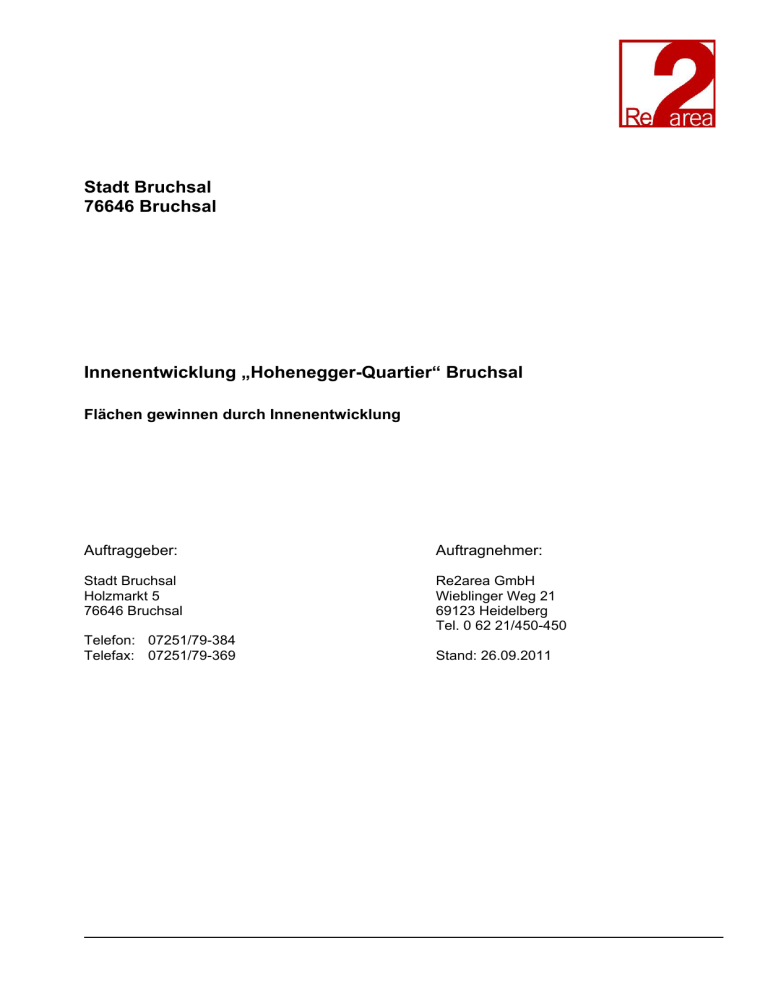 Stadt Bruchsal 76646 Bruchsal Innenentwicklung „Hohenegger-Quartier“ Bruchsal Flächen gewinnen durch Innenentwicklung Auftraggeber: Auftragnehmer: Stadt Bruchsal Holzmarkt 5 76646 Bruchsal Re2area GmbH Wieblinger Weg 21 69123 Heidelberg Tel. 0 62 21/450-450 Telefon: 07251/79-384 Telefax: 07251/79-369 Stand: 26.09.2011 Gefördert und begleitet durch das Ministerium für Umwelt, Naturschutz und Verkehr Baden-Württemberg _____________________________________________________________________________________________ Bearbeitung: Re2area GmbH Büro Esslingen Ruiter Straße 1 73734 Esslingen Tel. 07 11/ 345 85 - 0 Projektleitung: Dipl.-Ing. Nicolas Pollich [email protected] weitere Bearbeiter: Dipl.-Ing. (FH) Georg Thier Dipl.-Geol. Stefan Mauch Aufgestellt: Bruchsal und Esslingen, den 31.09.2011 Seite 2 Gefördert und begleitet durch das Ministerium für Umwelt, Naturschutz und Verkehr Baden-Württemberg _____________________________________________________________________________________________ INHALTSVERZEICHNIS 1 ALLGEMEINES 8 1.1 Situation / Aufgabenstellung / Ziele 8 1.2 Projektbeteiligte / Ansprechpartner 10 1.3 Beteiligung der Bürger 10 1.4 Zur Verfügung gestellte Grundlagen / Unterlagen 11 2 STÄDTEBAULICHE EINORDNUNG 13 2.1 Kommunale Daten 13 2.2 Lage des Untersuchungsgebietes im Stadtgefüge 13 2.3 Enthaltene Grundstücke 14 2.4 Gebietshistorie 15 2.5 Bodenrichtwert / Mietpreisniveau 17 2.6 Zielvorgaben städtischer Entwicklungsplanung 18 2.7 Planungsrechtliche Vorgaben 19 2.7.1 Flächennutzungsplan 19 2.7.2 Bebauungsplan 20 2.7.3 Denkmalschutz 21 2.8 Nutzungsstruktur 22 2.8.1 Wohnnutzung mit Sozialdaten 22 2.8.2 Gewerbliche Nutzung 23 2.8.3 Parkierung 24 2.8.4 Innenhofnutzung 25 2.9 Zusammenfassung der Städtebaulichen Einordnung 26 Seite 3 Gefördert und begleitet durch das Ministerium für Umwelt, Naturschutz und Verkehr Baden-Württemberg _____________________________________________________________________________________________ 3 ANALYSE DER TECHNISCHEN INFRASTRUKTUR 27 3.1 Ver- und Entsorgungsleitungen 27 3.1.1 Wasserversorgung 27 3.1.2 Abwasser 27 3.1.3 Gasversorgung / weitere Energieträger 30 3.1.4 Elektrizität 30 3.1.5 Sonstige Leitungssysteme 30 3.1.6 Abfallentsorgung 30 3.2 Infrastrukturelle Planung Stadtbahn Spöck – Bruchsal - Waghäusel 31 3.3 Zusammenfassung der Situationsanalyse der Technischen Infrastruktur 32 4 ANALYSE ALTLASTEN / ABFALL / ABBRUCH 33 4.1 Altlastensituation 33 4.2 Kampfmittel 35 4.3 Abbruch 36 4.4 Zusammenfassung der Situationsanalyse Altlasten / Abfall / Abbruch 37 5 ZUSAMMENFASSUNG SITUATIONSANALYSE UND GRUNDLAGENAUSWERTUNG 38 6 AUFWERTUNGSZIELE UND RAHMENBEDINGUNGEN / ANNAHMEN FÜR DEREN UMSETZUNG IN NEUORDNUNGSKONZEPTE 40 6.1 Aufwertungsziele 40 6.1.1 Aufwertung des Innenbereichs durch Neuordnung 40 6.1.2 Aufwertung Wohnungsbestand (Blockrand) 42 Seite 4 Gefördert und begleitet durch das Ministerium für Umwelt, Naturschutz und Verkehr Baden-Württemberg _____________________________________________________________________________________________ 6.2 Rahmenbedingungen und Annahmen für die Entwicklung von Neuordnungskonzepten auf Grundlage der vorgenannten Ziele 42 6.2.1 Allgemeine Rahmenbedingungen und Annahmen 42 6.2.2 Rahmenbedingungen und Annahmen zur Parkierung 44 6.2.3 Rahmenbedingungen und Annahmen für Entsiegelung / Begrünung 48 6.2.4 Rahmenbedingungen und Annahmen zur Schaffung zusätzlichen Wohnraums durch Nachverdichtung im Blockinnenbereich 49 6.2.5 Rahmenbedingungen und Annahmen zur Veränderung der Wohnungsgrundrisse 49 Rahmenbedingungen und Annahmen zum Anbau von Balkonen und Vergrößerung der Fensteröffnungen 50 6.2.7 Rahmenbedingungen und Annahmen zur Barrierefreiheit 51 6.2.8 Rahmenbedingungen und Annahmen zur energetischen Sanierung der Gebäude 53 6.2.6 7 DARSTELLUNG DER ENTWICKLUNGSMÖGLICHKEITEN IM BLOCKINNENBEREICH 54 7.1 Basisvarianten 54 7.2 Szenarien auf Grundlage der Basisvarianten 55 7.2.1 Variante 1A 55 7.2.2 Variante 1A* 57 7.2.3 Variante 1B 58 7.2.4 Variante 1C 59 7.2.5 Variante 1C* 60 7.2.6 Variante 1D 61 7.2.7 Variante 1E 62 7.2.8 Variante 1F 63 Seite 5 Gefördert und begleitet durch das Ministerium für Umwelt, Naturschutz und Verkehr Baden-Württemberg _____________________________________________________________________________________________ 7.2.9 Variante 1G 64 7.2.10 Variante 1G* 65 7.2.11 Variante 1H 66 7.2.12 Variante 2A 67 7.2.13 Variante 2B 68 7.2.14 Variante 2B* 69 7.3 Bewertung und Auswahl einer Variante zur Vertiefung 70 8 DARSTELLUNG VON AUFWERTUNGSMASSNAHMEN IM GEBÄUDEBESTAND 72 8.1 Förderprogramme 72 8.2 Sozialverträgliche Umsetzung 72 8.2.1 Sozial verträgliche Umsetzung aus Sicht der Eigentümer 72 8.2.2 Sozial verträgliche Umsetzung aus Sicht der Mieter 74 8.3 Umsetzung auf Grundlage eines gestalterischen Gesamtkonzeptes 75 8.4 Beispielhafte Darstellung einer Optimierung der Wohnnutzung 79 8.4.1 Veränderung der Grundrisse 79 8.4.2 Anbau von Balkonen 83 8.4.3 Vergrößerung der Fensteröffnungen 85 8.4.4 Schaffung von Barrierefreiheit / Anbau Aufzug 88 8.5 Vorschläge für die Energetische Sanierung von Einzelgebäuden 92 8.5.1 Energieeinsparverordnung 92 8.5.2 Heizungsanlage 93 8.5.3 Gebäudedämmung 94 8.5.4 Fenster 96 Seite 6 Gefördert und begleitet durch das Ministerium für Umwelt, Naturschutz und Verkehr Baden-Württemberg _____________________________________________________________________________________________ 9 DARSTELLUNG VON AUFWERTUNGSMASSNAHMEN IM BLOCKINNENBEREICH 97 9.1 Städtebauliches Entwicklungskonzept 9.2 Vorschläge für eine nachhaltige Energieversorgung des Quartiers 102 9.3 Vorschläge für die Gestaltung des Innenquartiers 103 9.3.1 Parkierungsanlagen 103 9.3.2 Begrünungselemente 104 9.3.3 Aufenthaltsbereiche und deren Möblierung 109 9.3.4 Einsatz einer nachhaltigen Regenwasserbewirtschaftung 114 10 EINSCHÄTZUNG DER REALISIERBARKEIT DER UMSETZUNGSVORSCHLÄGE 116 10.1 Anreize für wirtschaftlich schwache Eigentümer 116 10.2 Wirtschaftliche 
