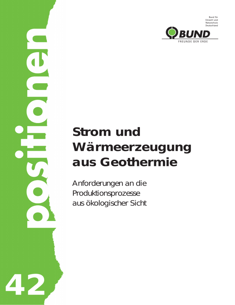 Strom und Wärmeerzeugung aus Geothermie Anforderungen an die Produktionsprozesse aus ökologischer Sicht 42 Inhalt 3 Einleitung 4 1. Unterscheidung verschiedener Formen der Geothermie 4 2. Allgemeine geothermische Potenziale 5 3. Oberflächennahe Geothermie-Nutzung mit Wärmepumpen 6 4. Hydrothermale Systeme 7 5. Petrophysikalische Systeme 7 6. Geothermie und Abwärmenutzung 8 7. Schutz der Umwelt bei der Nutzung geothermischer Energie 8 7.1 Schutz des Grundwassers – als Ressource und Ökosystem 9 7.2 Kühlwasserentnahme bei Geothermie 10 7.3. Immissionsschutz 10 7.4 Erdbebensicherheit 11 8. Zusammenfassung und Forderungen Impressum Herausgeber: Bund für Umwelt und Naturschutz Deutschland e.V. (BUND), Friends of the Earth Germany, Am Köllnischen Park 1, 10179 Berlin, Autoren: Dr. Werner Neumann, Sprecher AK Energie, Sebastian Schönauer, Sprecher AK Wasser, Redaktion: Severin Zillich, V.i.s.d.P.: Dr. Norbert Franck, Telefon: 030/27586-40, Fax: 030/27586-440, E-Mail: [email protected], Bestellnummer: 11.042, März 2007 2 BUNDpositionen Einleitung I m Zusammenspiel mit anderen erneuerbaren (nicht fossilen) Energien spielt die Geothermie eine wichtige Rolle für die Energiewende, um die Nutzung fossiler Energien und der Atomenergie zu beenden. Im eigentlichen Wortsinne ist Geothermie nicht „erneuerbar“, sondern nach menschlichen Maßstäben als „unerschöpflich“ zu bezeichnen. Nur die oberflächennahe Geothermie nutzt teilweise die Sonnenenergie. Die TiefenGeothermie wird von der Abwärme der Zerfallsprozesse natürlicher radioaktiver Stoffe sowie der Wärme bei der Entstehung der Erde gespeist. Je weiter man ins Erdinnere vordringt, desto höher steigt die Temperatur – um etwa 3°C pro 100 Meter. In einer Tiefe von 3.000 bis 5.000 Metern werden in Deutschland ca. 100-200° C erreicht. Theoretisch könnte der deutsche Gesamtbedarf an Strom und Wärme mit Geothermie gedeckt werden. Der besondere Vorteil der Geothermie ist, dass mit ihr – im Unterschied zu anderen erneuerbaren Energien, die fluktuierend anfallen – Grundlastkraftwerke betrieben und damit besonders Braunkohle- und Atomkraftwerke ersetzt werden können. Geothermisch erzeugte Wärme kann fossile Brennstoffe wie Erdgas und Erdöl ersetzen. Technisch wie wirtschaftlich sind folgende Restriktionen zu beachten: • Förderung der Geothermie (Bohrungen) • Aufbereitung und thermische Konzentration der Geothermie • Verteilung und Nutzung der Geothermie (Wärmenetze) Der BUND spricht sich dafür aus, die Geothermie anstelle fossiler und atomarer Energieträger zu nutzen. Hierbei ist der Umweltschutz besonders in folgenden Bereichen zu berücksichtigen: • Schutz des Grundwassers – als Ressource und Ökosystem • Wasserentnahme und Verbrauch zu Kühlzwecken • Naturschutz • Immissionsschutz Einer intensiven und breiten Nutzung der theoretischen Potenziale der Geothermie stehen allerdings noch viele technische und wirtschaftliche Hemmnisse entgegen. Eine deutlich erweiterte Nutzung der Geothermie setzt den Ausbau von Nah- und Fernwärmenetzen voraus. Kurz gesagt: Die Geothermie bietet ein hohes Energiepotenzial; doch es zu nutzen ist sehr aufwändig und – bislang – teuer. Strom und Wärmeerzeugung aus Geothermie 3 1. Unterscheidung verschiedener Formen der Geothermie 2. Allgemeine geothermische Potenziale Spricht man von Geothermie, ist es wichtig, ver1 schiedene Nutzungsarten zu unterscheiden. Die heutigen technischen und wirtschaftlichen Rahmenbedingungen beeinflussen alle Szenarien für die Gewinnung von Strom und Wärme aus Geothermie in den Jahren 2030 bis 2050. So schätzt das Bundesumweltministerium (BMU) eine Nutzung von ca. 1.000 PJ/a aus Geothermie für Strom und Wärme. Würde sich der Primärenergiebedarf von 2005 bis dahin halbieren, könnte die Geothermie etwa 15 % davon decken. • Oberflächennahe Geothermie • Hydrothermale Systeme • Petrothermale Systeme Wir wollen diese Nutzungsarten im Hinblick auf ihre Energiebilanz und ihre Folgen für die Umwelt betrachten. Bei der Deckung des Strombedarfs wird mit einem Potenzial von 100 TWh (2020) und bis zu 300 TWh (2050) gerechnet – allerdings meist ohne den Einsatz der Kraft-Wärme-Kopplung. So könnte der Strombedarf, wenn er von derzeit 550 auf 300 bis 400 TWh/Jahr gesenkt würde, zum größten Teil gedeckt werden. Dazu wären jedoch der Bau und Betrieb von ca. 1.000 geothermischen Kraftwerken mit je 4 MWel erforderlich. Derzeit (2005) liegt der Anteil der geothermischen Energie bei 0,05 % des Primärenergiebedarfs. Allerdings hat sich bei der Erschließung der Geothermie in letzter Zeit ein teilweise erhebliches „Bohrrisiko“ gezeigt. (Wird bei einer bestimmten Bohrtiefe auch die erhoffte Temperatur erreicht? Erfolgt beim „Anstich“ eine Durchströmung der Erdtiefe?) So verzögerte sich das Projekt Soulz-sous-Forets im Elsass, und die Bohrungen in Unterhaching wurden unterbrochen und in Bad Urach aus Kostengründen gestoppt. Derartige Projekte weisen bislang also ein hohes technisches und wirtschaftliches Risiko auf und sind daher auf Zuschüsse und Bohr-Bürgschaften angewiesen. 1 Wir sprechen hier in allen Fällen von Geothermie. Dieser Begriff wird synonym zum Begriff Erdwärme verwendet, auch wenn manche Technologieanbieter gerne die oberflächennahe Geothermie als „Erdwärme“ von der tiefen „Geothermie“ sprachlich trennen wollen. 4 BUNDpositionen 3. Oberflächennahe GeothermieNutzung mit Wärmepumpen Bei der geothermischen Nutzung mit Wärmepumpen wird die (Niedertemperatur-)Wärme der oberen Erdschichten genutzt, sei es durch Verlegung von Wärmetauschern in wenigen Metern Tiefe oder 2 durch Bohrungen in bis zu 100 Metern Tiefe. Für Tiefenbohrungen muss die Genehmigung der Wasserbehörde eingeholt werden und sichergestellt sein, dass das Grundwasser nicht gestört oder beeinträchtigt wird. Teilweise nutzen Wärmepumpen auch die Wärme der Umgebungsluft. Sie bringen die Wärme von einer niedrigen Temperatur auf ein N