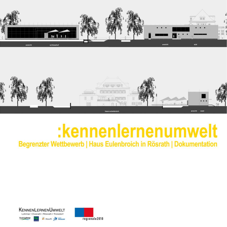 :kennenlernenumwelt Haus Eulenbroich in Rösrath Begrenzter Wettbewerb ∙ Dokumentation Auslober: Stadt Rösrath Hauptstraße 229 51503 Rösrath In Kooperation mit der Regionale 2010 Agentur :nachwuchs Ottoplatz 1 50679 Köln und dem Projektkonsortium ‚KennenLernenUmwelt‘ Wettbewerbsbetreuung: pp a | s pesch partner architekten stadtplaner Zweibrücker Hof 2 58313 Herdecke :kennenlernenumwelt Begrenzter Wettbewerb | Haus Eulenbroich in Rösrath | Dokumentation :inhalt 7 Vorwort 9 Planungsgeschichte und Sachstand 9 Wettbewerbsaufgabe Haus Eulenbroich 9 Wettbewerbsart 11 Beurteilung der Wettbewerbsarbeiten 11 Preise und Ankäufe Wettbewerbsdokumentation 121. Preis 16 2. Preis 20 3. Preis 24 Ankauf 28 Ankauf 32 Weitere Teilnehmer Vorwort Die vorliegende Dokumentation informiert über die Aufgabenstellung und Ergebnisse des KennenLernenUmwelt-Wettbewerbs „Haus Eulenbroich in Rösrath“. Mit diesem Wettbewerb sind wir unserem Ziel wieder einen Schritt näher gekommen. In interkommunaler Kooperation möchten wir mit unseren Partnern – den Städten Lohmar, Overath und Troisdorf – im Rahmen unseres Regionale 2010-Projekts ‚KennenLernenUmwelt‘ vier außerschulische Bildungswerkstätten errichten. Für die Entwicklung am Standort Eulenbroich in Rösrath bedeutet dies wesentliche bauliche Veränderungen. An den Wettbewerb stellten wir die Erwartung, die beste baulich-funktiona­ le Lösung und den passenden Auftragnehmer für unser Projekt zu finden. Derart hohen Qualitätsansprüchen wurde auch die Jury gerecht, die sich sehr intensiv und konzentriert mit den acht eingereichten Wettbewerbsarbeiten befasste. So kürte das Preisgericht in seiner Sitzung am 14. Juni 2007 drei Preisträger und würdigte zwei weitere Arbeiten durch Ankäufe. Ich gratuliere der Arbeitsgemeinschaft der Architekten Franz und Joachim Voigtländer aus Bergisch Gladbach, den Landschafsarchitekten RMP Stephan Lenzen aus Bonn sowie dem Brandschutzsachverständigen Dipl.Ing. Paul Corall aus Meerbusch und dem Tragwerksplaner Dipl.-Ing. Martin Gerdes aus Odenthal sehr herzlich zum 1. Preis und freue mich auf unsere weitere Zusammenarbeit. Bedanken möchte ich mich bei den Wettbewerbsteilnehmern für die hohe Qualität der Entwürfe, bei der Jury und insbesondere dem Vorsitzenden Prof. Dieter Prinz für die konstruktive Arbeitsatmosphäre, beim Büro pesch partner architekten stadtplaner für das sehr gute Verfahrensmanagement, bei meinen Mitarbeitern in der Stadtverwaltung für die Vorbereitung und Begleitung des Wettbewerbsverfahrens und bei der Regionale 2010 Agentur für die kontinuierliche Beratung und Unterstützung. Ich wünsche Ihnen viel Vergnügen bei der Lektüre der Wettbewerbsdokumentation! Dieter Happ Bürgermeister der Stadt Rösrath Planungsgeschichte und Sachstand Seit 2004 verfolgen die Städte Lohmar, Overath, Rösrath und Troisdorf die Idee, interkommunal Bildungsinfrastruktur bereit zu stellen. Erste Ansätze führten zum Zusammenschluss der vier Städte und zu einem Engagement im Rahmen der Regionale 2010. ‚KennenLernenUmwelt‘ nennt sich das Projekt der Städtekooperation seit 2005, das sich neben Bildung auch mit Kulturlandschaft auseinandersetzt. Nach Erstellung einer Projektskizze im Oktober 2005 erfolgte eine stetige Konkretisierung der Projektidee und die Einbindung weiterer relevanter Akteure. Erste Aussagen zu räumlichen Bedarfen und Architektur wurden im Sommer 2006, die betrieblichen und pädagogisch-organisatorischen Aspekte der Bildungswerkstätten darauf aufbauend, ausformuliert. Die Auftakt-Veranstaltung im September 2006 zeigte exemplarisch, wie sich die Projektträger die zukünftige Nutzung der Lernorte vorstellen. Diese Veranstaltung war ein Meilenstein, der nicht nur deutlich machte, dass die Projektentwicklung kontinuierlich fortschreitet, sondern auch eine sehr anschauliche Vermittlung der Projekt­idee für die Öffentlichkeit darstellte. Der Sachstand der Projektentwicklung wurde in einem Projektdossier doku­ mentiert und dem Projektkonsortium wurde im Dezember 2006 der „A-Stempel“ der Regionale 2010 verliehen. Für das erste Halbjahr 2007 war neben der betrieblichen auch die bauliche Qualifizierung vorgesehen. Während bei den beiden etablierten Standorten :regionale Naturschule Aggerbogen | Lohmar und :regionale Kunst- und Literaturwerkstatt | Troisdorf kleinere Um- und Neubaumaßnahmen direkt vergeben werden, wurden für die Standorte :regionale Archäologiewerkstatt | Overath und :regionale Tanz-, Theater- und Musikwerkstatt | Rösrath zwei Wettbewerbsverfahren in Kooperation durchgeführt. Wettbewerbsaufgabe Haus Eulenbroich Haus Eulenbroich wurde um 1770 auf den Grundmauern einer älteren Wasserburg erbaut und nach 1990 umgebaut. Es handelt sich um eine wasserumwehrte Anlage mit Herrenhaus und einem westlich gegenüberliegenden Torhaus. Haus Eulenbroich steht unter Denkmalschutz. Das benachbarte, derzeit noch als Jugendzentrum („JuZe“) genutzte Gebäude wurde in den Jahren 1952/53 als Bettenhaus für das damals in Haus Eulenbroich angesiedelte belgische Gymnasium errichtet. Das Gebäude ist ein für die 50er Jahre typischer zweigeschossiger, nicht unterkellerter Mauerwerksbau mit einfacher Kubatur. Haus Eulenbroich wurde vor einigen Jahren von der Stadt Rösrath an einen Kulturverein zur Nutzung als Kultur- und Bürgerzentrum übergeben. Das unmittelbar benachbarte Jugendzentrum soll in die Zukunftsentwicklung des Standorts einbezogen werden. Die Potenziale des Standortes sollen im Rahmen des Gemeinschaftsprojektes ‚KennenLernenUmwelt‘ zu einer regiona­len Tanz-, Theater- und Musikwerkstatt Haus Eulenbroich ausgebaut werden. Im „JuZe“ sind Raumangebote für Theater, Tanz und Musik vorgesehen. Haus Eulenbroich soll punktuell für Erstaufführungen und Veranstaltungen, aber auch für Einzelunterricht genutzt werden. Der Park und der Freiraum bis zur Sülz sollen in die pädagogische Arbeit einbezogen werden. Die Standortentwicklung Haus Eulenbro