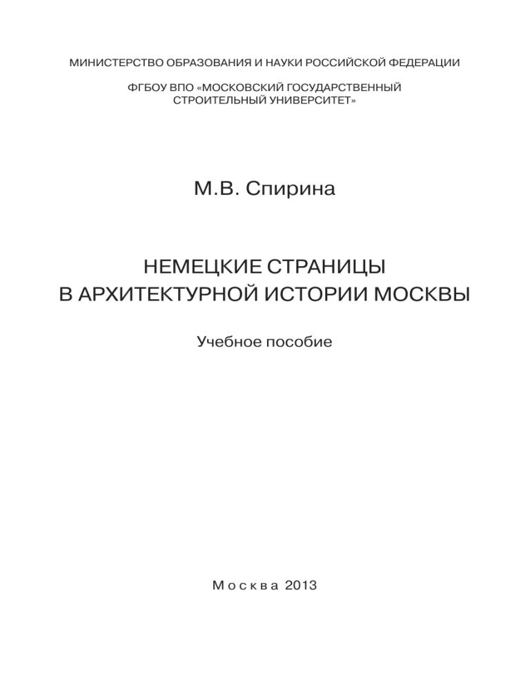 МИНИСТЕРСТВО ОБРАЗОВАНИЯ И НАУКИ РОССИЙСКОЙ ФЕДЕРАЦИИ ФГБОУ ВПО «МОСКОВСКИЙ ГОСУДАРСТВЕННЫЙ СТРОИТЕЛЬНЫЙ УНИВЕРСИТЕТ» М.В. Спирина НЕМЕЦКИЕ СТРАНИЦЫ В АРХИТЕКТУРНОЙ ИСТОРИИ МОСКВЫ Учебное пособие М о с к в а 2013 УДК 84.112.2 ББК 81.2Нем С 72 Р е ц е н з е н т ы: кандидат филологических наук Т.А. Ершова, профессор кафедры иностранных языков и профессиональной коммуникации ФГБОУ ВПО «МГСУ»; кандидат педагогических наук, доктор философских наук, доцент Е.В. Мошняга, заведующая кафедрой лингвистики и регионоведения, декан факультета магистерской подготовки РМАТ С 72 Спирина, М.В. Немецкие страницы в архитектурной истории Москвы : учебное пособие / М.В. Спирина ; М-во образования и науки Росс. Федерации, ФГБОУ ВПО «Моск. гос. строит. ун-т». — Москва : МГСУ, 2013. — 72 с. ISBN 978-5-7264-0739-5 Содержатся биографические сведения об архитекторах немецкого происхождения, живших и творивших в Москве, начиная с XVIII в. по настоящее время; тексты, рассказывающие об архитектурных доминантах Москвы, архитектурных стилях и направлениях, в которых отразились личность и талант их создателей, тексты-интервью, тексты презентационного характера, публикации вакансий. Задания к текстам предусматривают развитие навыков поискового, просмотрового, изучающего чтения. Упражнения направлены на развитие коммуникативных навыков. Тексты снабжены богатым иллюстративным материалом. Рассчитано на 90 академических часов и может использоваться как для аудиторной работы, так и для самостоятельных занятий. Для студентов и бакалавров строительно-архитектурных вузов, а также слушателей программы ПСПК при изучении тематического спецкурса. УДК 84.112.2 ББК 81.2Нем ISBN 978-5-7264-0739-5 © ФГБОУ ВПО «МГСУ», 2013 Оглавление Предисловие . . . . . . . . . . . . . . . . . . . . . . . . . . . . . . . . . . . . . . . . . 4 1. Karl (Karl Iwanowitsch) Blank . . . . . . . . . . . . . . . . . . . . . . . . 5 2. Das Findelhaus des Zaren am Moskworezkaja Kai . . . . . . . . . 7 3. Konstantin Andrejewitsch Thon . . . . . . . . . . . . . . . . . . . . . . . . 9 4. Christ-Erlöser-Kathedrale . . . . . . . . . . . . . . . . . . . . . . . . . . . . . 13 5. Der neue klassizistisch geprägte Prachtbau . . . . . . . . . . . . . . . . 21 6. Generationen einer Familie in Russland . . . . . . . . . . . . . . . . . 23 7. Das Wirken eines Architekten . . . . . . . . . . . . . . . . . . . . . . . . . . 25 8. Ein unbekannter Bekannter . . . . . . . . . . . . . . . . . . . . . . . . . . . . 30 9. Ein verlorengegangenes Baudenkmal . . . . . . . . . . . . . . . . . . . . 34 10. Robert Julius (Roman Iwanowitsch) Klein . . . . . . . . . . . . . . . 37 11. Das Museum der schönen Künste (das Staatliche Museum der bildenden Künste) . . . . . . . . . . . . . . . . . . . . . . . . . . . . . . . . . . 39 12. Tatsachen der Biographie . . . . . . . . . . . . . . . . . . . . . . . . . . . . 42 13. Ein Jahrhunderthaus . . . . . . . . . . . . . . . . . . . . . . . . . . . . . . . . 46 14. Umbaumaßnahmen für einen historischen Bahnhof . . . . . . . 49 15. Deutsche Architekten bauen in Moskau das höchste Haus Europas . . . . . . . . . . . . . . . . . . . . . . . . . . . . . . . . . . . . . . . . . . . . . . 54 16. Arbeit für deutsche Architekten in Russland . . . . . . . . . . . . . 57 17. Klub deutscher Architekten in Moskau gegründet . . . . . . . . . 59 18. Arbeit in Moskau beim Klub deutscher Architekten . . . . . . . 61 19. Ein Interview . . . . . . . . . . . . . . . . . . . . . . . . . . . . . . . . . . . . . . 63 20. Lebenslauf und Laufbahn . . . . . . . . . . . . . . . . . . . . . . . . . . . . 65 21. Повторение . . . . . . . . . . . . . . . . . . . . . . . . . . . . . . . . . . . . . . . 66 Источники . . . . . . . . . . . . . . . . . . . . . . . . . . . . . . . . . . . . . . . . . . 71 3 ПРЕДИСЛОВИЕ Изучив предложенное Вашему вниманию учебное пособие, Вы познакомитесь: – с деятельностью выдающихся русских архитекторов и инженеров немецкого происхождения, создававших исторический облик Москвы; – узнаете имена современных немецких архитекторов, работающих в Москве и вносящих свой вклад в формирование современного облика Москвы; – научитесь воспринимать архитектурные ансамбли и строения сквозь призму их создания; – посмотрите на 