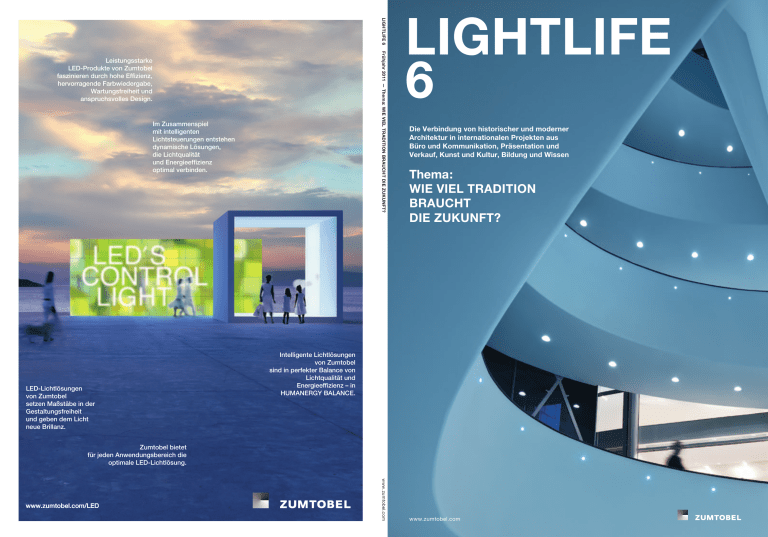 LIGHTLIFE 6 Frühjahr 2011 — Thema: WIE VIEL TRADITION BRAUCHT DIE ZUKUNFT? Leistungsstarke LED-Produkte von Zumtobel faszinieren durch hohe Effizienz, hervorragende Farbwiedergabe, Wartungsfreiheit und anspruchsvolles Design. Im Zusammenspiel mit intelligenten Lichtsteuerungen entstehen dynamische Lösungen, die Lichtqualität und Energieeffizienz optimal verbinden. LED-Lichtlösungen von Zumtobel setzen Maßstäbe in der Gestaltungsfreiheit und geben dem Licht neue Brillanz. LIGHTLIFE 6 Die Verbindung von historischer und moderner Architektur in internationalen Projekten aus Büro und Kommunikation, Präsentation und Verkauf, Kunst und Kultur, Bildung und Wissen Thema: WIE VIEL TRADITION BRAUCHT DIE ZUKUNFT? Intelligente Lichtlösungen von Zumtobel sind in perfekter Balance von Lichtqualität und Energieeffizienz – in HUMANERGY BALANCE. Zumtobel bietet für jeden Anwendungsbereich die optimale LED-Lichtlösung. www.zumtobel.com www.zumtobel.com/LED www.zumtobel.com Dr. Harald Sommerer, CEO Zumtobel Group über die Kontinuität von Tradition und Moderne bei Zumtobel Dr. Harald Sommerer (Foto: Jens Ellensohn) MIT LICHT ENTSTEHEN BRÜCKEN IN DIE ZUKUNFT Tradition und Zukunft sind feste Bestandteile der Marke Zumtobel. Beide Parameter gehören zum Alltag unseres Unternehmens, das sowohl an seiner Geschichte als auch an der Fähigkeit gemessen wird, aktuelle Herausforderungen anzunehmen und mit Blick auf die Zukunft wegweisende Lösungen zu entwickeln. Für den entscheidenden Schritt in die Zukunft darf der Blick zurück ebenso wenig fehlen wie der Blick nach vorne. Auf der Basis von Bisherigem wird auf diese Weise Neues entwickelt. Der Schlüssel dabei liegt in der harmonischen Verbindung beider Parameter. Als etabliertes Unternehmen verfolgen wir einen ganzheit­lichen Denkansatz, der Verbindungen von Bewährtem und Innovativem berücksichtigt, um auf dieser Basis die bestmögliche Lösung für unsere Kunden zu finden. So setzt sich Zumtobel für die Entwicklung von Lichtkonzepten stets auch mit dem Standort eines Gebäudes, seiner Architektur, seiner Geschichte sowie Fragen der Nutzung und der Zielsetzung von baulichen Interventionen auseinander. Es spielt dabei keine Rolle, ob es sich um einen Neubau, eine Erweiterung oder eine Modernisierung handelt. Die Erneuerung der Beleuchtung auf der Basis zukunftsweisender Technologien gehört mit zu unserem Arbeitsbereich. Der Austausch bzw. die Modernisierung von Leuchten trägt in qualitativer, LIGHTLIFE 6 2011 EDITORIAL energetischer und ökonomischer Hinsicht zu einer Verbesserung des menschlichen Wohlbefindens, der Wohnund Arbeitsqualität und der Schonung der Umwelt bei. Wir nehmen die Herausforderung an, Licht als Gestaltungselement in alten und neuen Strukturen harmonisch zu integrieren und dadurch Architektur, Licht und auch die Umgebung in einen Dialog treten zu lassen. Hier treffen Kontinuität und Kontraste in der Regel aufeinander. Traditionelle Formen und Strukturen werden mit Neuem zu einer Einheit verbunden. In der aktuellen Ausgabe von Lightlife stellen wir Ihnen Projekte vor, die in ganz unterschiedlichen Facetten eine faszinierende Verbindung zwischen Tradition und Moderne, zwischen Kontinuität und Kontrast eingehen. Die Sanierung der Deutschen Bank in Frankfurt am Main, das Museo del Novecento in Mailand oder die beiden Gespräche mit der Architektin Odile Decq und Delugan Meissl Associated Architects zeigen verschiedene Ansätze, traditionelle und moderne Werte in Architektur und Produktdesign zu verbinden. In diesem Sinne freuen wir uns darauf, mit Ihnen gemeinsam spannende Projekte zu realisieren und mit Licht Brücken in die Zukunft zu bauen. Inhalt LIGHTLIFE 6 4 1 Editorial: Mit Licht entstehen Brücken in die Zukunft von Dr. Harald Sommerer, CEO Zumtobel Group 2 Inhalt 27 DIE SINNLICHE SEITE DES LICHTS The Making of Iyon – Ein Gespräch mit Roman Delugan und Christian Schrepfer 32 MUSEO DEL NOVECENTO IN MAILAND Inneres Leuchten ES GIBT KEINE KLUFT ZWISCHEN GESTERN UND MORGEN Ein Gespräch mit Odile Decq von Claudia Fuchs KOMMENTAR Wenn Wände sprechen 38 von Friederike von Rauch 10 DEUTSCHE BANK IN FRANKFURT AM MAIN Intelligenz schafft Mehrwert von Ursula Sandner 18 PROJEKTE IN KÜRZE 22 LEVI’S GREEN STORE IN PARIS Der Umwelt verpflichtet von Sandra Hofmeister HIGHLIGHTS Produktneuheiten und Ergänzungen Frühjahr 2011 EPFL ROLEX LEARNING CENTER IN LAUSANNE Bewegte Raumlandschaft 40 von Frank Kaltenbach 46 49 2 LIGHTLIFE 6 2011 INHALT News & Stories Impressum, Projektverantwortliche Licht hat magische Kräfte – an kaum einem anderen Ort entfalten sie sich seit Jahrhunderten so ausdrucksstark wie im Pantheon in Rom. „Der beste Weg, die Zukunft vorauszusagen, ist, sie zu gestalten.“ Willy Brandt 4 LIGHTLIFE 6 2011 GESPRÄCH MIT ODILE DECQ Fotos: Markus Deutschmann, Roland Halbe (S. 8) Interview: Sandra Hofmeister ES GIBT KEINE KLUFT ZWISCHEN GESTERN UND MORGEN Ein Gespräch mit Odile Decq Mit Projekten wie dem kürzlich eröffneten Macro-Museum in Rom hat Odile Decq architektonische Visionen realisiert, die Vergangenheit und Zukunft unter einem Dach vereinen. Die französische Architektin und Stadtplanerin bekennt sich dabei zu einer zeitgenössischen Ästhetik, die gleichermaßen auf Kontinuität und auf Kontrast setzt. 1996 gewann sie den Goldenen Löwen der Internationalen Architekturbiennale in Venedig. Seit dem Tod ihres Partners Benoît Cornette führt sie das international tätige Büro ODBC architectes urbanistes weiter und leitet seit 2007 die École Spéciale d’Architecture in Paris. Ihre signifikante architektonische Sprache entwickelt Odile Decq auf der Basis der Analyse von Vorgefundenem, das sie durch ihre Interventionen ergänzt und auf die Zukunft öffnet. 5 LIGHTLIFE 6 2011 GESPRÄCH MIT ODILE DECQ Madame Decq, Ihr Architekturbüro liegt im Marais-Viertel im Zentrum von Paris. Ist diese historische Umgebung eine Inspirationsquelle für Sie? Odile Decq: Seit mehr als 30 Jahren lebe und arb
