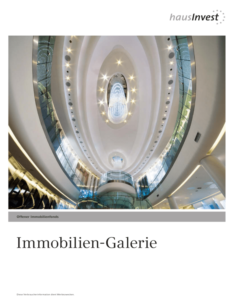 Offener Immobilienfonds Immobilien-Galerie Diese Verbraucherinformation dient Werbezwecken. Vorwort Erich Seeger, Mitglied des Vorstands der Commerz Real AG Liebe Leserinnen und Leser, eine Galerie kann die optisch eindrucksvollsten Stücke oder einen repräsentativen Ausschnitt eines Gesamtwerkes zeigen. Wir haben uns bei der vorliegenden ImmobilienGalerie für eine Kombination aus beidem entschieden. Unsere Galerie zeigt Ihnen einen Querschnitt unserer insgesamt mehr als 100 hausInvest-Fondsobjekte und stellt dabei auch ganz besondere Highlights vor: Neben einem der größten Shopping-Center in Euro­ pa gehört zum Beispiel auch die erste Büroimmobilie Europas, die den Platin-Standard des LEED-Zertifizierungsverfahrens für Nachhaltigkeit erfüllt, zum Portfolio des Fonds. Bereits seit 1972 untermauert hausInvest nun schon seine Solidität und Stabilität. In dieser langen Zeit ist viel passiert. Beständig war dabei immer der Wandel: hausInvest hat sich vom kleinvolumigen Investmentfonds zur Branchengröße entwickelt. Aus dem Fonds für Büroimmobilien ist ein Anlageprodukt mit einem breit gestreuten NutzungsartenPortfolio geworden. Anfänglich noch ein reiner Deutschlandfonds, ist hausInvest heute in Europa zu Hause und verfolgt eine klar definierte internationale Strategie. Die Frage, wie wir das Vermögen unserer Anleger gewinnbringend und dabei solide anlegen, beschäftigt uns seit nunmehr vier Jahrzehnten. Trotz des gesellschaftlichen und politischen Wandels ist die Antwort im Kern immer die gleiche geblieben: Hochwertige Substanz-Immobilien mit überwiegend langfristig abgeschlossenen Mietverträgen an Standorten mit aussichtsreicher Wirtschaftskraft bilden seit jeher die Grundlage für den Erfolg von hausInvest. Wo genau diese Substanz zu finden ist, das hat sich mit den Jahren zum Teil geändert – und damit auch hausInvest. Ein gutes Fondsmanagement macht deshalb die Fähigkeit aus, altbekannte Lösungen immer wieder zu hinterfragen und neu zu überdenken. Die ständige Anpassung an und die dauerhafte Antizipation von Marktgegebenheiten nennen wir auch aktives Portfolio­management. Das hat hausInvest zu dem gemacht, was er ist: verlässlich, stabil, solide – und vor allem langfristig beständig. Machen Sie sich selbst ein Bild von der Vielfalt unserer hausInvest-Immobiliensubstanz. Ich wünsche Ihnen viel Spaß beim Rundgang durch unsere Galerie. Herzlichst, Ihr Erich Seeger 3 Inhalt 5 21 29 34 Büro Einzelhandel Hotel & Logistik Auf einen Blick Büro Adieu Tristesse: Auch wenn es einmal turbulent zugeht, haben mo­derne Arbeitsplätze einen hohen Wohlfühlfaktor. Durchatmen und Arbeiten sind kein Widerspruch. Erstklassige Ausstattung, viel Ta­ges­licht und stimmungsvolle Farbkonzepte beflügeln die Produktivität – der passende Rahmen für die weltweiten Geschäfte namhafter Unter­nehmen. © HOCHTIEF Projektentwicklung GmbH 6 Neue Direktion Köln (Projektentwicklung) Köln, Deutschland Konrad-Adenauer-Ufer 3 Baujahr: geplante Fertigstellung Mai 2016 Erwerbsdatum: Dezember 2013 Mietfläche: 22.427 m² Vermietungsquote: 100 % Restlaufzeit der Mietverträge: 20 Jahre Mieter: EASA Tradition trifft auf Moderne Die „Neue Direktion Köln“ entsteht derzeit in exponierter Lage direkt am Rheinufer und in unmittelbarer Nachbarschaft von Dom und Hauptbahnhof. Dazu wird das ehemals für die Kölner Eisenbahndirektion im Jahr 1913 fertiggestellte Gebäude komplett neu errichtet und um einen modernen Glasdachaufbau ergänzt. Lediglich die denkmalgeschützte Fassade bleibt erhalten und wird in den Neubau integriert. Nach der Fertigstellung ist die Immobilie für die Zertifizierung nach dem DNGB-Silber-Standard vorgesehen. Hinter den historischen Fassaden werden rund 22.000 Quadratmeter modernste Büro­ flächen geschaffen. Alleiniger Mieter der „Neuen Direktion Köln“ wird die Europäische Agentur für Flugsicherheit (EASA). Der Mietvertrag läuft über 20 Jahre mit Verlängerungs­option. Das Gebäude wird mit seiner Symbiose aus neoklassizistischer Fassade und dem modernen Dachaufbau einen neuen architektonischen Akzent im Kölner Rheinpanorama setzen. Darüber hinaus wird die Büroimmobilie dank der langfristigen Vermietung an die renommierte EASA einen verlässlichen Beitrag zum Erfolg von hausInvest leisten. 7 Büro Einzelhandel Hotel & Logistik Top-Lage mit einzigartiger Aussicht Place d’Iéna Eine der hochwertigsten Büroimmobilien im zentralen Pariser Geschäftsdistrikt, dem 16. Arrondissement, ist Place d’Iéna. Edler Marmor und Echtholzvertäfelungen unterstreichen schon im Empfangsbereich die Exklusivität des im Jahr 2000 erbauten und 2008 aufwendig renovierten Gebäudes. Entsprechend namhaft sind die Hauptmieter: die japanische Finanzholding Nomura sowie der Computer- und Unterhaltungselektronikhersteller Apple. Von der Panorama-Terrasse in der obersten Etage bietet sich den Mitarbeitern ein Blick über die zahlreichen Sehenswürdigkeiten der Stadt bis zum Montmartre und zu Sacré-Cœur. Paris, Frankreich 7 Place d’Iéna Nur einen Steinwurf vom Garten von Place d’Iéna entfernt liegt der Eiffelturm. Der ehemalige Tennisplatz von dessen Erbauer Gustave Eiffel ist als Rasenfläche in die zur Immobilie gehörende parkähnliche Anlage integriert. Direkt an einer Metrostation gelegen, ist das Büro­gebäude schnell mit öffentlichen Verkehrsmitteln, aber für Pariser Verhältnisse auch gut mit dem Auto zu erreichen. Baujahr: 2000 Erwerbsdatum: Mai 2002 Mietfläche: 11.779 m² Vermietungsquote: 99,6 % Restlaufzeit der Mietverträge: 3,0 Jahre Mieter: u. a. Apple, Nomura 9 Büro Einzelhandel Hotel & Logistik Im Herzen des Frankfurter Bankenviertels Eurotheum Frankfurt am Main ist ein Finanz- und Dienstleistungszentrum von Weltrang und gehört zu den führenden europäischen Unternehmensstandorten. Seine Spitzenstellung im internationalen Vergleich verdankt die Stadt vor allem seiner guten Infrastruktur mit einem der größten Flughäfen des Kontinents, de