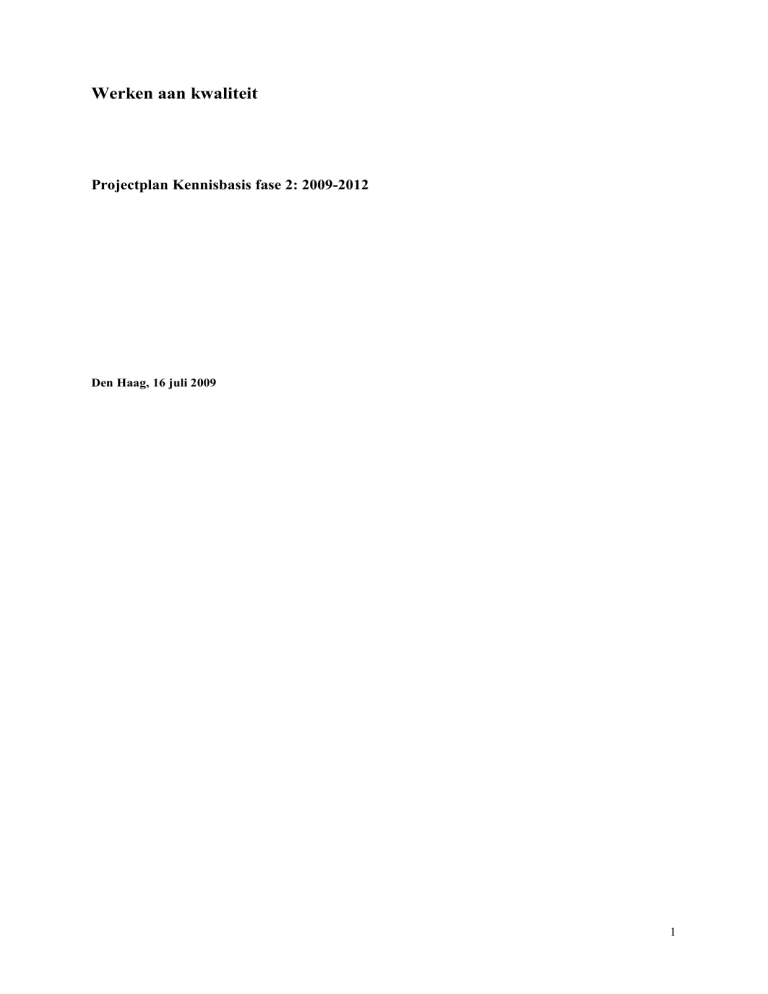 Werken aan kwaliteit Projectplan Kennisbasis fase 2: 2009-2012 Den Haag, 16 juli 2009 1 Werken aan kwaliteit Projectplan fase 2: 2009-2012 1. Inleiding Op 27 oktober 2008 is het projectplan Werken aan Kwaliteit: Projectplan Kennisbasis fase 1: 2008-2009 vastgesteld door de HBO-raad en aangeboden aan staatssecretaris Van Bijsterveldt. Dit projectplan was een uitwerking van de afspraken in het kader van de Kwaliteitsagenda voor het opleiden van leraren 20082011, waarin de staatssecretaris aangaf afspraken te willen maken met de HBO-raad over het vastleggen van het eindniveau (de kennisbasis) van de opleidingen, alsmede de ontwikkeling van de hiermee samenhangende toetsen. De ontwikkeling van een aantal kennisbases en een programma van eisen voor een robuuste toetsinfrastructuur vormden de kern van het project Werken aan Kwaliteit, dat loopt van 2008 t/m 2009 (fase 1) en dat onderdeel uitmaakt van een meerjarig project. Voorliggend projectplan betreft het tweede deel van dit meerjarige project en heeft vanaf de start in september 2009 een looptijd t/m december 2012. Voor de eerste fase van het project waren de volgende resultaten voor de Pabo’s en de tweedegraads lerarenopleidingen benoemd: 1. Kennisbasis a. Per vak is er een beschrijving van de kennisbasis. Voor de Pabo’s voor taal en rekenenwiskunde, waar nodig gedifferentieerd naar het jonge en oudere kind. Voor de tweedegraads opleidingen voor alle vakken met uitzondering van de 9 technische opleidingen en Fries, waarvoor voorstellen zullen worden gedaan in het aangekondigde projectplan dat in het voorjaar van 2009 zal worden vastgesteld b. De kennisbases zijn gelegitimeerd en gevalideerd door het werkveld. c. Bij de beschrijving is rekening gehouden met de studielast in vier studiejaren d. Er is een overdrachtsdossier met protocollen voor actief beheer en onderhoud van kennisbases e. De kennisbases zijn digitaal toegankelijk f. Er is een plan van aanpak voor de implementatie en incorporatie in het cursusjaar 20092010 van de kennisbases in curricula en studiegidsen ten behoeve van het cursusjaar 20102011 en opname in het OER 2. Toetsinfrastructuur a. Definitiestudie ten behoeve van een programma van eisen voor de toetsinfrastructuur. Dit is een gezamenlijk deelproject van Pabo’s en tweedegraads lerarenopleidingen. b. Voor de tweedegraads opleidingen die al verder zijn met het invullen van de kennisbasis: een aanvang met de beschrijving van toetsitems c. Er is een plan van aanpak voor de inhoudelijke vulling van kennistoetsen, de legitimering van toetsen en het vaststellen van de normering Deze resultaten zullen voor het grootste deel nog in de zomer van 2009 opgeleverd worden, met name waar het gaat om de beschrijving van de verschillende kennisbases. Dit is ook de reden waarom ervoor wordt gekozen om de tweede fase van het projectplan al in september 2009 te laten starten, omdat dan al gestart kan worden met de inhoudelijke vulling van de kennistoetsen, gebaseerd op de nu reeds opgeleverde kennisbases. Op deze wijze wordt er voldoende vaart in het proces gehouden. Daarnaast is het voor veel opleidingen vanuit een organisatorisch oogpunt handig om al zo spoedig mogelijk te weten welke 2 medewerkers in het nieuwe studiejaar minder beschikbaar zullen zijn voor het onderwijs omdat er voor hun deelname aan Werken aan Kwaliteit een groot beslag op hun tijd zal worden gelegd. In de afgelopen periode is er door alle betrokkenen heel erg veel werk verzet. Dit is ook al aangegeven in de voortgangsrapportages over het project die in maart en juli aan het ministerie zijn verstuurd. Opleidingen, docenten en managers geven aan dat de hogeschooloverstijgende samenwerking door de ontwikkelaars van de kennisbases als zeer inspirerend is ervaren en soms ook heeft geleid tot mooie, nieuwe initiatieven en samenwerkingsverbanden. Deze positieve resultaten willen wij ook in de volgende fase van het project in stand houden door daar waar mogelijk het inhoudelijke werk uit te laten voeren door medewerkers van de hogescholen. Dit sluit ook aan op de analyse van Rinnooy Kan (2007) dat het vooral de leraar, de professional, is die als uitgangspunt dient voor gewenste veranderingen. Ook op andere plaatsen is voor de invulling van dit projectplan gebruik gemaakt van de resultaten en ervaringen die zijn opgedaan in de eerste fase, 2008-2009. Kwaliteit Deze ervaringen hebben in de eerste plaats te maken met kwaliteit. Zo bleek gedurende het proces in de eerste fase dat er onduidelijkheid bestond over het koppelen van de inhoud van de kennisbasis aan een bepaalde hoeveelheid studiepunten. Dit heeft geleid tot een intensieve discussie binnen de sector waarna is besloten om voor de gezamenlijke kennisbasis uit te gaan van de helft van de opleiding. Nadat dit was vastgesteld en de eerste concepten kennisbases werden opgeleverd deed zich een nieuw probleem voor, namelijk de manier waarop de kennisbases van de Pabo’s zijn beschreven, ten opzichte van die van de tweedegraads lerarenopleidingen. De verschillende bases waren op een ander aggregatieniveau beschreven. Daarenboven was er ook in het format van de beschrijvingen nog een te groot verschil. Dit is binnen de regiegroep goed doorgesproken om uiteindelijk te komen tot een eenduidig uniform format. Zowel de beslissingen over de studiepunten alsmede het format zijn leerervaringen die het proces in de tweede fase kunnen versterken. In ieder geval hoeft op deze onderwerpen in de volgende fase voor het ontwerpen van de overige kennisbases geen nieuw besluit meer te worden genomen en kan gebruik gemaakt worden van het reeds bestaande format. Dat de kennisbases zijn beschreven door medewerkers van hogescholen zelf borgt de betrokkenheid van de docenten die straks zelf met de kennisbasis zullen moeten werken, en draagt daarmee bij aan zowel de inhoud als het draagvlak. Tenslotte zal het proces van legitimering door een groep uiteenlopende professionals ook in de tweede fase op dezelfde manier worden uitgevoerd vanwege