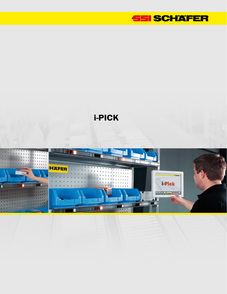 i-Pick AUTOMATISCHE KOMMISSIONIERUNG Optimal kommissionieren mit i-Pick Effizienzsteigerung auf bis zu 300 % und Qualitätssteigerung um das 10-fache. i-Pick bietet die Möglichkeit Ihr professionelles Lager gesamt oder partiell mit Pick-by-Light auszustatten und damit schneller und effizienter zu machen oder Ihr bestehendes Pick-by-Light System selbst zu erweitern. Pick-by-Light ist eine seit Jahren bewährte Methode, Kundenaufträge schnell und sicher zu kommissionieren. Ihre Vorteile Qualitätsprodukt vom Weltmarktführer für innerbetriebliche Logistik Einfache selbstinstallation Kostengünstige Einstiegslösung Leistungssteigerung Ihres Lageroutputs auf 300% Minimierung der Fehlerquote um das 10-fache Technische Daten Ideal für Lager mit bis zu 800 Produkten Anbindung an Ihre Datenbank i-Pick Statten Sie Ihr Lager in wenigen Schritten mit i-Pick und Pick-by-Light aus Spielend einfach: Die Komponenten werden über Kabel mit Ihrer Datenbank verbunden. i-Pick Parametrier-Touchpanel Linecontroller Pick-by-light-(PBL)-Schienen mit Pickfaces werden an Ihren bestehenden Regalen montiert. Ihre Datenbank Anbindung des i-Pick an Ihr WAREHOUSE-MANAGEMENT-SYSTEM i-Pick unterstützt verschiedene Möglichkeiten, Ihre Bestelldaten abzufragen. Direkte Datenbankanbindung Wenn sie bereits eine SQL-kompatible Datenbank besitzen, können Sie Tabellen oder Views freigeben und diese direkt von i-Pick abfragen lassen. Folgende SQL-kompatible Datenbanken werden von i-Pick unterstützt: MS SQL Server, Oracle, PostgreSQL, MySQL und PervasiveSQL. XML-Datei Über die USB-Schnittstelle des i-Pick Touchpanels können Sie XML-Dateien mit den Bestelldaten in den Terminal laden. Web-Service Sie können einen Web-Service einrichten, mit dem i-Pick kommuniziert, um die Bestelldaten abzufragen. Benötigte Produktdaten Zu den Produktdaten zählen Informationen über den Lagerort des Produkts und Informationen über den Lagerstand. Durchlaufzeiten bei Kommissionierung mit i-Pick und Handzettel im direkten Vergleich Kommissionierung mit Handzettel Benötigte Bestelldaten Die Bestelldaten setzen sich aus der Bestellungsnummer, der Nummer der Auftragszeile, dem Lagerort und der Anzahl der bestellten Produkte zusammen. Sowohl die Produkt- als auch die Bestelldaten können optional durch Zusatzinformationen, wie z.B. Produktnamen, aus Ihrem WMS ergänzt werden. Vergleich von kommissionierten Zeilen pro Stunde Kommissionierung mit i-Pick Auftragsdauer n Auftragsstart n Wegzeit n Suchen und Kommissionieren n Auftragsabschluss 234 Zeilen n Zeitersparnis durch i-Pick 490 Zeilen n Kommissionierung mit i-Pick n Kommissionierung mit Handzettel AUTOMATISCHE KOMMISSIONIERUNG So steigern Sie die Effizienz Ihres Lagers mit i-Pick 1 Messen Sie die Breite der zu bestückenden Bereitstellungsregale und bestimmen sie die Lagerplätze pro Regalebene. Wählen sie eine vormontierte Pick-byLight (PBL)-Schiene mit der entsprechenden Anzahl an Pickfaces aus -– ist die vormontierte Schiene im nötigen Längenmaß nicht verfügbar, wählen Sie die nächstgrößere Länge und kürzen Sie Metallschiene und Abdeckungen vor der Montage. Wenn Sie mehr Pickfaces als vormontiert benötigen, bestellen Sie diese zusätzlich mit und setzen diese in die Schienen ein. Die Verkabelung jeder vormontierten Schiene ist so ausgeführt, dass man bis zu 6 Pickfaces daran anbringen kann. In unserem Beispiellager (siehe Skizze unten) werden 990 mm breite Regale verwendet. In Block drei und vier stehen jeweils 5 Produkte pro Fachboden – wir bestellen dafür Schienen mit 960 mm länge und je 5 Pickfaces. In Block zwei stehen jeweils 4 Produkte pro Fachboden – wir bestellen dafür Schienen mit 960 mm länge und je 4 Pickfaces. 2 Individuelle Pick-by-Light-Schienen zusammenbauen können Sie mit den Schienenbausätzen und der entspre- Beispiellager chenden Anzahl an Pickfaces: Messen Sie die Gesamtlänge der Entnahmeplätze (Fachböden, Paletten usw.) und bestellen Sie die Bausatz-Schienen in entsprechender Anzahl/Gesamtlänge, schneiden Sie die Schienen auf die benötigten Längen zu und bestücken sie mit Pickface-Kabel mit Endstücken und einem Pickface pro Lagerplatz. In Block 1 unseres Beispiellagers sollen die 5 Palettenplätze mit je einer Schiene ausgestattet werden. Je Palettenplatz werden 0,75m Schiene bestellt - das ergibt insgesamt 3,75m – also 2 Bausatz-Schienen. Zusätzlich wird jeweils ein Kabel mit Endstücken und ein Pickface benötigt. 3 Um Pickfaces mit dem Linecontroller zu verbinden wird ein Linekabel eingesetzt – bis zu 50 Pickfaces können je Block damit versorgt werden. Unser Beispiellager wurde in vier logische Blöcke unterteilt, die mit je einem Linekabel in entsprechender Länge, immer an der rechten unteren Ecke angeschlossen werden. 4 Zur Verbindung des Linekabels mit den einzelnen PBL-Schienen an den Fachböden dient das Verteilerkabel. In unserem Beispiellager wurden die Line/Block 2 Blöcke 2, 3 und 4 mit je einem Verteilerkabel versorgt. 5 Um die Versorgung von einer Schiene zur nächsten zu ermöglichen, werden Verbindungskabel eingesetzt. Im Beispiel verwenden wir für die Blöcke 1 und 2 je vier Verbindungskabel. 6 Wenn Sie die Anzahl der Linekabel bzw. Blöcke durch die Zahl 5 dividieren, erhalten Sie die für Ihr Lager benötigte Anzahl an Linecontrollern. In unserem Beispiellager wird ein Linecontroller eingesetzt. 7 Bestellen Sie ein i-Pick Touchpanel. Dieses Touchpanel wird bereits mit einem Switch geliefert. Schließen sie maximal 4 Linecontroller über den Ethernet-Switch an das Touchpanel an. In unserem Beispiellager benötigen wir ein i-Pick Touchpanel. i-Pick sowie der Ethernet-Switch und die Linecontroller benötigen jeweils eine Spannungsversorgung von 230 V. 8 Zur Automatisierung des Auftragsstarts kann ein Scanner verwendet werden. In unserem Beispiellager setzen wir einen Handscanner ein. Line/Block 3 Line/Block 4 i-Pick Linecontroller — Linekabel — Verbundungskabel — Verteilerkabel PBL-Schiene 0 Lagerpla