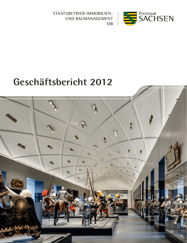Geschäftsbericht 2012 Inhaltsverzeichnis 1. 2. 3. 4. Vorwort des Geschäftsführers ................................................................................................................. 04 Der Staatsminister der Finanzen zu zehn Jahren SIB ................................................................... 06 Zehn Jahre SIB – Nutzer kommen zu Wort ...................................................................................... 08 Jahresergebnisse 2012 im Überblick .................................................................................................... 14 5. Der 5.1 5.2 5.3 5.4 Staatsbetrieb SIB ................................................................................................................................... 16 Planungs- und Baumanagement ..................................................................................................... 16 Facility- und Bedarfsdeckungsmanagement ................................................................................ 16 Finanzvermögen und Portfoliosteuerung ...................................................................................... 17 Zentrale Aufgaben .................................................................................................................................. 17 6. Die 6.1 6.2 6.3 6.4 Geschäftsentwicklung 2012 .............................................................................................................. 18 Planungs- und Baumanagement ..................................................................................................... 18 Facility- und Bedarfsdeckungsmanagement ................................................................................ 28 Finanzvermögen und Portfoliosteuerung ...................................................................................... 33 Zentrale Verwaltung .............................................................................................................................. 41 6.4.1 Bericht aus dem Personalbereich ........................................................................................ 41 6.4.2 Bericht aus dem Vergabe- und Vertragsmanagement ................................................. 43 6.4.3 Bericht aus dem IT-Bereich .................................................................................................... 46 6.4.4 Bericht aus dem Organisationsbereich ............................................................................... 47 7. Die Standorte ................................................................................................................................................... 48 Niederlassung Bautzen .................................................................................................................................. 48 Niederlassung Chemnitz ............................................................................................................................... 50 Niederlassung Dresden I ................................................................................................................................ 52 Niederlassung Dresden II .............................................................................................................................. 54 Niederlassung Leipzig I .................................................................................................................................. 56 Niederlassung Leipzig II ................................................................................................................................. 58 Niederlassung Zwickau .................................................................................................................................. 60 8. Preise und Auszeichnungen ...................................................................................................................... 62 9. Organisation und Aufsicht ........................................................................................................................ 64 S Jahre I B Inhaltsverzeichnis | 03 1. Vorwort des Geschäftsführers Zwinger Dresden, Mathematisch-Physikalischer Salon Seit nunmehr zehn Jahren obliegt dem Staatsbetrieb Sächsisches Immobilien- und Baumanagement (SIB) die verantwortungsvolle Aufgabe, das Immobilienvermögen des Freistaates Sachsen zu verwalten und dessen Bauvorhaben zu koordinieren. In den Geschäftsbereichen Planen und Bauen, Bewirtschaften und Verwerten konnte sich der SIB gegenüber den betreuten Behörden und Geschäftspartnern als qualifizierter und verlässlicher Dienstleister etablieren. In unserem Leitbild heißt es, „Wir planen auch für nachfolgende Generationen“. Vorausschauende und nachhaltige Planungen sind die entscheidenden Faktoren um dieses ambitionierte Ziel zu erreichen, was ohne engagierte und qualifizierte Mitarbeiter nicht möglich wäre. Einen bedeutenden Aspekt stellt hierbei der weitere Ausbau Sachsens als Standort der Wissenschaft und der Spitzenforschung dar. Das reiche kulturelle Erbe des Freistaates bedarf ebenfalls besonderer Aufmerksamkeit und Pflege, um es für die nachfolgenden Generationen zu bewahren. Nimmt man Dritte und den Bundesbau hinzu, hat der SIB im Jahr 2012 Bauinvestitionen in Höhe von 432 Millionen Euro getätigt. Darunter finden sich eine Reihe bekannter Baumaßnahmen wieder, wie zum Beispiel die Fertigstellung des Riesensaals im Dresdner Residenzschloss. Nicht zu vergessen sind die 04 | Vorwort des Geschäftsführers Die Integration der einstmals flexibilisierten Hochschulen in den SIB konnte 2012 verstetigt werden. Dies betraf die Bewirtschaftung der Hochschule Zittau/Görlitz und der Hochschule in Mittweida sowie der Technische Universität Dresden und der Universität Leipzig. Zu den Ergebnissen des Geschäftsjahrs 2012 zählt auch der erfolgreiche Abschluss der Lieferverträge für Elektroenergie und Erdgas. Die Leitstelle Energie der Niederlassung Chemnitz koordinier