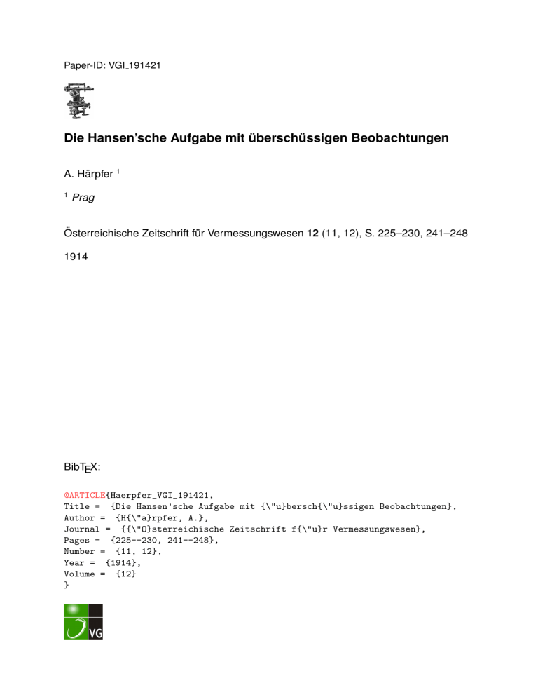 Österreichische Zeitschrift für Vermessungswesen 12 (11, 12), S. 225–230, 241–248