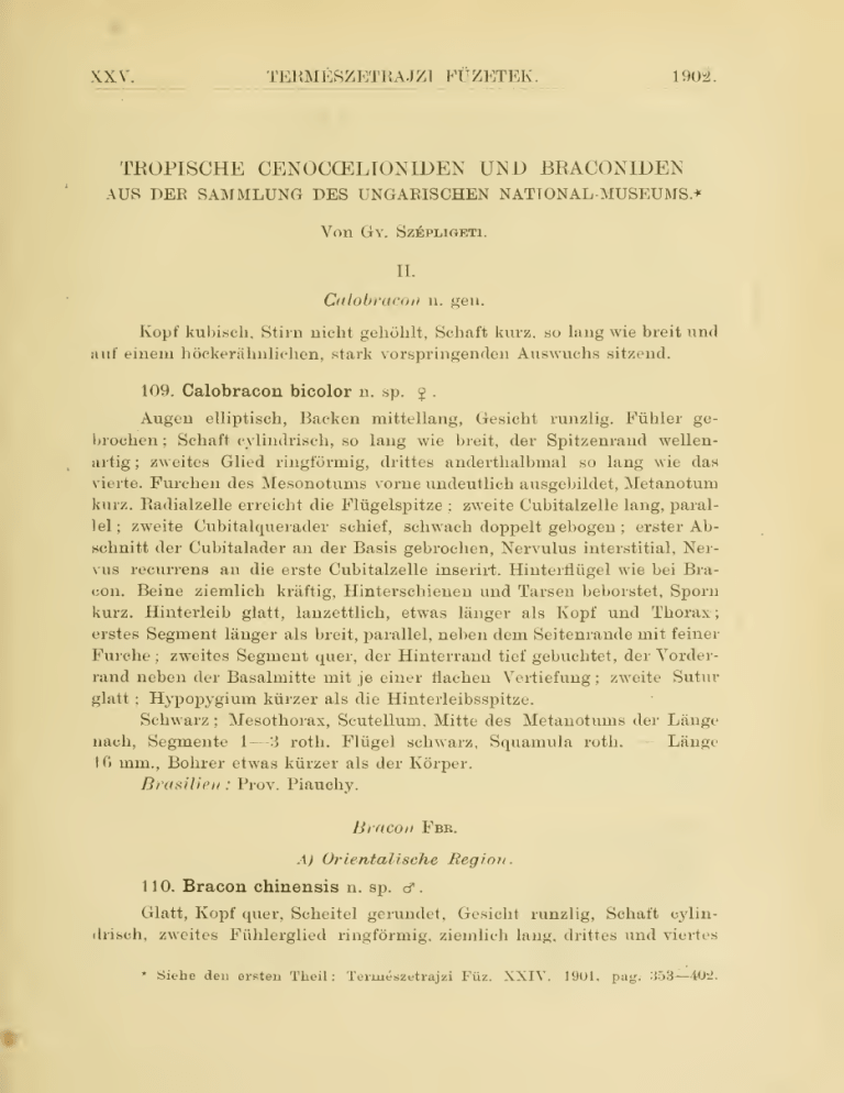 TROPISCHE CENOCŒLIONIDEN UND BRACONIDEN