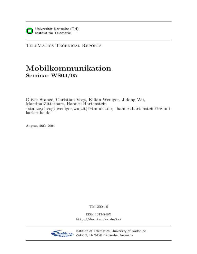 Blockseminars am 09.02.2004 im Institut für Telematik durchgeführt. Die Themen des Seminars stammen aus den Bereichen “Mobile Ad-hoc Netze” und “Mobile IP/TCP”. In diesem