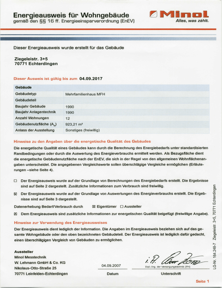 gem~ß den §§ 16 ff. Energieeinsparverordnung
