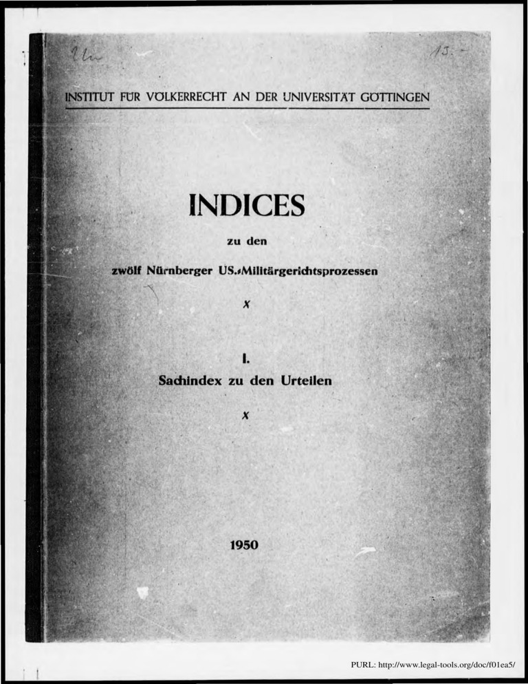 Induetrieprozeese bearbeitet. Ale ereter Index dieeer Gruppe von Verfahren wird im Jahr 1955 ein Personen-, Sachund Dokumentenindex zum Prozea gegen Flick erscheinen.