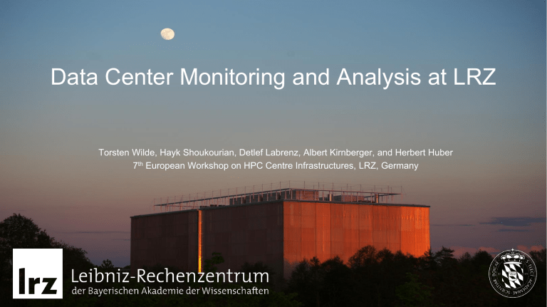 Data Center Monitoring and Analysis at LRZ Torsten Wilde, Hayk Shoukourian, Detlef Labrenz, Albert Kirnberger, and Herbert Huber 7th European Workshop on HPC Centre Infrastructures, LRZ, Germany The Leibniz Supercomputing Centre Torsten Wilde (LRZ), 7th European Workshop on HPC Centre Infrastructures 2016 2 Scientific Computing at LRZ http://www.lrz.de/services/compute/supermuc/magazinesbooks/2014_SuperMUC-Results-Reports.pdf http://www.gauss-centre.eu/gauss-centre/EN/Projects/projects_node.html 3 Motivation: Improve the Energy Efficiency of LRZ Torsten Wilde (LRZ), 7th European Workshop on HPC Centre Infrastructures 2016 4 LRZ Trend of Energy Costs and Energy Consumption from 2000 till 2015 with prediction for 2016 and 2017 8.000.000 € 7.000.000 € 6.000.000 € HPC System 5.000.000 € LRZ Total 4.000.000 € 3.000.000 € Costs for 1kWh: 2000 – 0.07€ 2015 – 0.161€ 2.000.000 € 1.000.000 € 0€ Energy Cnsumption in MWh 50.000 45.000 40.000 35.000 HPC System 30.000 LRZ Total 25.000 20.000 15.000 10.000 5.000 0 Torsten Wilde (LRZ), 7th European Workshop on HPC Centre Infrastructures 2016 5 Where does Our Energy go? • Need to understand each pillar External Influences/Constraints Data Center (Goal: Reduce Total Cost of Ownership) Seasonal support (well, vapor) Neighboring Buildings Cooling towers (dry, wet, hybrid) Water (W1 – W5) Air (18°C – 27°C) Others Network Equipment Compilers Storage (Tape, Drives) Virtualized Systems Cluster Systems HPC Systems Software Stack Programing Models Schedulers Others (DSP, FPGA) Many Core GPU (Nvidia, AMD) CPU/APU (x86, ARM, Power) Utility Providers Reduce Hardware Power Consumption • Need global approach for optimal results • includes utility provider • define operating points Global Optimization Strategy Improve PUE (Power Usage Effectivness) • Optimize and measure (KPIs) for each Optimize Resource Usage Tune System Optimize Performance Pillar 1 Pillar 2 Pillar 3 Pillar 4 Building Infrastructure IT System Hardware System Software Applications • keep infrastructure efficiency constant over the whole operating range • measure and assess Open Access 4 Pillar Framework Paper: http://www.springerlink.com/openurl.asp?genre=article&id=doi:10.1007/s00450-013-0244-6 Torsten Wilde (LRZ), 7th European Workshop on HPC Centre Infrastructures 2016 6 Data Collection Torsten Wilde (LRZ), 7th European Workshop on HPC Centre Infrastructures 2016 7 Current Data Center Monitoring at LRZ Torsten Wilde (LRZ), 7th European Workshop on HPC Centre Infrastructures 2016 8 Data Consolidation Hayk Shoukourian, Torsten Wilde, Axel Auweter, Arndt Bode: “Monitoring Power Data: A first step towards a unified energy efficiency evaluation toolset for HPC data centers” published in Environmental Modelling & Software (Thematic issue on Modelling and evaluating the sustainability of smart solutions), Volume 56, June 2014, Pages 13–26; DOI: http://dx.doi.org/10.1016/j.envsoft.2013.11.011 Torsten Wilde (LRZ), 7th European Workshop on HPC Centre Infrastructures 2016 9 Monitored Systems Data Center (Goal: Reduce Total Cost of Ownership) Clustware iCinga CooLMUC 2 CooLMUC WinCC Johnson Controls SuperMUC Phase1 & 2 IPMI Slurm LoadLeveler Climate / Weather Neighboring Buildings External Influences/Constraints Utility Providers PowerDAM V2.X Pillar 1 Pillar 2 Pillar 3 Building Infrastructure IT System Hardware System Software Torsten Wilde (LRZ), 7th European Workshop on HPC Centre Infrastructures 2016 Pillar 4 Applications 10 Data Design Root Resource (System) Systems Rack PowerDAM internal API: Circuit Sensors ๐น๐๐๐๐น๐๐๐๐๐๐๐(. ๐น๐๐๐๐๐๐๐) ∗ _๐บ๐๐๐๐๐๐ป๐๐๐ = ๐ฝ๐๐๐๐; ๐ป๐๐๐๐๐๐๐๐ PowerDAM sensor name: Node 1 Sensors Node 1 Device Sensors Sensors ๐น๐๐๐๐น๐๐๐๐๐๐๐(. ๐น๐๐๐๐๐๐๐) ∗ _๐บ๐๐๐๐๐๐ป๐๐๐ Data Storage (currently SQL Table) Torsten Wilde (LRZ), 7th European Workshop on HPC Centre Infrastructures 2016 11 Collect only specific Sensors 1. 2. 3. 4. Agent Registration with PowerDAM ๏ง Generate XML file of all available sensors File with sensors and/or sensor roots to activate Activate sensors Collection uses only activated sensors in XML file ๏ง XML file can be updated, new sensor will be added, removed sensors will be marked as inactive ๏ง Can add additional properties (for example, valid range) Torsten Wilde (LRZ), 7th European Workshop on HPC Centre Infrastructures 2016 12 Fun With Sensor Names PowerDAM API: ๐น๐๐๐๐น๐๐๐๐๐๐๐(. ๐น๐๐๐๐๐๐๐) ∗ _๐บ๐๐๐๐๐๐ป๐๐๐ = ๐ฝ๐๐๐๐; ๐ป๐๐๐๐๐๐๐๐ ๏ฎ • • ๏ฎ • • jci.IUGSS41.EZ04_MW__PE_power IUGSS_41EZ__PEMW04 @JCSQL:NAE054-01:NAE054-01/N2 Trunk1. NAE054MIG136.IUGSS_41EZ__PEMW04.Present Value WinCC: Names relate to individual circuit names without any regard to possible structure Use of German Umlauts Torsten Wilde (LRZ), 7th European Workshop on HPC Centre Infrastructures 2016 13 Current Status Torsten Wilde (LRZ), 7th European Workshop on HPC Centre Infrastructures 2016 14 Data Collection using PowerDAM ๏ง Collection via: Pulling, Publish – Subscribe (test phase) ๏ง Import options: SQL, CSV, SSH-script ๏ง Collection interval 1min, Backfilling (for specific sensors, timeframe) ๏ง Export options: Report plug-ins; CSV file export; XLSX file export Torsten Wilde (LRZ), 7th European Workshop on HPC Centre Infrastructures 2016 15 LRZ PUE and SuperMUC System PUE Torsten Wilde (LRZ), 7th European Workshop on HPC Centre Infrastructures 2016 16 Lightweight Adaptive Consumption Prediction (LACP) Application identifier Number of resources CPU frequency of the resources (1) (3) (3) Monitoring tool (3) (2) Available application relevant history data [1] Hayk Shoukourian, Torsten Wilde, Axel Auweter, and Arndt Bode. Predicting the En
