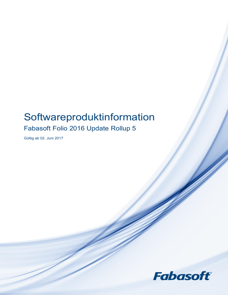 Softwareproduktinformation Fabasoft Folio 2016 Update Rollup 5 Gültig ab 02. Juni 2017 Copyright © Fabasoft R&D GmbH, A-4020 Linz, 2017. Alle Rechte vorbehalten. Alle verwendeten Hard- und Softwarenamen sind Handelsnamen und/oder Marken der jeweiligen Hersteller. Durch die Übermittlung und Präsentation dieser Unterlagen alleine werden keine Rechte an unserer Software, an unseren Dienstleistungen und Dienstleistungsresultaten oder sonstigen geschützten Rechten begründet. Aus Gründen der einfacheren Lesbarkeit wird auf die geschlechtsspezifische Differenzierung, z. B. Benutzer/innen, verzichtet. Entsprechende Begriffe gelten im Sinne der Gleichbehandlung grundsätzlich für beide Geschlechter. Fabasoft Folio 2016 Update Rollup 5 2 Inhalt 1 Fabasoft Folio _________________________________________________________________ 6 1.1 Produkt-Editionen ___________________________________________________________ 6 1.1.1 Fabasoft Folio Enterprise __________________________________________________ 6 1.1.2 Fabasoft Folio Compliance _________________________________________________ 6 1.1.3 Fabasoft Folio Governance _________________________________________________ 7 1.2 Produktleistungsumfang ______________________________________________________ 7 1.3 Produktlieferumfang __________________________________________________________ 7 2 Leistungsumfang aus Anwendersicht _____________________________________________ 8 2.1 Webbenutzeroberfläche_______________________________________________________ 8 2.1.1 Bedienung im Webbrowser _________________________________________________ 8 2.1.2 Zugriff über Webordner (WebDAV) __________________________________________ 11 2.1.3 Arbeiten mit Objekten ____________________________________________________ 12 2.1.4 Ausführen von Use-Cases (Anwendungsfälle) _________________________________ 13 2.1.5 Sicherheit und Zugriffskontrolle ____________________________________________ 13 2.2 Enterprise-Content-Management ______________________________________________ 14 2.2.1 Aufbewahren von Unterlagen ______________________________________________ 14 2.2.2 Dokumentenmanagement _________________________________________________ 15 2.2.3 SAP-Archivierung _______________________________________________________ 21 2.2.4 Scannen und Document-Imaging ___________________________________________ 22 2.2.5 Suche ________________________________________________________________ 23 2.2.6 Versionierung __________________________________________________________ 24 2.2.7 Digital-Asset-Management ________________________________________________ 25 2.2.8 Synchronisierung _______________________________________________________ 28 2.3 Collaboration ______________________________________________________________ 28 2.3.1 Teamroom _____________________________________________________________ 29 2.3.2 Fabasoft Folio Portlet ____________________________________________________ 29 2.3.3 RSS-Feeds ____________________________________________________________ 29 2.3.4 Kontaktmanagement _____________________________________________________ 30 2.4 Agile Geschäftsprozesse _____________________________________________________ 31 2.4.1 Arbeitsvorrat (To-do-Liste) ________________________________________________ 31 2.4.2 Unterschriften __________________________________________________________ 32 2.4.3 Ad-hoc-Workflow ________________________________________________________ 32 2.4.4 Vordefinierte Prozesse ___________________________________________________ 33 2.4.5 Vordefinierte BPMN-Prozesse _____________________________________________ 34 2.4.6 Workflow-Konnektoren ___________________________________________________ 35 2.4.7 Prozessablage _________________________________________________________ 35 Fabasoft Folio 2016 Update Rollup 5 3 2.4.8 Portalbasierte elektronische Formulare ______________________________________ 36 2.5 Compliance-Management ____________________________________________________ 37 2.5.1 Compliance-Management _________________________________________________ 37 2.5.2 Revisionssichere Archivierung _____________________________________________ 39 2.6 Governance _______________________________________________________________ 40 2.7 Enterprise-Search __________________________________________________________ 42 3 Schnittstellen und Entwicklung _________________________________________________ 43 3.1 Softwarearchitektur _________________________________________________________ 43 3.1.1 Open-Source-Softwarebibliotheken _________________________________________ 44 3.2 Composite-Content-Applications mit Fabasoft app.ducx ____________________________ 44 3.3 Erweiterungen mithilfe von Formularen __________________________________________ 44 3.4 Fabasoft app.test ___________________________________________________________ 44 3.5 Webservice-Schnittstellen ____________________________________________________ 45 4 Installation und Betrieb ________________________________________________________ 46 4.1 Fabasoft-Referenzarchitektur _________________________________________________ 46 4.1.1 Begriffsdefinition ________________________________________________________ 46 4.2 Fabasoft Folio Mandanten ____________________________________________________ 48 4.3 Einsatzbedingungen ________________________________________________________ 48 4.4 Unterstützte Plattformen („Microsoft Windows“-Systemumgebung) ____________________ 48 4.4.1 Fabasoft Folio Management _______________________________________________ 48 4.4.2 Fabasoft Folio Backendservices ____________________________________________ 49 4.4.3 Fabasoft Folio Webservices _______________________________________________ 51 4.4.4 Fabasoft Folio Konvertierungsservices _______________________________________ 51 4.4.5 Fabasoft Folio AT-Services ________________________________________________ 51 4.4.6 Fabasoft iArchiveLink-Services _____________________________________________ 52 4.4.7 Fabasoft iArchive ___________________________________________________