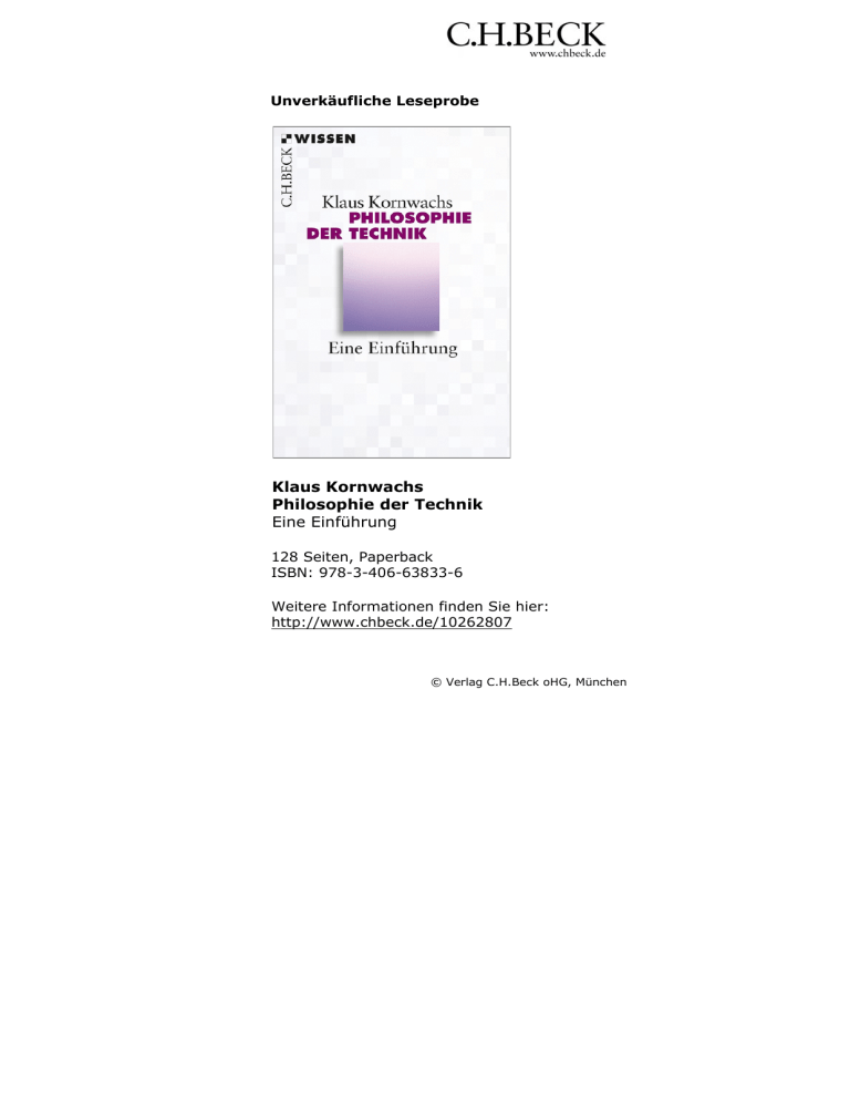 Unverkäufliche Leseprobe Klaus Kornwachs Philosophie der Technik Eine Einführung 128 Seiten, Paperback ISBN: 978-3-406-63833-6 Weitere Informationen finden Sie hier: http://www.chbeck.de/10262807 © Verlag C.H.Beck oHG, München 1. Technik – fragwürdig und merkwürdig Philosophie beginnt und endet mit hartnäckigen Fragen Meist stellt sich später heraus, dass man früher hätte fragen sollen. Während diese Zeilen geschrieben wurden, barsten nach einem Jahrtausendbeben und einem darauffolgenden Tsunami drei Meiler in der japanischen Nuklearanlage Fukushima – die neue Chiffre für unbeherrschbare Technik nach Tschernobyl. Die Fragen werden lauter: Fragen nach Verantwortung, Komplexität, Nachhaltigkeit, Folgen, nach Fortschritt, Segen und Verhängnis von Technik. Martin Heidegger meinte ganz lapidar, es sei gerade das Unheimliche an der Technik, dass sie funktioniere.4 Wir erleben Technik meist unbewusst, sie ist oft unsichtbar, sie funktioniert fast selbstverständlich. Wir halten sie für eine Errungenschaft der Naturwissenschaft und der Zivilisation und beginnen unsere Fragen erst zu stellen, wenn sie eben nicht oder nicht mehr funktioniert. Dabei stellen wir fest, dass wir meist gar nicht wissen, wie und warum Technik funktioniert, wer sie in die Welt gestellt hat, wer damit etwas vorhat und wer damit welche Interessen verfolgt. Und wir stellen auch fest, dass Technik, so gut sie gemeint sein mag, zuweilen gar nicht funktioniert, weil das, was sie zum Funktionieren braucht, gar nicht gegeben ist. Dieses Etwas ist in unserem vorläufigen Verständnis nichts Technisches, sondern eher etwas Organisatorisches: Die Stromrechnung muss bezahlt sein, sonst laufen Kühlschrank und Waschmaschine nicht. Die Straßenverkehrsordnung muss erlassen, der Straßenbau organisiert, die Versorgung mit Öl sichergestellt sein. Reparatur- und Ersatzteilservice müssen klappen, sonst ist unser Auto nur ein hübscher Haufen aus Blech, Elektronik, Gummi und Glas, das nicht mehr von A nach B fahren kann. Die Selbstverständlichkeit von Technik und ihre weitgehende Unsichtbarkeit macht sie bei Fachleuten und Benutzern glei- Das Staunen über Technik 11 chermaßen fraglos – warum soll man fragen, warum etwas funktioniert, wenn es funktioniert? Das könnte den Verdacht aufkommen lassen, dass philosophische Fragen nach der Technik erst dann auftauchen, wenn sie scheitert. Dann wäre das Problem der Technik lediglich das Problem, das wir mit schlechter Technik haben. Die Philosophie ist aber kein Reparaturbetrieb, sie versteht sich eher als präventive begriffliche Instandhaltung, um es technisch auszudrücken. Der Philosophie geht es, wenn sie nach der Technik fragt, um das Verstehen der Technik, um ihre Deutung und um die Bedingungen der Möglichkeit gelingender wie scheiternder Technik. Abgesehen vom Begriff der Technik selbst, der alles andere als eindeutig ist, liegt die Grundfrage nach der Technik auf der Hand. Es ist das Verhältnis von Theorie und Praxis, von Natur und den menschlichen Handlungsmöglichkeiten in ihr, und es ist die Frage, ob ein Verständnis des Menschen nicht erst durch die Möglichkeiten seines technischen Handelns denkbar wird. Das Staunen über Technik wird von gemischten Gefühlen und merkwürdigen Empfindungen begleitet Im Mittelalter hatten Roger Bacon (1214–1292) und später in der Renaissance Francis Bacon (1561–1626) erhebliche Mühe, ihren Zeitgenossen zu erklären, dass Maschinen, die aufgrund von Naturerkenntnissen gebaut wurden, nichts mit Magie zu tun hätten, sondern erst ein geduldiges Hören auf die Natur den Menschen dazu befähige, die Natur nach seinem Willen zu zwingen, d. h., ihm dienstbar zu sein. Neue Geräte werden bestaunt. Früher drückte man sich die Nase am Schaufenster des Radiogeschäftes oder des Automobilverkäufers platt, heute genießt man das Product Placement oder die Promotion Show neuester Produkte. Die Gefühle sind dennoch zwiespältig: Der Faszination des Neuen folgt in der Regel die Gewöhnung, die so weit geht, dass wir das Technische gar nicht mehr als das Technische wahrnehmen. Aber es gibt auch die Faszination des Grauens und des Erschreckens: In den 1950er Jahren waren die meisten Menschen zugleich fasziniert 12 Technik – fragwürdig und merkwürdig und erschreckt von der Atombombe; sie waren begeistert von der friedlichen Nutzung der Atomkraft, doch dann nannte man sie alsbald einen sanften Mörder.5 Einige von uns mögen sich zuerst gegen den Siegeszug des Computers quer durch den Betrieb, dann in den Haushalt gewehrt haben. Das Mobiltelefon wird als Segen und Fluch gesehen – jeder möchte eben kommunizieren und dennoch toben Glaubenskriege z. B. um den Elektrosmog. Dieser Zwiespalt betrifft nicht nur die Gesellschaft und ruft bei fast jeder Technik Proponenten und Opponenten auf den Plan, sondern er ist bei jedem Einzelnen, also auch in unserem eigenen Bewusstsein, zu finden. Eben dieser Zwiespalt ist in der Tat fragwürdig, also des Nachfragens würdig. Doch welche Fragen stellen sich, wenn wir, je nach Situation, Kultur, Mentalität und vor allem je nach Technikbereichen, völlig unterschiedlich reagieren? Wir zeigen, je nachdem, einmal Angst, einmal Faszination, einmal Protest, einmal Gleichgültigkeit, einmal Ablehnung oder auch einmal Konsumwut. Es geht hier nicht um Meinungs- und Einstellungsforschung, es geht darum, dass uns Technik etwas ausmacht – etwas, das wir doch hervorgebracht haben, das wir erfunden haben, das wir gebaut und organisiert haben und womit manche seit geraumer Zeit nicht mehr ganz zurechtkommen. Merkwürdige Gefühle und zwiespältige Haltungen zeigen meist an, dass sich ein Problem da verbirgt, wo wir es nicht zu sehen gewohnt sind oder nicht vermuten. Was soll an Technik problematisch sein? Entweder sie funktioniert, dann ist sie brauchbar, oder sie funktioniert nicht, dann ist sie nicht brauchbar – der Konsument oder Benutzer lässt dann eben die Finger davon und schickt die Hersteller 