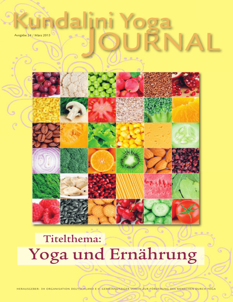 Kundalini Yoga Ausgabe 24 / März 2015 JOURNAL Titelthema: Yoga und Ernährung H E R A U S G E B E R : 3 H O RG A N I S AT I O N D E U T S C H L A N D E . V. G E M E I N N Ü T Z I G E R V E R E I N Z U R F Ö R D E R U N G D E S M E N S C H E N D U RC H YO G A 2 / Kundalini Yoga Journal Editorial liebe Yogalehrerinnen und Yogalehrer und Freunde des Kundalini Yoga, guten Appetit! Das Heft, das ihr in eurem Briefkasten vorgefunden habt, ist das leckerste Kundalini Yoga Journal, das es jemals gegeben hat. (Fast) alles in dieser Ausgabe dreht sich um „Yoga und Ernährung“. Und entgegen anderslautenden Behauptungen und nicht-yogischen Vorurteilen muss gesunde Ernährung von Yogalehrern und –praktizierenden nicht freudlos-asketisch sein. Dennoch gehören Bewusstwerdung und ein gewisser Verzicht auf Ungesundes dazu – doch das ist ein Prozess, der sich eigentlich ganz natürlich auf dem Yogaweg ergibt. In meiner Kindheit gehörten Fleisch und Wurst ganz selbstverständlich dazu, ebenso Milchprodukte und Süßigkeiten. Ich aß, was man mir anbot - siehe auch den Artikel „Kinder lieben (süßes) Essen“ von Sat Hari Kaur – und hatte dennoch nie Gewichts- oder Gesundheitsprobleme. Ich kannte es nicht anders, denn meine Großeltern, die nebenan wohnten, hatten eine Schlachterei und mein Großvater brachte uns täglich eine in rosa Papier verpackte Auswahl seiner „Erzeugnisse“ vorbei. Für mein Leben gern aß ich Rinderfilet – gab es „nur“ mal Rumpsteak, so rümpfte ich mit meinen acht Jahren die Nase. Bis ich mit 20 Jahren von zuhause auszog, war meine normale Ernährungsweise fleischlastig, wenngleich ich als Teenager allmählich immer weniger davon aß. Schon damals las ich Bücher über Yoga und hinterfragte unsere Ernährung, sehr zum Unverständnis von Eltern und Großeltern, an deren Kühlschränken Aufkleber prangten wie „Fleisch ist ein Stück Lebenskraft“. Heute ist das alles weit weg. Ich lebe yogisch-vegetarisch, jedoch nicht missionarisch – ich versuche niemanden in meiner Familie zu überzeugen, es mir gleichzutun. Meine Großeltern leben schon lange nicht mehr, meine Eltern essen inzwischen selbst wenig Fleisch, mein Mann und meine Kinder, 17 und 22 Jahre alt, ebenso. Es gibt ja genügend Restaurants … Das, was ich für sie koche, mögen sie dennoch, meine (allerdings obst-dominierten) grünen Smoothies ebenso. Mein Repertoire könnte ich gewiss noch erweitern, gerade die ayurvedischen, veganen und yogischen Rezepte, die es in diesem Heft gibt, finde ich sehr reizvoll … Dank vieler Experten auf dem Gebiet der Ernährung enthält das Frühlingsjournal eine Fülle an Informationen. Ein großer Dank gilt mal wieder Manuela Devinderpal Kaur, die Dharamleen Kaur Kerstin Ostendorp, Ayurveda-Expertin und Yogalehrerin, interviewt hat. Ebenso sehr freue ich mich über die beiden Artikel von Anja Lührs, die ein fundiertes Plädoyer für eine (vorwiegend) vegane Ernährung hält, sowie die Frage beantwortet: „Kann Essen heilen?“ Interessant ist der Selbsterfahrungsbericht von Gurupal Singh Dreyer, der „Die Vitamin B12-Problematik“ beleuchtet. Ein Experte ist auch Hari Jiwan Singh Wesselhöft, der sich über „Yogische Ernährung und Entgiftung im Wassermannzeitalter“ auslässt. Simone Palmié bringt uns die Grundlagen der ayurvedischen Ernährungslehre näher, über Yogi Bhajans Kräuterkunde berichtet Fateh Singh Becker, und Yogi Satya verrät uns, welche die drei wichtigsten Nahrungsmittel aus yogischer Sicht sind. Was Frauen in der Prämenopause und in der Menopause wirklich nährt, erklärt Anand Kaur Seitz. Geraldine Mottschall-Weber nimmt Schwangeren die Angst vor rein vegetarischer Ernährung, Angelina Beant Kaur meint „Du bist, was du isst“ und Sophie Forkel, die dankenswerterweise auch zwei Artikel übersetzt hat, plaudert aus dem Nähkästchen: „Von Mungbohnen, Schokoriegeln und Gedankennahrung“. Was „Alen“ ist, verrät uns Guru Dev Singh Werner Hoffmann (ich habe es in meinen Speiseplan integriert …). Nadja Deva Kaur Lehmann nimmt den „Allergoyogi“ unter die Lupe und erinnert an Guru Nanaks Mahnung, dass diejenigen, die über Ernährung streiten, Narren sind, widmen sie doch ihre kostbare Lebenszeit körperlichen, und damit vergänglichen Themen, anstatt sich mit ihrer Seele zu befassen. Das sollten wir uns tatsächlich zu Herzen nehmen! Tolle Rezepte gibt es zuhauf: Elektrolytdrink aus natürlichen Zutaten, Smoothies aus den klassischen grünen Zutaten, Linsen-Burger - mehr gibt es auf unserer Webseite. Auf der Serviceseite gibt es die „Bhoj Kriya“, dazu einen leckeren Buchtipp und einen nicht minder wohlschmeckenden CDTipp. Weitere interessante Artikel, die sich nicht um Ernährung drehen, runden das Heft ab! Ich wünsche euch, dass ihr auf den Geschmack kommt, das Heft genießt und einen schönen Frühling habt eure Kerstin Ravi Kirn Kaur. Kundalini Yoga Journal / 3 INHALT Editorial........................................................................3 Titelthema: Yoga und Ernährung Plädoyer für (eine vorwiegend) vegane Ernährung....................................................................5 Kann Essen heilen?........................................... ........7 Warum vegan?.............................................................7 Was uns wirklich nährt.............................................8 Die Vitamin B12-Problematik................................9 Grundlage der ayurvedischen Ernährungslehre......................................................10 Köstliches Winter-Ingwergetränk........................11 Yogische Ernährung und Entgiftung im Wassermannzeitalter........................................12 Kinder lieben (süßes!) Essen................................ 13 Yogi Bhajans Kräuterkunde und Tee................. 14 Vegetarische Ernährung in der Schwangerschaft......................................................15 Allergo-yogisch?.................................................