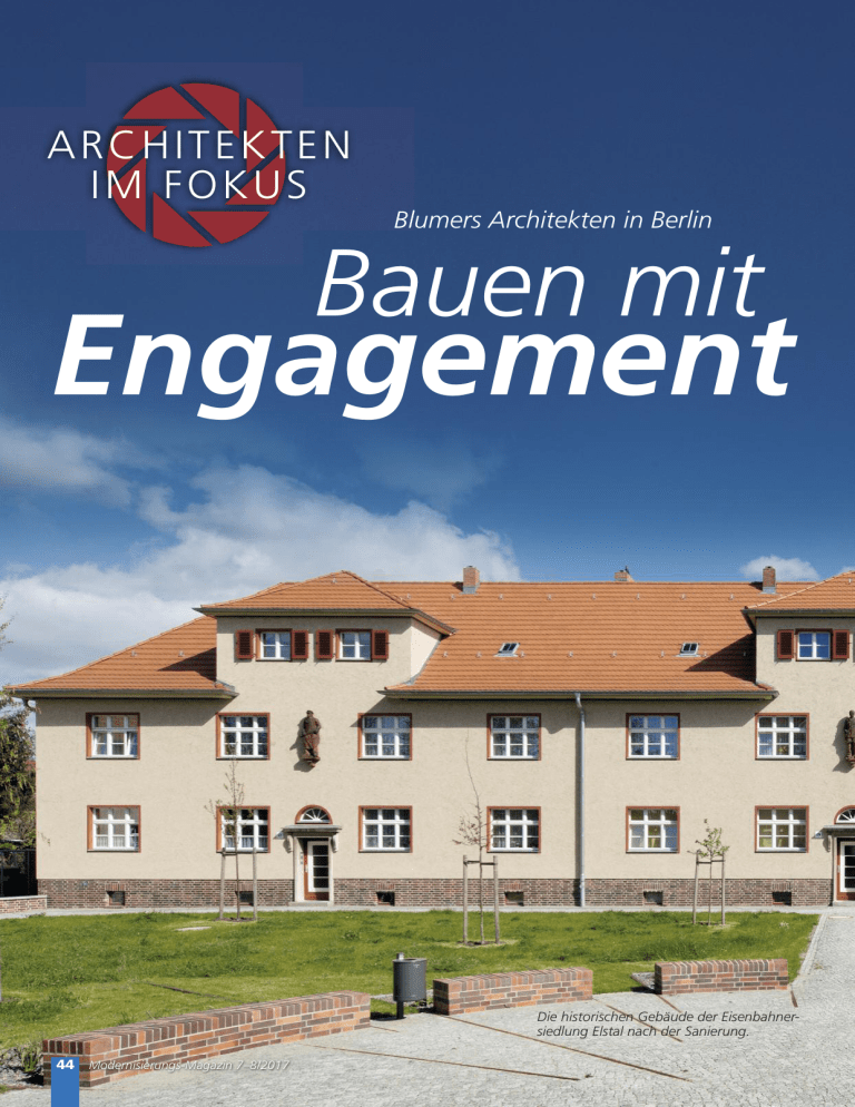 ARC HITEK TEN I M F OK U S Blumers Architekten in Berlin Bauen mit Engagement Die historischen Gebäude der Eisenbahnersiedlung Elstal nach der Sanierung. 44 Modernisierungs-Magazin 7–8/2017 BLUMERS ARCHITEKTEN AR C HITEK TU R Neben unterschiedlichsten Bauherren und Projekten gehören vor allem Wohnungsbauunternehmen zu den Auftraggebern von Blumers Architekten. Zahlreiche Konzepte und Entwürfe zur Bestandssanierung und -erweiterung im großvolumigen Wohnungsbau haben die Berliner Architekten bisher entwickelt und umgesetzt. Büroentwicklung Vier Partner stehen an der Spitze von Blumers Architekten: Sven Blumers, Sven Nol- Eisenbahnersiedlung Elstal: Zustand der Gebäude vor der Sanierung. te, Gerhard Kruschhausen und Michael Koehntopp. Während ihres Architekturstudiums lernten sich Sven Blumers und Gerhard Kruschhausen kennen. Im Rahmen ihrer späteren Tätigkeit in einem Architekturbüro trafen sie auf Sven Nolte. Gemeinsam führten sie verschiedene Projekte durch. Das Architekten-Trio gründete 1998 schließlich ein eigenes Büro in Berlin: Blumers Architekten. Da Sven Blumers von Anfang an das Unternehmen vorrangig nach außen repräsentierte, war er auch der Namensgeber. Im Jahr 2000 begann Michael Koehntopp als studentischer Praktikant bei Blumers Architekten. Seit 2016 ist er zusammen mit Blumers, Nolte und Kruschhausen Gesellschafter der Blumers Architekten Generalplanung und Baumanagement GmbH. Eines der ersten großen Projekte war die Erweiterung und Fassadensanierung der Spanischen Botschaft in Berlin 1999 bis 2000. Nach Abschluss des Projektes expandierte das Unternehmen zusehends. Mittlerweile besteht es aus vierzig kompetenten u ANJA STEINMANN Alles aus einer Hand bietet das Berliner Büro Blumers Architekten: Von der Idee bis zur Schlüsselübergabe reicht das Leistungsspektrum des kreativen Teams. Ein Schwerpunkt der Arbeit liegt im Bereich des Geschosswohnungsbaus, sowohl in der Modernisierung als auch im Neubau. Modernisierungs-Magazin 7–8/2017 45 BLUMERS ARCHITEKTEN A R CH ITE KT U R Projekt Kurfürstenstraße in Berlin-Mariendorf: im Vordergrund der sanierte Bestand, dahinter die drei Neubauten mit sechzig Wohneinheiten. und verantwortungsbewussten Mitarbeitern, die im Team bauliche Lösungen für alle Fälle entwickeln. Philosophie Kreativität, Engagement und Kommunikation – das sind die drei Säulen, auf die sich die Philosophie von Blumers Architekten stützt. „Bei uns steht Kreativität für den innovativen Umgang mit erworbenen Fähigkeiten“, so Sven Blumers. Sie komme überall dort zum Tragen, wo es darum gehe, neue Wege, Lösungen oder Ideen zu finden, um komplizierte Bauaufgaben mit einem hohen Anspruch an Gestaltung und Funktionalität zu lösen. Dank ihres Knowhows und ihrer Erfahrung wissen die Berliner Architekten Ideen baulich sicher umzusetzen. Als besondere Eigenschaften des Berliner Büros sieht Sven Blumers den Einsatz und die Leidenschaft des gesamten Teams: „Unser Engagement endet nicht mit den Bürozeiten oder der reinen Architektenleistung.“ Als Partner versprechen die Architekten, ihren Kunden dauerhaft und verlässlich zur Seite stehen. Dabei spiele Kommunikation eine entscheidende Rolle. Grundlage für eine vertrauensvolle Zusammenarbeit zwischen Planer und Bauherr ist für Blumers Architekten die gemeinsame Formulierung klarer Ziele, eine offene Kommunikation in allen Phasen der Zusammenarbeit und der Wille aller Projektbeteiligten zum Erfolg. Wettbewerbe Architekturwettbewerbe bedeuten Chance und unternehmerisches Risiko zugleich. „Die Kosten liegen je nach Projektgröße in der Regel zwischen 15.000 und 60.000 Euro“, sagt Sven Blumers. Doch die regelmäßige Teilnahme von Blumers Architekten an ausgewählten, vornehmlich eingeladenen Wettbewerben zahlt sich aus. Die hohe Erfolgsquote stellt immer wieder die Kreativität und das Können der Architekten unter Beweis. Nicht selten folgt einem Preis auch die Realisierung des Wettbewerbsprojektes. In diesem Jahr gewann Blumers Architekten bisher zwei Wettbewerbe, die beide zum Ziel hatten, optimale bauliche Lösungen für Projekte von Wohnungsbaugenossenschaften hervorzubringen. Daraus gingen die Entwürfe für die Massower Straße in Berlin-Lichtenberg und den Waidmannsluster Damm in Berlin-Reinickendorf hervor. Beide Wohnungsbauprojekte BLUMERS ARCHITEKTEN Dachgeschossausbau des Altbaus in der Kurfürstenstraße, Berlin-Mariendorf. 46 Modernisierungs-Magazin 7–8/2017 AR C HI TEK TUR werden realisiert und befinden sich aktuell in der Planungsphase. Im Jahr 2019 sollen sie fertiggestellt werden. Leistungen Mit Schwerpunkt Berlin realisiert das Büro Blumers Architekten deutschlandweit Projekte in allen Leistungsphasen gemäß der Honorarordnung für Architekten und Ingenieure. Zu den Auftraggebern zählen neben privaten und öffentlichen Bauherren vor allem Wohnungsbauunternehmen. Das vielseitige Portfolio der Berliner Architekten zeigt die große Bandbreite der bisher umgesetzten Projekte, von städtebaulichen Planungen über repräsentativen Büro- und Gewerbebau bis hin zu öffentlichen Gebäuden sowie individuellem und hochwertigem Wohnungsbau. Für Wohnungsbauunternehmen besonders interessant: Blumers Architekten bietet die fortlaufende Betreuung von Bestandsimmobilien und Liegenschaften sowie kosten- und bestandsbewertende Beratungsleistungen. Ein weiterer Schwerpunkt liegt im Risiko- und Vertragsmanagement. Denkmalgerechtes Sanierungsprojekt Großes Fingerspitzengefühl im Umgang mit historischer Bausubstanz bewies das Team bei der Sanierung der denkmalgeschützten Eisenbahnersiedlung im Ortsteil Elstal der Gemeinde Wustermark nahe der Bundeshauptstadt Berlin. Einst dem Verfall preisgegeben, bietet das baugeschichtlich bedeutsame Wohnungsbau-Ensemble heute zeitgemäßen, nachhaltigen Wohnund Lebensraum in einem unverwechselbaren Ambiente. Die Siedlung, deren städtebauliche Struktur dem Konzept der Gartenstadt folgt, wurde in den 1920 bis 1930er Jahren für Mitarbeit