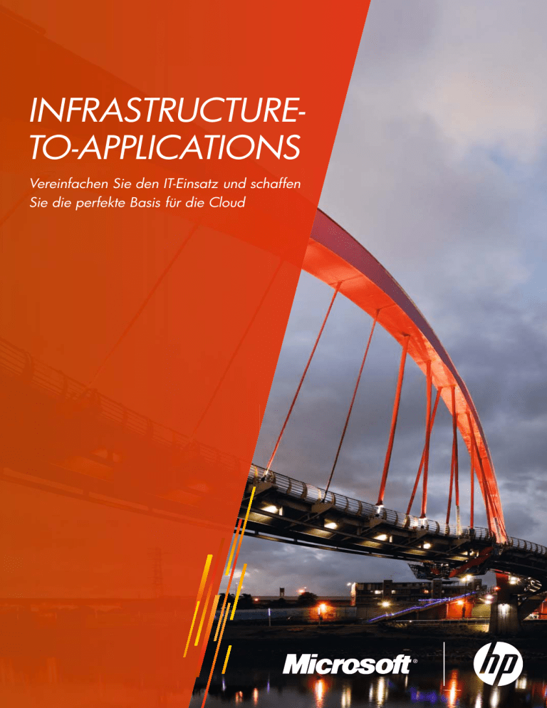 INFRASTRUCTURETO-APPLICATIONS Vereinfachen Sie den IT-Einsatz und schaffen Sie die perfekte Basis für die Cloud HP Converged Infrastructure beschleunigt die Evolution von HP CloudSystem. HP vereinfacht das Arbeiten in der Cloud und hilft Ihnen, das Potenzial voll auszuschöpfen. Mit HP CloudSystem, das auf der HP Converged Infrastructure basiert, unterstützen wir Sie bei folgenden Schritten: • Wahl des richtigen Cloud-Modells für Ihr Unternehmen – privat, öffentlich oder hybrid • Automatisierung, Koordinierung und Beschleunigung der Implementierung von neuen Anwendungen und Infrastrukturkomponenten • Schaffung eines sicheren, leistungsstarken Fundaments aus bewährten HP Lösungen und Best Practices aus dem Intel® Cloud Builders Programm • Aufbau einer offenen IT-Umgebung, die sich mit Ihrem Unternehmen weiterentwickelt Erfahren Sie, wie HP CloudSystem und das Intel® Cloud Builders Programm Ihnen den Weg zum Cloud Computing ebnen. Starten Sie jetzt! Cloud Computing: Hype oder IT-Plattform der Zukunft? Wir haben die Fakten. Informieren Sie sich über die „Fünf Mythen um die Cloud“ unter hp.com/de/cloud © 2011 Hewlett-Packard Development Company, L.P. Änderungen vorbehalten. Die Garantien für HP Produkte und Services werden ausschließlich in der entsprechenden, zum Produkt oder Service gehörigen Garantieerklärung beschrieben. Aus dem vorliegenden Dokument sind keine weiterreichenden Garantieansprüche abzuleiten. HP übernimmt keine Verantwortung für die Richtigkeit und Vollständigkeit der Angaben in diesem Dokument. Intel und das Intel Logo sind Marken bzw. eingetragene Marken der Intel Corporation oder ihrer Tochterunternehmen in den USA und weiteren Ländern. 2 || Inhalt Infrastructure-to-Applications: So vereinfachen Sie Ihre IT 04 Infrastruktur und Applikationen in einer Lösung – eine Initiative von HP und Microsoft 05 Mit HP und Microsoft in die Private Cloud 06 HP Infrastructure-to-Applications – so vereinfachen Sie Ihre IT 06 HP Infrastructure-to-Applications – Infrastruktur und Applikationen in einer Lösung 07 Schneller in die Private Cloud – HP und Microsoft vereinfachen die Virtualisierung 10 HP VirtualSystem für Microsoft: So schaffen Sie ein agiles Unternehmen 12 Sammeln, auswerten, Informationen gewinnen – Ihr Geschäft stützt sich auf Daten 15 HP E5000 – What’s in the box? 16 HP Messaging Appliance E5000 – die erste integrierte, schlüsselfertige Appliance 18 Schnittstelle zwischen IT und Business – HP Partner ermöglichen Unternehmen den Einstieg in die IT der Zukunft 20 Infrastructure-to-Applications – das neue Lösungsportfolio von HP 22 Zitat von Dave Packard, Mitbegründer von HP, 1957 3 Infrastruktur und Applikationen in einer Lösung – eine Initiative von HP und Microsoft HP und Microsoft haben dafür ein breites Portfolio aus Produkt- und Servicelösungen entwickelt, die Ihrem Unternehmen aufgrund der Abstimmung von Hard- und Software sowie deren gemeinsamer Entwicklung durch HP und Microsoft zahlreiche Vorteile bieten. Volker Smid, Vorsitzender der Geschäftsführung der Hewlett-Packard GmbH Zwei Marktführer setzen neue Maßstäbe: HP ist der weltweit größte TechnologieAnbieter, Microsoft die Nummer eins der Software-Firmen. Unsere langfristige Partnerschaft bauen wir weiter aus, indem wir gemeinsam gezielt in die Vereinfachung von IT-Umgebungen investieren. Der Fokus unserer Infrastructure-to-ApplicationsInitiative, kurz: Infra2Apps, liegt darauf, • die Implementierung von Anwendungen zu beschleunigen, • die Komplexität von ManagementAufgaben zu vereinfachen, • manuelle Prozesse zu automatisieren, • die Gesamtkosten der IT zu senken. 4 Hierzu zählen • Verbesserung der Effizienz, • Verbesserung der Leistung, • Zuverlässigkeit und Verfügbarkeit von Anwendungen, • Verbesserung der Bedienung, • Verbesserung der Sicherheit, • Schutz der Investitionen, • Senkung der Gesamtbetriebskosten. Die meisten Unternehmen stehen einer ausufernden IT und isolierten Infrastruktur gegenüber, die die Implementierung, Wartung und Verwaltung von IT-Services erschweren. Die Probleme insbesondere kleiner und mittlerer Unternehmen (KMU) liegen in kostenintensiven und komplizierten Tools, SANs, Infrastruktur und Software. Große Unternehmen sehen sich damit konfrontiert, durchschnittlich 70 Prozent ihres IT-Budgets für Infrastrukturwartung aufzuwenden. Weitere Probleme der großen Unternehmen betreffen die langsame Geschwindigkeit bei der Einführung von IT-Services aufgrund von Technologiesilos und eine hohe betriebliche Ineffizienz sowie geringe Endbenutzerleistung, da es oft nicht gelingt, Infrastrukturprobleme und Service Level in Übereinstimmung zu bringen. || Private Cloud Mit HP und Microsoft in die Private Cloud Dank der Zusammenarbeit von HP und Microsoft können diese Probleme mit einer schnellen Serviceeinführung behoben werden. Durch die Konsolidierung und gleichzeitige Automatisierung der Verwaltung physischer und virtueller Infrastrukturen und Anwendungen sind wir in der Lage, Ihnen eine hochleistungsfähige Bereitstellungsplattform für Anwendungen zur Verfügung zu stellen. Mit dieser erhalten Sie die Möglichkeit, IT-Services in einer Private Cloud innerhalb von Minuten verfügbar zu machen, Ressourcen effizient zu Pools zusammenzufassen, die Energienutzung zu optimieren, Hochverfügbarkeit sicherzustellen und die Total Cost of Ownership, also die Gesamtbetriebskosten, zu reduzieren. Datenverwaltung und Business Intelligence gehörten 2010 zu den wichtigsten Themen für CIOs*, jedoch ist die Integration, Optimierung und Verwaltung bestehender Lösungen oft aufwendig oder sie sind proprietär und kostenintensiv. Mit dem neuen Portfolio aus Infra2AppsAppliances bieten wir einen neuen Ansatz für Datenverwaltung und Business Intelligence. Wir integrieren jegliche benötigte Hard- und Software in der gewünschten Skalierung mit Lösungen nach Branchenstandards, mit der jeder Informationen sin