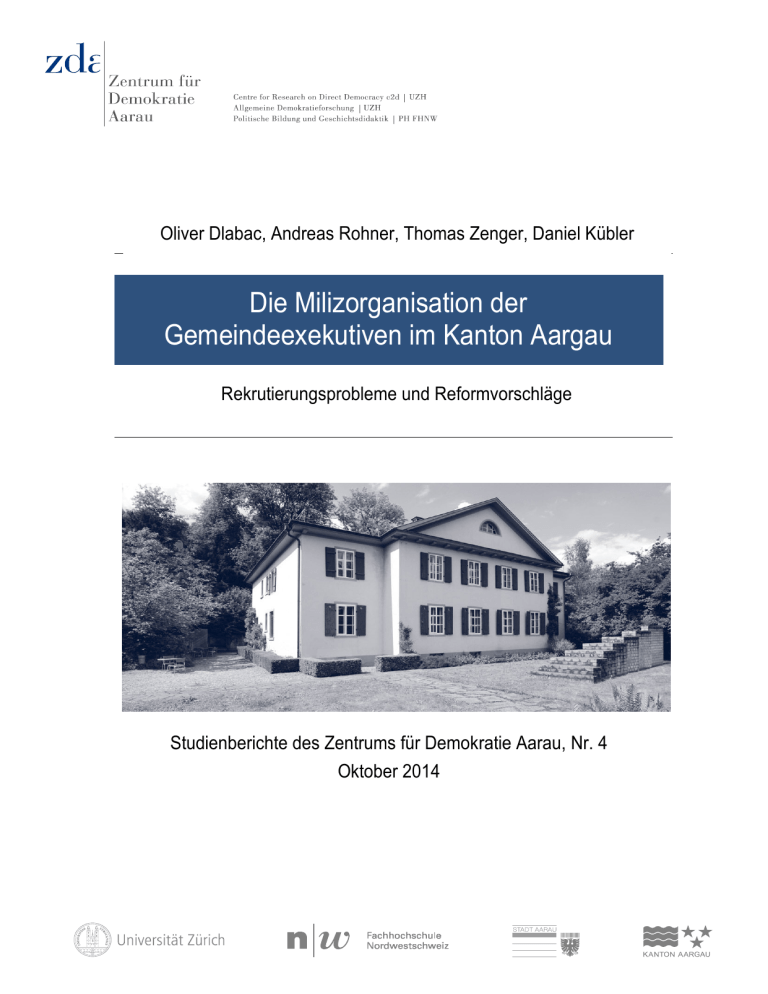 Oliver Dlabac, Andreas Rohner, Thomas Zenger, Daniel Kübler Die Milizorganisation der Gemeindeexekutiven im Kanton Aargau Rekrutierungsprobleme und Reformvorschläge Studienberichte des Zentrums für Demokratie Aarau, Nr. 4 Oktober 2014 Milizorganisation der Gemeindeexekutiven im Kanton Aargau IMPRESSUM Publikationsreihe des Zentrums für Demokratie Aarau (ZDA) Herausgegeben von Andreas Glaser, Daniel Kübler und Béatrice Ziegler ISBN-Nr: 978-3-9524228-3-0 Bezugsadresse: Zentrum für Demokratie Aarau (ZDA) Villa Blumenhalde, Küttigerstrasse 21 CH - 5000 Aarau Telefon: +41 62 836 94 44 E-Mail: [email protected] www.zdaarau.ch © 2014 bei den Autoren 2 Zusammenfassung Auftrag, Ziel und Datengrundlage Im Auftrag des Departements Volkswirtschaft und Inneres des Kantons Aargau sowie der Gemeindeammänner-Vereinigung des Kantons Aargau hat das Zentrum für Demokratie Aarau eine Studie über das Milizsystem der Aargauer Gemeindeexekutiven durchgeführt. Ziel war es, die Probleme bei der Besetzung von Exekutivämtern in den Aargauer Gemeinden zu untersuchen, deren Entwicklung nachzuzeichnen, Gründe dafür zu eruieren, sowie Empfehlungen zu formulieren. Hierzu wurden Wahlprotokolle der letzten drei bis vier Jahrzehnte für insgesamt 126 Gemeinden (59% aller Aargauer Gemeinden) ausgewertet. Zusätzlich wurde eine Befragung der Aargauer Gemeindeschreiber durchgeführt, sowie bestehende Befragungen von Gemeindeschreibern und Exekutivmitgliedern herangezogen. Hauptergebnisse der Studie Anders als in einzelnen Ostschweizer Kantonen oder im Nachbarkanton Luzern gibt es im Kanton Aargau nur vereinzelt haupt- oder teilamtlich tätige Exekutivmitglieder. Rund 85 Prozent der Aargauer Gemeindeexekutiven bestehen ausschliesslich aus nebenamtlichen Mitgliedern. Probleme bei der Rekrutierung von nebenamtlichen Amtsträgerinnen und Amtsträgern treffen das Gemeindesystem des Kantons Aargau somit im Kern. Hinsichtlich der zeitlichen Entwicklung zeigt die Auswertung der Wahlprotokolle, dass: • die Probleme zur Rekrutierung von Kandidatinnen und Kandidaten für Exekutivämter im Kanton Aargau seit den 1970er Jahren zugenommen haben. Besonders verschärft haben sie sich in den periurbanen Gemeinden, den ländlichen Pendlergemeinden und den agrargemischten Gemeinden. • die Zunahme der Rekrutierungsprobleme in diesen Gemeinden weder auf eine gesunkene Amtsdauer, noch auf eine erhöhte Fluktuation zurückgeführt werden kann. Frauen sind allerdings nach wie vor unterrepräsentiert; der Frauenanteil bei den Exekutivmitgliedern beträgt rund ein Viertel und stagniert seit der Jahrtausendwende. Die Auswertung der Daten aus der Exekutivmitgliederbefragung zeigt, dass • sich die Belastung durch ein Exekutivamt je nach Lebensumständen unterscheidet. Ob die Amtsträger die Anforderungen des Amtes mit ihren anderen Aufgaben in Einklang bringen können, hängt auch stark von ihrer Motivation und ihrer Verbundenheit mit der Gemeinde ab. • politische Parteien eine wichtige Rolle spielen bei der Rekrutierung und beim längerfristigen Engagement von Exekutivmitgliedern. Im Kanton Aargau nehmen die Parteien diese Aufgabe aber nur beschränkt wahr. • unterschiedliche Modelle der Milizorganisation sich auf das soziologische Profil der Exekutivmitglieder auswirken. Haupt- und Teilämter scheinen vor allem Staatsangestellte anzuziehen. Nebenämter sind für Unternehmer und Angestellte aus der Privatwirtschaft attraktiver. Milizorganisation der Gemeindeexekutiven im Kanton Aargau 2 Die Analyse der Daten aus der Online-Befragung hat ergeben, dass • die Gemeinden des Kantons Aargau unterschiedliche Modelle der Verwaltungsführung praktizieren. Die Rekrutierungsprobleme scheinen unabhängig vom Verwaltungsmodell zugenommen zu haben. Mit anderen Worten: es ist nicht zu erwarten, dass die zunehmenden Rekrutierungsprobleme allein mit Reformen auf der Ebene der Verwaltungsführung gelöst werden können. Empfehlungen Die zunehmenden Probleme bei der Rekrutierung von geeigneten Personen von Milizämtern stellen das Gemeindesystem des Kantons Aargau vor grosse Herausforderungen. Diesen Problemen ist entgegenzuwirken. Die Ergebnisse der Studie legen nahe, dass mit Reformen der Verwaltungsführung alleine den Rekrutierungsproblemen für Milizämter nicht beizukommen ist. Es sind weitergehende Reformen hinsichtlich der Milizorganisation ins Auge zu fassen. Diese müssen den je nach Gemeinde unterschiedlichen Situationen Rechnung tragen und auch auf die individuellen Bedürfnisse der Amtsträgerinnen und Amtsträger Rücksicht nehmen. Konkret formuliert die vorliegende Studie folgende Empfehlungen: • Die Anstellungs- bzw. Entschädigungsmodelle der Exekutivgremien sollten flexibilisiert werden. Die Kompetenz zur Festlegung des Gesamtumfangs der Ausgaben für Entschädigungen bzw. Entlöhnung der Exekutivmitglieder soll zwar nach wie vor bei der Gemeindeversammlung bzw. beim Gemeindeparlament liegen. Aber innerhalb dieses Rahmens sollen die Gemeindeexekutiven selbst darüber entscheiden, ob ihre Mitglieder im Nebenamt, im Teilamt, oder im Vollamt tätig sind. . • Im interkantonalen Vergleich sind die Entschädigungen für nebenamtliche Exekutivmitglieder in den Aargauer Gemeinden tief. Es sollte eine fundierte Diskussion geführt werden über die angemessene Entschädigung von solchen Milizämtern, welche auch die Belastung in unterschiedlich grossen Gemeinden und unterschiedlich aufwendigeren Ressorts abbildet. Um eine unkoordinierte Entwicklung der Höhe der Entschädigungen zu vermeiden, muss diese Diskussion gemeindeübergreifend geführt werden - also auf Ebene des Kantons. • Milizämter in Gemeindeexekutiven sollten stärker als bisher auch als Gelegenheit zur beruflichen Qualifikation und persönlichen Entwicklung wahrgenommen werden. Kombiniert mit anerkannten Weiterbildungsmöglichkeiten könnten Milizämter in Gemeindeexekutiven für jüngere Personen und Frauen attraktiver gemacht werden. • Lokal verwurzelte politi