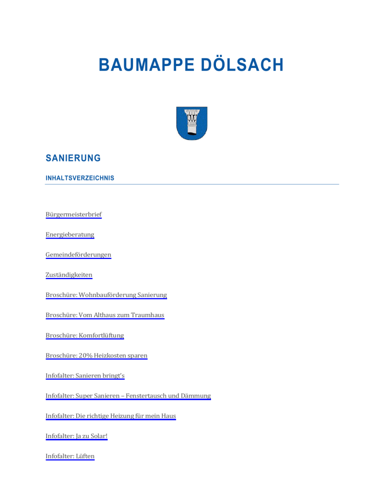 BAUMAPPE DÖLSACH SANIERUNG INHALTSVERZEICHNIS Bürgermeisterbrief Energieberatung Gemeindeförderungen Zuständigkeiten Broschüre: Wohnbauförderung Sanierung Broschüre: Vom Althaus zum Traumhaus Broschüre: Komfortlüftung Broschüre: 20% Heizkosten sparen Infofalter: Sanieren bringt’s Infofalter: Super Sanieren – Fenstertausch und Dämmung Infofalter: Die richtige Heizung für mein Haus Infofalter: Ja zu Solar! Infofalter: Lüften Liebe Bauleute, als Gemeinde freuen wir uns über Ihre Entscheidung, in Ihr Eigenheim zu investieren. Neubau und Sanierung bieten Chancen der Verbesserung hin zu modernen Energiestandards, einen zeitgemäßen Wohnraum zu schaffen und eine architektonische Aufwertung des Wohnraums vorzunehmen. Bauliche Investitionen wollen deshalb gut überlegt sein, sie sollen eine positive und nachhaltige Wirkung auf das Wohlbefinden der Bewohner ausüben und die Erhaltungskosten langfristig leistbar machen. Unter Berücksichtigung des Klimawandels und ständig steigender Energiekosten, ist es uns als e5-Gemeinde ein besonderes Anliegen, Sie über energieeffiziente Planungsansätze, alternative, umweltfreundliche Heizsysteme und Fördermöglichkeiten zu informieren. Wir freuen uns, Ihnen mit dieser Mappe einen ersten Überblick über Ihre Möglichkeiten und das breite Angebot an Unterstützungen zu überreichen. Wir wünschen Ihnen viel Erfolg bei der Planung. Für alle Energiefragen stehen Ihnen die BeraterInnen von Energie Tirol in der Energieberatungsstelle des Regionalmanagements Osttirol zur Verfügung. Sichern Sie sich Ihren Termin für ein kostenloses Beratungsgespräch. Wir verbleiben mit herzlichen Grüßen, Ihre Gemeinde mit Ihrem Bürgerm In Kooperation mit: ENERGIEBERATUNGSSTELLE OSTTIROL Welche Heizung ist die richtige für mein Haus? Wo bekomme ich welche Förderungen? Warum bleibt mein Heizkörper immer kalt? In meinem Haus zieht es – was kann ich tun? Wenn Sie auf solche oder ähnliche Fragen Antworten suchen, dann ist Energie Tirol für Sie da: ganz in Ihrer Nähe. Die EnergieberaterInnen in der Energieberatungsstelle Osttirol sind Ansprechpartner in allen Energiefragen. Ihre unabhängigen EnergieberaterInnen Unsere Energieexperten für Sie. Im RegionsManagement Osttirol stehen sie Ihnen jeden ersten Freitag im Monat zu einem kostenlosen, 45-minütigen Beratungsgespräch zur Verfügung. Wenn möglich bringen Sie Pläne sowie Informationen zu bestehenden und/oder voraussichtlichen Bauteilaufbauten sowie dem Haustechnikkonzept mit. Sichern Sie sich Ihren Termin in der Energieberatungsstelle Osttirol, RegionsManagement, T: 04852/72820-576. Weitere Informationen und die Möglichkeit der Online Anmeldung gibt es auf der Homepage von Energie Tirol unter https://www.energie-tirol.at/beratungsstellen. In Kooperation mit: UNSERE ENERGIE-FÖRDERUNGEN WAS WIRD GEFÖRDERT? VORAUSSETZUNGEN & FÖRDERHÖHE Thermische Solaranlage Die Förderhöhe beträgt je Solaranlage und Wohnung: Kollektorfläche Speicher Förderung Ab 6m² 300l € 220 Ab 10m² 500l € 290 Ab 14m² 800l € 360 16m² (Max.!!) 800l € 440 Photovoltaikanlage Förderhöhe: Je kWp € 75 bei freistehender Anlage bzw. € 100 bei Einbau ins Dach. Elektrofahrräder / Elektromotorrad Pro Fahrzeug werden € 75 gefördert. Die Mitarbeiter im Gemeindeamt stehen Ihnen gerne für weitere Auskünfte zur Verfügung! In Kooperation mit: Stand: Januar 2017 ZUSTÄNDIGKEITEN UND ANSPRECHPARTNER GEMEINDEAMT Telefon: +43 (0)4852 64333 Email: [email protected] Internet: www.doelsach.at Amtszeiten: Mo – Do: 8.00 – 12.00 Uhr und 13.00 – 17.00 Uhr Fr: 8.00 – 12.00 Uhr Bauangelegenheiten: Josef Steiner T: +43 (0)4852 64333, E: [email protected] ENERGIEBERATUNG Energieberatungsstelle Osttirol RegionsManagement Osttirol Amlacherstrasse 12, 9900 Lienz Telefon: +43 (0)4852 72820-570 Email: [email protected] Internet: www.rmo.at STROM TIWAG – Tiroler Wasserkraft AG Eduard-Wallnöfer-Platz 2, 6020 Innsbruck Telefon: +43 (0)512 506070 Email: [email protected] Internet: www.tiroler-wasserkraft.at In Kooperation mit: Energie Tirol Südtiroler Platz 4, 6020 Innsbruck Telefon: +43 (0)512 589913 Email: [email protected] Internet: www.energie-tirol.at Wohnhaussanierung Sanieren lohnt sich. Offensive bis Dezember 2016 verlängert ü Inhaltsverzeichnis Förderbare Sanierungsmaßnahmen. . . . . . . . . . . . . . . . . . . . . . . . . . . . . . 4 Voraussetzungen Allgemeine Voraussetzungen . . . . . . . . . . . . . . . . . . . . . . . . . . . . . . . . . . . . . . . . . . . . 5 Gebäudebezogene Voraussetzungen. . . . . . . . . . . . . . . . . . . . . . . . . . . . . . . . . . . . . . . . 6 Personenbezogene Voraussetzungen. . . . . . . . . . . . . . . . . . . . . . . . . . . . . . . . . . . . . . . . 9 Förderungen Annuitätenzuschuss . . . . . . . . . . . . . . . . . . . . . . . . . . . . . . . . . . . . . . . . . . . . . . . . . 10 Einmalzuschuss . . . . . . . . . . . . . . . . . . . . . . . . . . . . . . . . . . . . . . . . . . . . . . . . . . . . 10 Ökobonus. . . . . . . . . . . . . . . . . . . . . . . . . . . . . . . . . . . . . . . . . . . . . . . . . . . . . . . . 12 Förderungsabwicklung. . . . . . . . . . . . . . . . . . . . . . . . . . . . . . . . . . . . . . . . . . . . . . . . 15 Servicestellen. . . . . . . . . . . . . . . . . . . . . . . . . . . . . . . . . . . . . . . . . . . . . . . . . 16 Impressum: Land Tirol – Abteilung Wohnbauförderung, Eduard-Wallnöfer-Platz 3, 6020 Innsbruck; Für den Inhalt verantwortlich: Land Tirol – Abteilung Wohnbauförderung; Gestaltung: schlossmarketing.at · Fotos: Land Tirol, Energie Tirol, Shutterstock, Qualitäts­ gemeinschaft Erdwärme Erscheinungsdatum: Jänner 2016 Print kompensiert Id-Nr. 1552328 www.druckmedien.at Mehr Komfort, mehr Umweltschutz und mehr Geld in unseren Börsen! Das Land Tirol setzt seit Jahren auf den Mehrfachnutzen einer zeitgemäßen Wohnhaussanierung und fördert konkrete Vorhaben mit barem Geld. Viele Tirolerinnen und Tiroler haben die entspr