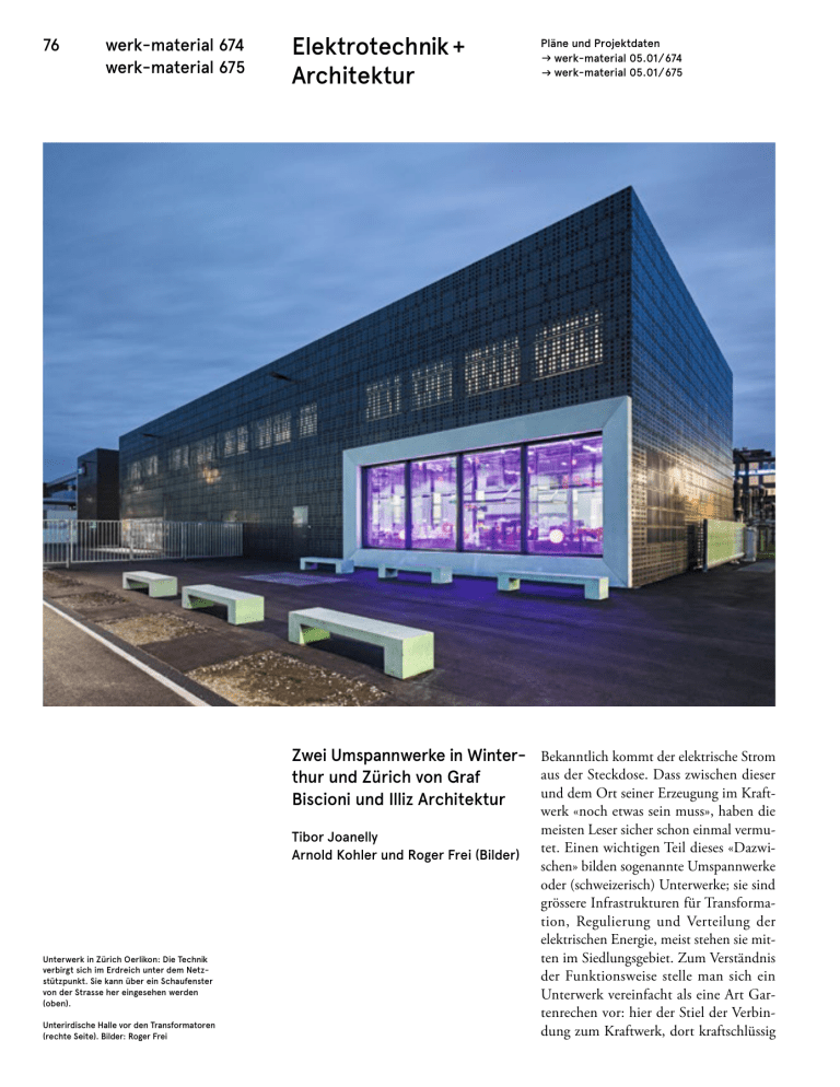 76 werk-material 674 werk-material 675 Elektrotechnik + Architektur Pläne und Projektdaten � werk-material 05.01 / 674 � werk-material 05.01 / 675 Zwei Umspannwerke in Winter­ Bekanntlich kommt der elektrische Strom aus der Steckdose. Dass zwischen dieser thur und Zürich von Graf und dem Ort seiner Erzeugung im Kraft­ ­Biscioni und Illiz Architektur Tibor Joanelly Arnold Kohler und Roger Frei (Bilder) Unterwerk in Zürich Oerlikon: Die Technik verbirgt sich im Erdreich unter dem Netz­ stützpunkt. Sie kann über ein Schaufenster von der Strasse her eingesehen werden (oben). Unterirdische Halle vor den Transformatoren (rechte Seite). Bilder: Roger Frei werk «noch etwas sein muss», haben die meisten Leser sicher schon einmal vermu­ tet. Einen wichtigen Teil dieses «Dazwi­ schen» bilden sogenannte Umspannwerke oder (schweizerisch) Unterwerke; sie sind grössere Infrastrukturen für Transforma­ tion, Regulierung und Verteilung der elektrischen Energie, meist stehen sie mit­ ten im Siedlungsgebiet. Zum Verständnis der Funktionsweise stelle man sich ein Unterwerk vereinfacht als eine Art Gar­ tenrechen vor: hier der Stiel der Verbin­ dung zum Kraftwerk, dort kraftschlüssig 77 Zwei Umspannwerke in Winter­thur und Zürich wbw 6— 2016 verbunden der Harken der städtischen Netze. In Winterthur wie in Zürich muss­ ten mehrere dieser «Rechen» altershalber und infolge einer Leistungssteigerung er­ setzt werden. In Zürich wurde das Haupt­ netz des Energielieferanten (der «Stiel») von einer Spannung von 50 000 Volt auf 110 000 respektive 150 000 Volt umgestellt. In Winterthur Neuwiesen wird die erhöhte Spannung auf 11 000 Volt (für den «Har­ ken») heruntertransformiert, in Zürich Oerlikon auf 22 000. In beiden hier be­ sprochenen Unterwerken wurden die bis anhin oberirdisch liegenden Bauten zu grossen Teilen in den Untergrund verlegt. Spannung im Schaufenster Mit der Verlegung in den Untergrund verschwindet die Nachvollziehbarkeit tech­ nischer Errungenschaften. Der GartenRechen kann als Bild die Funktionsweise eines Unterwerks erklären – seine poten­ zielle Architektur ist damit nicht beschrie­ ben. Wenn die Architektur der Energie bis in die 1960er Jahre noch ein Thema für den Entwurf war – Publikationen, wie etwa Die Kraftwerkbauten im Kanton Graubünden von Conradin Clavuot, Jürg Ragettli und Christian Kerez bezeugen dies – so ist es seither um Bauten für die Elektrizität ruhig geworden. Mit zuneh­ mend unsicherer politischer Akzeptanz bei Energiefragen scheint deren Sichtbarkeit in einer urbanen Umgebung jetzt wieder ein Thema zu werden. Wovon aber lässt sich beim Entwerfen ausgehen? Elektrizität ist ebenso körper­ los, wie ihre Bändigung dem Diktat des Elektroingenieurs unterworfen ist. Die «nackte» technische Gestalt von Transfor­ matoren und Schaltanlagen lässt sich schwer in Architektur übersetzen: Die Spielräume sind klein und die komplexe Form kostet schlichtweg zu viel. In Win­ terthur und Zürich haben Graf Biscioni Architekten und Illiz Architektur einen angemessenen Ausdruck gefunden – mit Monumentalisierung da und Inszenierung der Technik dort. In Zürich ging Illiz Architektur siegreich aus einem Wettbewerb hervor. Ihr Kon­ zept entstand rund um die Zurschaustel­ lung einer 150-Kilovolt-Pilot-Schaltanlage mit neuartigem Innenleben. Allgemein schaltet eine Schaltanlage wie ein Licht­ schalter zuhause Leitungen zu- oder weg, bei Freiluftschaltanlagen geschieht dies jeweils mit einem lauten Knall und einem Lichtbogen. So müssen in einer geschlos­ senen Anlage die Schalter durch ein isolie­ rendes Medium geschützt werden. In Oerlikon leistet dies ein neu entwickeltes, umweltfreundliches elektrisches Isoliergas in den Apparaten. Die Anlage kann nun von der Strasse her durch ein grosses Fenster bestaunt werden. Man schaut nach unten in eine über Spiegel ins Unendliche multiplizierte Welt des Technischen, die mit aufs Glas gedruckten Zeichnungen des Zürcher Künstlers Yves Netzhammer in ihrer Rät­ selhaftigkeit potenziert wurde. Die Inszenierung ist Teil einer Strate­ gie, die der Öffentlichkeit den Weg des Stroms hinter der Steckdose erklärt. Durch den ganzen unterirdischen Bau führt ein Informations-Parcours, der An­ lass dazu gab, das Ingenieurbauwerk ar­ chitektonisch zu verfeinern. Das Thema des Einblicks wiederholt sich über meh­ rere Öffnungen in den Decken oder durch grössere oder kleinere Fenster in den Wän­ den, hinter denen Transformatoren oder Schaltanlagen sichtbar werden. Auch die Galerie über der grossen Halle mit den Gleisanlagen für die Transformatoren ist eine Optimierung: Die Architektinnen gliederten hier die Erschliessungsfläche für den Steuerraum und Hilfsanlagen in die Halle aus und schmückten die Galerie mit einem expressiven Geländer. Oberirdisch führen zum Unterwerk nur das besagte grosse Fenster und die Zu­ gänge. Über diesen erheben sich einge­ packt in ein Kleid gelochter Bleche zusätz­ liche Infrastrukturen für den Unterhalt des Netzes. Die entsprechenden Materiallager, Parkplätze für Servicewagen und Büros kamen während der Projektphase zum Raumprogramm hinzu und mussten durch Illiz ins Konzept eines eigentlich unsicht­ baren Gebäudes mit zwei oberirdischen Schaufenstern integriert werden. Die Lo­ 78 werk-material 674 werk-material 675 Elektrotechnik + Architektur chung der Bleche erfüllt verschiedene Zwe­ cke; sie dient der Belüftung der Einstell­ halle und kaschiert Überdruckklappen und Lüftungsauslässe. Die Verwendung des Lochmusters all over inszeniert wie der Blick in die Schaltanlage oder horizontal faltbare Tore den technischen Charakter des Baus, ist also vor allem dekorativ. Aber gerade durch die Überhöhung erscheint die gesamte Anlage paradoxerweise nach aussen funktional, alltäglich und ihrer in­ dustriellen Umgebung angepasst. Unterwerk in Winterthur: Ein Monolith im Hinterhof verrät nur wenig über die Technik im Untergrund. 