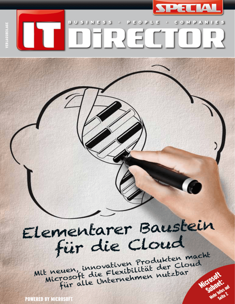 Verlagsbeilage n i e t s u a B r e r a Element d u o l C e i d r fü t n mach ukte d o r P n ou d ive l t a C v r o e n d n en, i bilität i x e l F Mit neu zbar t e i u d n ft t n f e o o m h e s n r Micros ro et: Unte c i für alle M n powered by microsoft b auf s u o S hr Inf 2 Me Seite MICROSOFT > INHALT & VORWORT INHALT Innovationsmotor Cloud MICROSOFT cloud OS Flexibel mit Cloud OS > Veränderung ist seit jeher ständiger Begleiter der Informationstechnologie. Doch gerade 4 Interview mit… Kai Göttmann, Direktor Geschäftsbereich Server, Tools & Cloud ­Business 8 windows server Im Maschinenraum der Cloud 12 system Center 2012 Tools für alle Fälle 16 Big Data Hochleistungs-Cloud für Big Data 18 Anwendungen Erhöhte Dichte, höhere Effizienz 22 Aastra Deutschland.....................................................7 Cubeware...................................................................... 10 adesso........................................................................... 13 ALOS............................................................................... 15 ALSO............................................................................... 17 Bechtle.......................................................................... 21 Ferrari........................................................................... 23 Insight.......................................................................... 25 OpenText...................................................................... 26 Sensix............................................................................27 it-director special · 2013 Um den Unternehmen den Weg in die Cloud so einfach wie möglich zu machen, verfolgen Microsoft und seine Partner einen komplett neuen und innovativen Ansatz: Cloud OS, das Betriebssystem für die Cloud. Cloud OS ist nichts, was man einfach implementieren kann, kein Produkt von der Stange. Vielmehr ist es ein innovatives Konzept, das auf den bewährten Microsoft-Infrastrukturprodukten basiert. Diese Produkte wurden konsequent auf den Einsatz im Rahmen des flexiblen Bereitstellungsmodells Cloud hin weiterentwickelt. Die Anwender profitieren doppelt: Einerseits sind sie mit den Produkten vertraut, andererseits können sie die neuen Funktionalitäten und die Vorzüge der Cloud – z.B. Anpassungsfähigkeit und Skalierbarkeit – uneingeschränkt nutzen, um den wirtschaftlichen Erfolg ihres Unternehmens voranzutreiben. Thomas Schröder, Geschäftsführer Großkunden & Partner, Microsoft Deutschland Die tragenden Säulen dieses Modells bilden Windows Server und Windows A ­ zure, ergänzt um die gesamte Bandbreite der Microsoft-Lösungen wie SQL-Server, System Center und Visual Studio. Zusammen bilden diese Technologien eine konsistente und aufeinander abgestimmte Plattform zur Verwaltung von Infrastrukturen, Apps und Geschäftsdaten, die sowohl das anwendereigene Rechenzentrum, die Rechenzentren von Service Providern sowie die Public Cloud umfassen und einbeziehen kann. Mit diesen modernen Lösungen sind die Unternehmen in der Lage, ihre IT-Ressourcen effizienter zu managen, den Mitarbeitern leistungsfähige Applikationen (Apps) sowie geschäftsrelevante Daten (Big Data und Business Intelligence) schneller zur Verfügung zu stellen und ihnen eine möglichst personalisierte Nutzererfahrung zu bieten – unabhängig vom Endgerät. Natürlich immer unter dem Blickwinkel aller notwendigen Security- und Compliance-Richtlinien. Finden Sie mehr heraus über die Möglichkeiten der neuen Microsoft-Serverprodukte und über das Konzept von Cloud OS. Auf den folgenden Seiten geben wir Ihnen einen umfassenden Überblick. MICROSOFT BUSINESS PARTNER 2 in der jüngeren Vergangenheit finden Umwälzungen statt, die nicht nur die traditionellen IT-Infrastrukturen komplett neu ordnen, sondern darüber hinaus die Art und Weise, wie Menschen arbeiten. Die Mitarbeiter sind mobil, haben Zugang zu Echtzeitdaten und sind es gewohnt, dass ihnen IT jederzeit und unkompliziert zur Verfügung steht. Das zentrale und verbindende Element, das diese Szenarien erst Realität werden lässt, ist die Cloud. Viel Spaß beim Lesen, Thomas Schröder Microsoft Subnet > Wenn Sie mehr darüber erfahren möchten, welche Möglichkeiten Cloud Computing den Anwenderunternehmen im Hinblick auf neue Formen der Zusammenarbeit und der freien Wahl der Endgeräte liefert — Stichwort Consumerization of IT — gibt es hier die relevanten Informationen. www.it-director.de/subnet/microsoft.html trendstudie < Microsoft Führungskräfte nutzen Privatgeräte Der Siegeszug privater IT in Unternehmen setzt sich fort. Vor allem Führungskräfte profitieren von diesem Trend, wie eine Studie erst kürzlich ermittelte. > „Consumerization of IT“ oder „Bring your own Device“ zeichnen sich als deutliche Trends in den Unternehmen ab, auch in Deutschland. Doch nicht alle Mitarbeiter profitieren gleichermaßen von dieser Entwicklung, vor allem Führungskräfte aus der IT haben hier die Nase vorn. So nutzen laut einer im Auftrag von Microsoft erstellten Studie von techconsult fast 90 Prozent von ihnen private IT-Geräte und mehr als 50 Prozent private Anwendungen bei der Arbeit. In anderen Bereichen fällt die Verbreitung der „Konsumerisierung“ hingegen ab. So nutzen nur 78 Prozent der Führungskräfte in Außendienst und Vertrieb Privatgeräte und 34 Prozent private Anwendungen. Dennoch ist der Anteil an Vertriebsleitern, die im täglichen Arbeitsleben von „Bring your own“ profitieren, mit 89 Prozent überdurchschnittlich hoch. Und auch hinsichtlich der Motivation stehen sie mit 75 Prozent an erster Stelle, denn gerade in ihrer Position spielen die Erreichbarkeit und der orts- sowie zeitunabhängige Zugriff auf Daten und Dokumente eine sehr große Rolle. Mitarbeiter sind voll motiviert „Die Ergebnisse zeigen deutlich, dass die Consumerization of IT einen wichtigen Baustein für Produktivität und Motivation darstellt und in der Führungsebene vi