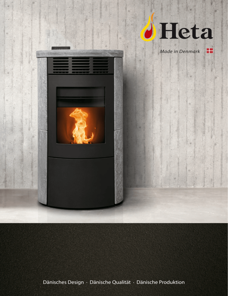Made in Denmark Dänisches Design . Dänische Qualität . Dänische Produktion Symbolbeschreibung 3l Heta Feuerstätten sind aufgrund ihrer erstklassigen Verarbeitung, geeignet für eine Dauerbefeuerung mit Festbrennstoffen. Optional erhalten Sie die Möglichkeit den Heta Pelletofen mit einem Rauchabgang nach Oben zu bestellen. Der patentierte Heta 3 Liter, 5 Liter oder 8 Liter Ascheeimer ist außergewöhnlich und praktisch. Die Entleerung der Asche wird durch den Ascheeimer funktionell und sauber. Optional erhalten Sie die Möglichkeit den Heta Pelletofen mit einem Rauchabgang nach Hinten zu bestellen. Zusätzlich können Sie Heta Feuerstätten mit Speichersteinen ausrüsten. Hierdurch erhalten Sie eine zusätzliche Speicherkapazität und erreichen ein noch effizienteres Raumheizvermögen. Sie haben die Möglichkeit die Konvektionsluft nach der Raumaufheizphase zu stoppen und die Energie in den vorhandenen Speicherstein zu leiten. 20-130 m2 2-5,7 kW 64% 92 cm 18 kg Pellettank Fassungsvermögen in Kilogramm. Mit dem Heta Hot Air Supplytm ist es möglich mehrere Räume zu beheizen. SMS Angabe des regelbaren Leistungsbereichs der Feuerstätte in Kilowatt. Unsere CLEAN BURN tm Feuerstätten erreichen ökologische Spitzenwerte und unterbieten mindestens um 50% die schärfsten Anforderungen. Die integrierte Kaminofengarnitur (Besen, Schaufel, Schürhaken) bietet Ihnen eine Funktionalität die Sie nur bei Heta A/S finden. Durch eine durchdachte Konstruktion ist es sehr einfach und komfortabel den Pelletofen zu reinigen und zu warten. Raumheizvermögen mit der Angabe in m 2, somit finden Sie die passende Feuerstätte für Ihre Raumgröße. Leistung wasserseitig in % und das schon bei 30% unter der Gesamtnennwärmeleistung. Die gesamte Bauhöhe der Feuerstätte in cm. 95% Leistungsfähigkeit %. Mit dem Combustion Air Systemtm erhält der Pelletofen immer eine perfekte Verbrennung. Die gekennzeichneten Heta Feuerstätten entsprechen den Vorgaben der BImSchV Stufe 2. Mit dem optional erhältlichen SMS Modul können Sie den Pelletofen bequem über jedes Mobiltelefon (SMS) bedienen. Die mit §15a BVG Stand 2015 gekennzeichneten Heta Feuerstätten entsprechen den Vorgaben der Österreich Verordnung. Mit dem optional erhältlichen WiFi App Modul können Sie den Pelletofen bequem mit einem iOS Apple , Android Smartphone bedienen. Die VKF gekennzeichneten Heta Feuerstätten entsprechen den Vorgaben der Vereinigung Kantonaler Feuerversicherungen VKF der Schweiz. Copyright © Heta A/S 2015. Jupitervej 22, DK-7620, Lemvig, Denmark. Druckfehler und Änderungen vorbehalten. Heta® ist ein eingetragenes Warenzeichen von Heta A/S. Heta Hot Air Supplytm CLEAN BURNtm und Heta Combustion Air Systemtm sind Marken von Heta A/S. 1. Ausgabe 2015. Gedruckt in Dänemark. Inhaltsverzeichnis Pelletofen Scan-Line Green 100. . . . . . . . . . . . . . . . . . . . . . . . . . . . . . . . . . . . . . . . . . . . . . . . . . . . . . 4 - 7 Scan-Line Green 200. . . . . . . . . . . . . . . . . . . . . . . . . . . . . . . . . . . . . . . . . . . . . . . . . . . . . 8- 13 Aqua Ofen Scan-Line 800 Aqua . . . . . . . . . . . . . . . . . . . . . . . . . . . . . . . . . . . . . . . . . . . . . . . . . . . .14 - 19 Scan-Line Aqua Technologie . . . . . . . . . . . . . . . . . . . . . . . . . . . . . . . . . . . . . . . . . . . . . . . 16 Aqua Installationsbeispiele . . . . . . . . . . . . . . . . . . . . . . . . . . . . . . . . . . . . . . . . . . . . . . . . 17 Aqua Performance Kit . . . . . . . . . . . . . . . . . . . . . . . . . . . . . . . . . . . . . . . . . . . . . . . . . . . . . 18 Aqua Installationsdiagramm . . . . . . . . . . . . . . . . . . . . . . . . . . . . . . . . . . . . . . . . . . . . . . . 18 Verbrennungstechnik und Effektivität . . . . . . . . . . . . . . . . . . . . . . . . . . . . . . . . . . . . . . 20 Verkleidung, Keramik, Sandstein und Emaille . . . . . . . . . . . . . . . . . . . . . . . . . . . . . . . 21 Technische Daten . . . . . . . . . . . . . . . . . . . . . . . . . . . . . . . . . . . . . . . . . . . . . . . . . . . . . 22 - 23 Heta ist ein Unternehmen mit Sitz in DK-7620 Lemvig in Jütland, Dänemark, das sich sowohl mit der Fertigung wie auch dem Vertrieb der gefertigten Öfen beschäftigt. Die Firma wurde 1972 gegründet und hat sich seitdem laufend weiterentwickelt zu einem modernen Betrieb mit einem umfassenden Sortiment von Kaminöfen, die in den meisten Ländern Europas vertrieben werden. Das gesamte Programm wird in der 9.000 Quadratmeter großen Fabrik in Lemvig gefertigt. Qualität und Design stehen im Vordergrund und der Vertrieb erfolgt über den Fachhandel. Heta A/S verkauft heute ca. 10.000 Öfen jährlich über ganz Europa. Die größten Absatzmärkte sind Dänemark, Deutschland, Frankreich, Schweden, Belgien, Österreich, Schweiz, Holland, Italien und England. Made in Denmark • Dieser Katalog wurde mit größter Sorgfalt für Sie zusammengestellt. Dennoch können Fehler nicht ganz ausgeschlossen werden. In solchen Fällen kann keine Haftung übernommen werden. • Die Inhalte entsprechen dem Stand bei Drucklage. Durch ständige Weiterentwicklung unserer Produkte können Abweichungen nicht ausgeschlossen werden. • Die Angaben dienen der unverbindlichen allgemeinen Information und ersetzen nicht eine eingehende, individuelle Beratung. • Nachdruck, auch auszugsweise, nur mit ausdrücklicher Genehmigung durch Heta A/S. Scan-Line Green 100 Scan-Line Green 100 Neben seiner Funktion als Wärmequelle, ist der Scan-Line Green 100 durch sein modernes Design auch ein echter Hingucker und integriert sich wie ein Möbelstück in Ihre Wohnungseinrichtung. So haben wir den Heta Scan-Line Green 100 aus Qualitätsmaterialien in modernem Design mit großer Sichtscheibe entwickelt. Durch seine vollendete Harmonie zwischen Form und Funktion werden Sie den Scan-Line Green 100 über viele Jahre täglich genießen und wertschätzen können. 92 cm 2-5,7 kW 20-130 m2 4 18 kg 95% 24H Integriertes Touch Bedien
