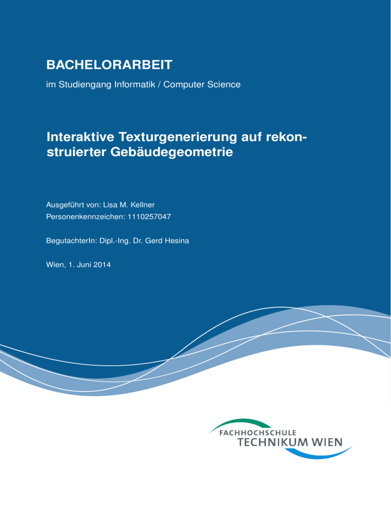 BACHELORARBEIT im Studiengang Informatik / Computer Science Interaktive Texturgenerierung auf rekonstruierter Gebäudegeometrie Ausgeführt von: Lisa M. Kellner Personenkennzeichen: 1110257047 BegutachterIn: Dipl.-Ing. Dr. Gerd Hesina Wien, 1. Juni 2014 Eidesstattliche Erklärung Ich erkläre hiermit an Eides statt, dass ich die vorliegende Arbeit selbständig angefertigt habe. Die aus fremden Quellen direkt oder indirekt übernommenen Gedanken sind als solche kenntlich gemacht. Die Arbeit wurde bisher weder in gleicher noch in ähnlicher Form einer anderen Prüfungsbehörde vorgelegt und auch noch nicht veröentlicht. Ich versichere, dass die abgegebene Version jener im Uploadtool entspricht. Ort, Datum Unterschrift Kurzfassung In dieser Arbeit wird eine Applikation vorgestellt, die es ermöglicht aus Fotos, die jedermann mit einer handelsüblichen Kamera aufnehmen kann, ein drei-dimensionales Modell zu erzeugen. Dabei liegt der Fokus auf der Rekonstruktion von Gebäuden. Durch die gemeinsame Verarbeitung der Punktwolke, Polygone und Texturen können die räumlichen Eigenschaften des Gebäudes leicht und exakt erschlossen werden. Um ein Modell ezient zu erstellen, wird die automatische Rekonstruktion des Gebäudemodells durch manuelle Bearbeitungsmöglichkeiten erweitert. Dafür gibt es in der vorgestellten Applikation eine Vielzahl an neuartigen Tools. Diese erlauben eine eziente Nachbearbeitung des automatisch erstellten Modells. Die Tools sind speziell an das Bearbeiten der Punktwolke, Polygone und Texturen angepasst. So dass schnell ein realistisches Gebäudemodell erzeugt werden kann. Schlagwörter: bäudemodelle Punktwolke, Rekonstruktion, Texturgenerierung, interaktives Modellieren, Ge- Abstract In this theses an application will be introduced, which allows you to create a three-dimensional model out of photos which you take with a consumer-level camera. Thereby the focus lies on reconstruction of buildings. Because of the combined processing of the point cloud, polygons and textures spatial properties of the building could be developed easily and exact. To reconstruct a model in an ecient way the automatic reconstruction is extended by manual possibilities of editing the model. Therefore the introduced application has a wide range of tools to allow you an ecient editing. These tools are adjusted to the point cloud, polygons and textures. So you can create a realistic model of a building very fast. Keywords: buildings point cloud, reconstruction, generating textures, interactive modelling, models of Danksagung Diese Bachelorarbeit schrieb ich im Zuge meines Praktikums an der VRVis Zentrum für Virtual Reality und Visualisierung Forschungs-GmbH. An dieser Stelle möchte ich allen an meiner Praktikumsstelle für eine tolle Zeit und für ihre Unterstützung zur Vollendung dieser Arbeit bedanken. Inhaltsverzeichnis 1 Einleitung 1 1.1 Motivation . . . . . . . . . . . . . . . . . . . . . . . . . . . . . . . . . . . . . . 1 1.2 Aufgabenstellung 3 . . . . . . . . . . . . . . . . . . . . . . . . . . . . . . . . . . 2 Stand der Technik 2.1 Related Work 2.2 Hintergrund 4 . . . . . . . . . . . . . . . . . . . . . . . . . . . . . . . . . . . . 4 . . . . . . . . . . . . . . . . . . . . . . . . . . . . . . . . . . . . . 6 3 Rekonstruktion von Gebäudegeometrie anhand Fotos 3.1 3.2 Rekonstruktion von Gebäudegeometrie . . . . . . . . . . . . . . . . . . . . . . . 4.2 4.3 9 3.1.1 Erzeugung einer Punktwolke anhand Fotos . . . . . . . . . . . . . . . . . 9 3.1.2 Erzeugung von Geometrie anhand einer Punktwolke . . . . . . . . . . . . 11 Texturierung rekonstruierter Gebäudegeometrie . . . . . . . . . . . . . . . . . . . 14 4 Tools zur interaktiven Texturgenerierung 4.1 9 Bereits bestehende Tools . . . . . . . . . . . . . . . . . . . . . . . . . . . . . . . . . . . . . . . . . . . . . . . . . . . . . . . . 17 17 4.1.1 Editieren der Punktwolke 17 4.1.2 Editieren der Polygone . . . . . . . . . . . . . . . . . . . . . . . . . . . 19 4.1.3 Segmente zusammenfügen und teilen . . . . . . . . . . . . . . . . . . . . 20 Erweiterte Tools . . . . . . . . . . . . . . . . . . . . . . . . . . . . . . . . . . . 21 4.2.1 Mengenoperationen . . . . . . . . . . . . . . . . . . . . . . . . . . . . . 21 4.2.2 Der Brush . . . . . . . . . . . . . . . . . . . . . . . . . . . . . . . . . . 22 Neu entwickelte Tools . . . . . . . . . . . . . . . . . . . . . . . . . . . . . . . . 23 4.3.1 Interaktionen mit Shots . . . . . . . . . . . . . . . . . . . . . . . . . . . 23 4.3.2 Sortieren der Shots . . . . . . . . . . . . . . . . . . . . . . . . . . . . . 24 4.3.3 Editieren der Textur . . . . . . . . . . . . . . . . . . . . . . . . . . . . . 29 5 Diskussion 31 5.1 Reexion . . . . . . . . . . . . . . . . . . . . . . . . . . . . . . . . . . . . . . . 31 5.2 Aufgabenstellung . . . . . . . . . . . . . . . . . . . . . . . . . . . . . . . . . . 32 5.3 Ausblick . . . . . . . . . . . . . . . . . . . . . . . . . . . . . . . . . . . . . . . 32 Literaturverzeichnis 34 Abbildungsverzeichnis 36 1 Einleitung 1.1 Motivation Die Möglichkeit, dass jedermann aus selbst aufgenommenen Fotos realistische drei-dimensionale Modelle erstellen kann, fand in den letzten Jahrzehnten vermehrt Interesse. Trotzdem gibt es noch keine zufriedenstellende Lösung für die Rekonstruktion eines Gebäudes anhand Fotos. Einerseits ist der Rechenaufwand, aus Fotos ein drei-dimensionales Modell zu erstellen, sehr hoch. Es war erst in den letzten Jahren möglich Applikationen zu entwickeln, die die Rekonstruktion des Modells sowie Änderungen daran in Echtzeit vollbringen können. Andererseits ist das Ergebnis der automatischen Rekonstruktion sehr stark von den aufgenommenen Fotos abhängig. Ist der Datensatz lückenhaft oder das fotograerte Objekt nicht geeignet, kann daraus kaum ein vollständiges Modell mit guten Texturen erzeugt werden. Da oft nicht alle Seiten des Gebäudes zugänglich sind können unvollständige Datensätze entstehen. Beispielsweise liegen sie auf