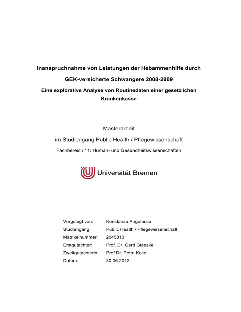 gesetzlichen Hebammenhilfe mithilfe von Abrechnungsdaten der